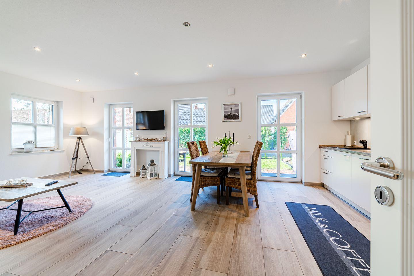 Moderne Ferienwohnung "Seelust" in Greetsiel mit privater Südterrasse und Nähe zu den Zwillingsmühlen für einen unvergesslichen Nordseeurlaub.