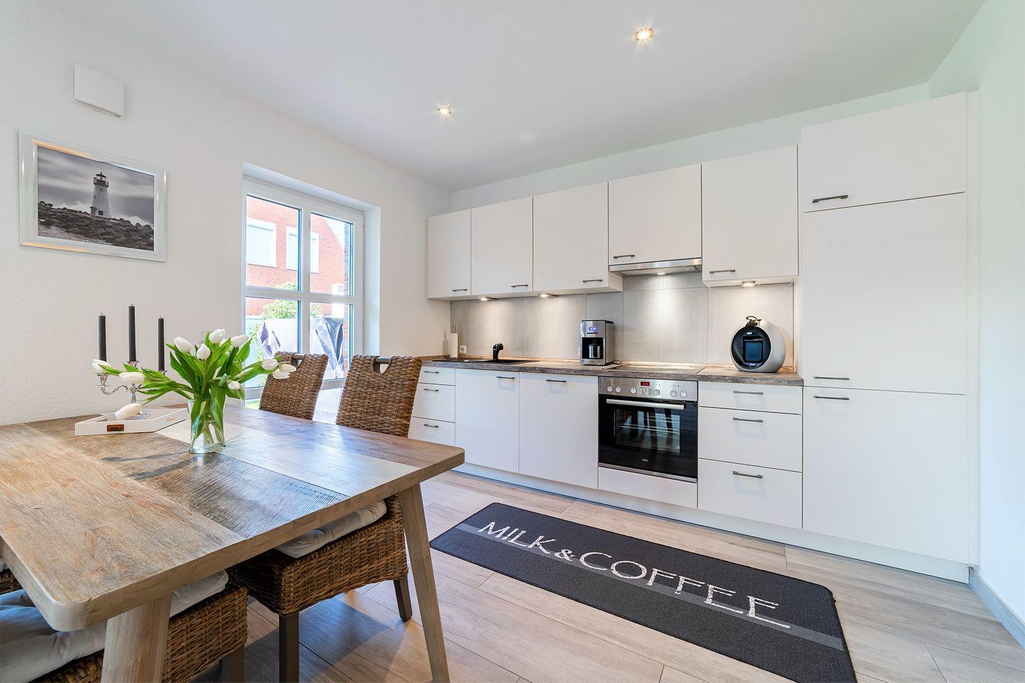 hellen Wohn-/Essbereich finden Sie eine vollständig ausgestattete Einbauküche