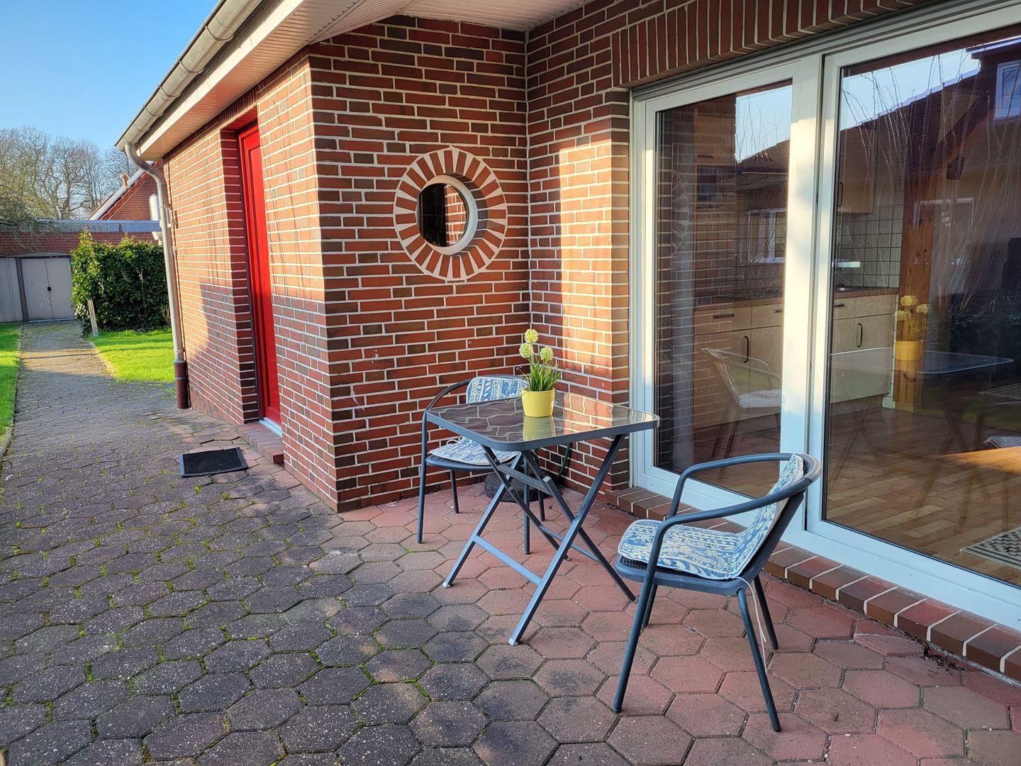 Charmantes Ferienhaus Bella in Greetsiel mit Terrasse und Gartenblick, ideal für Familien und Freunde in ruhiger Lage.