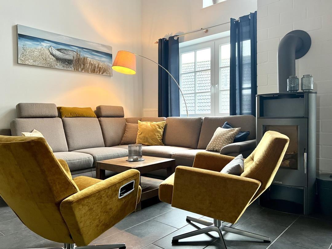 Das Kapitänseck in Greetsiel bietet stilvollen Komfort mit Sauna, Kamin und Balkon direkt am historischen Hafen.