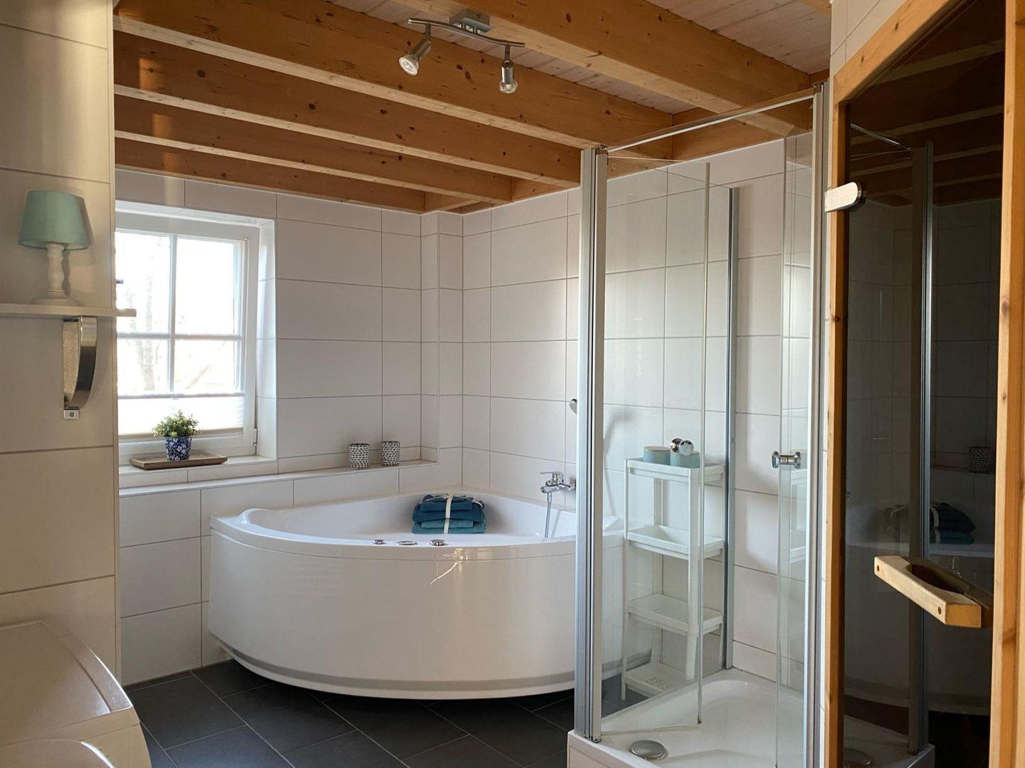 Deine private Wellnessoase wartet mit einer Whirlwanne, einer Sauna und einer bodengleichen Dusche auf dich. Ein zweites, separates Badezimmer mit Dusche steht ebenfalls zur Verfügung – ideal, wenn ihr mit mehreren reist.