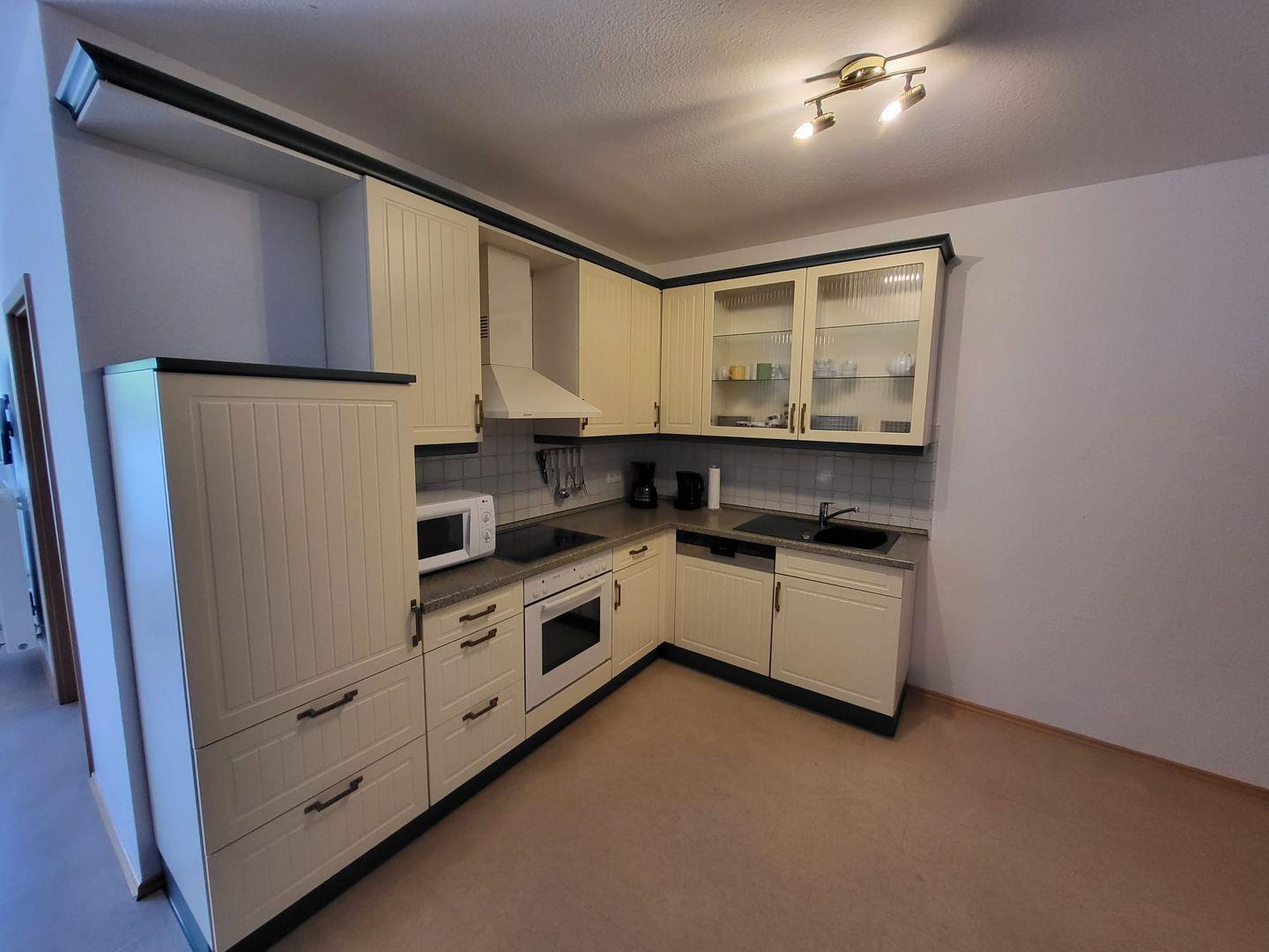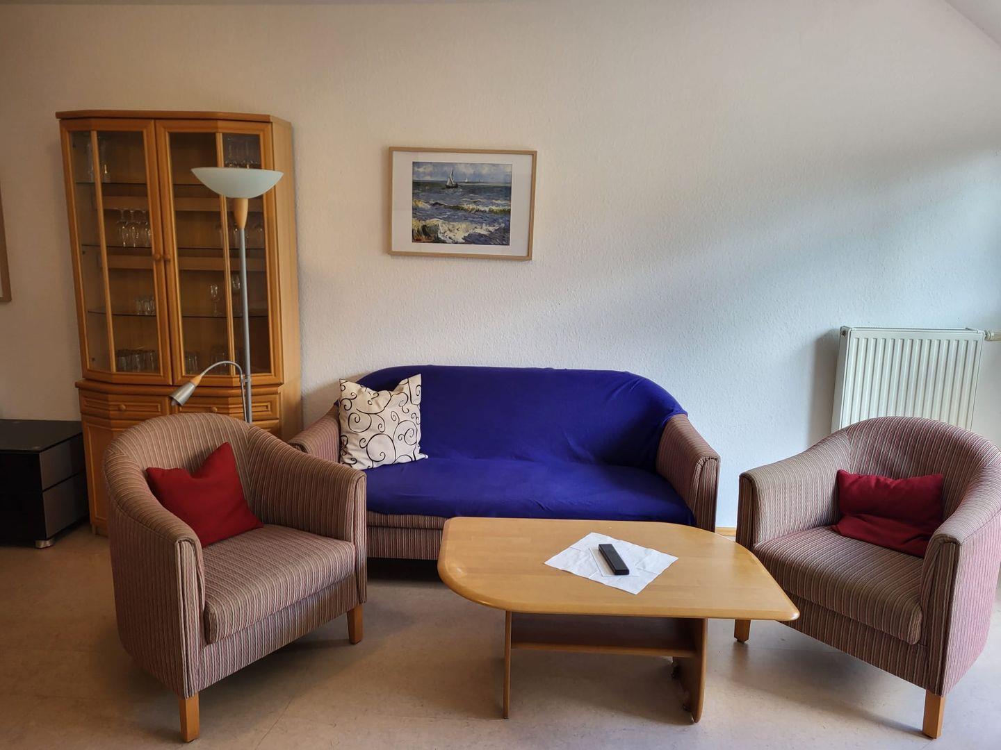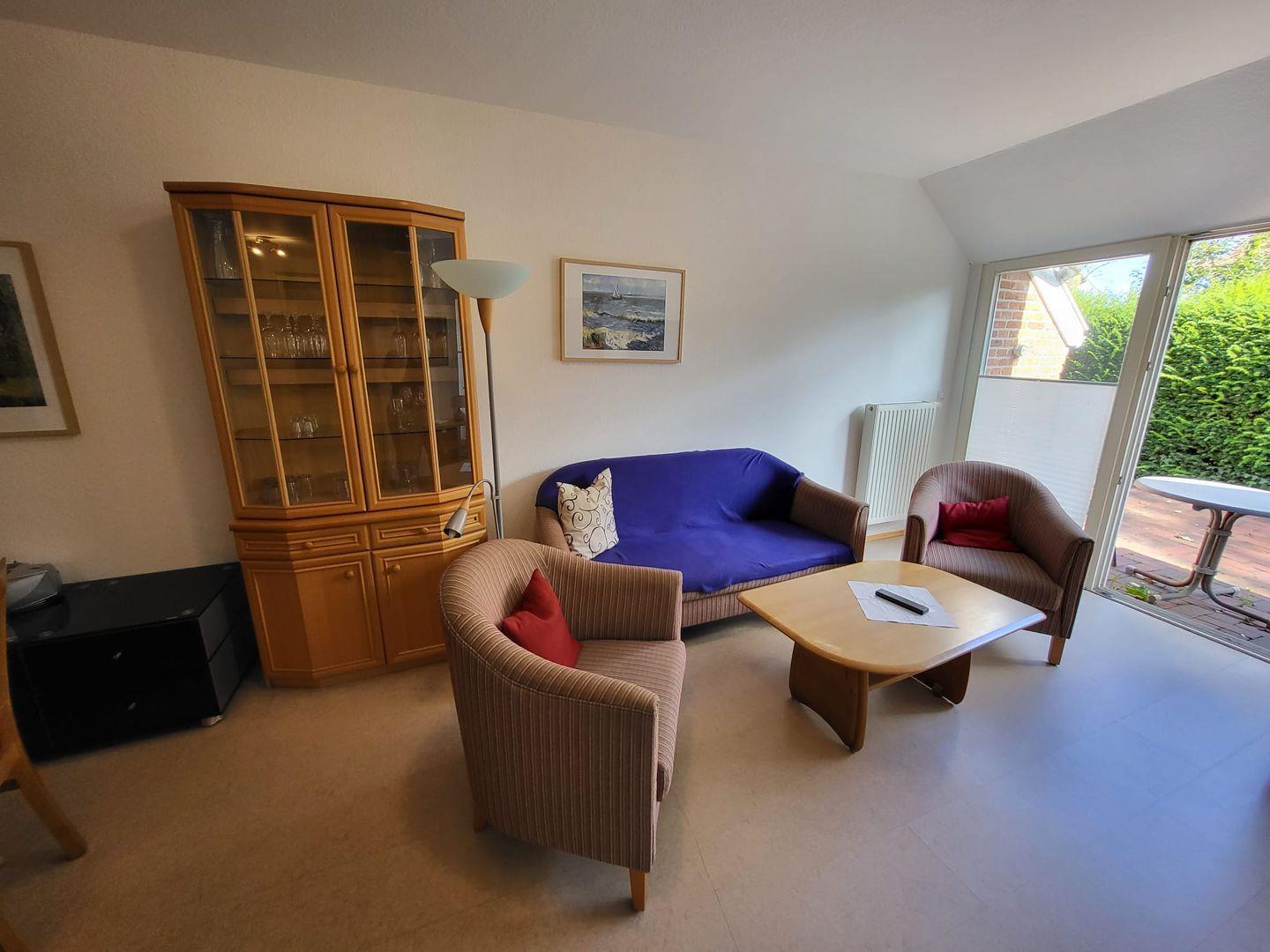 Die Wohnung verfügt über ein separates Schlafzimmer mit Doppelbett. Im Wohnbereich lädt eine gemütliche Sofaecke mit 2 Sesseln und Sat-TV zum Entspannen ein. Von hier gelangen Sie auf die kleine aber feine Terrasse, wo Sie sich den frischen Wind um die Nase wehen lassen können. Ein Blick nach links und Sie sehen den Hafen. Das offene Raumkonzept verbindet den Wohnbereich mit der voll ausgestatteten Küche. Ob ein ostfriesisches Gericht zubereitet oder der Ostfriesentee gekocht wird, alle Küchenutensilien sind vorhanden. Ebenso stehen ein Ceranherd, Backofen, Mikrowelle, Kühlschrank mit Gefrierfach, Spülmaschine usw. zur Verfügung. Ein Essbereich mit Esstisch sorgt für komfortable Mahlzeiten in privater Atmosphäre. Ebenfalls gibt es einen kleinen Abstellraum. WLAN ist verfügbar!