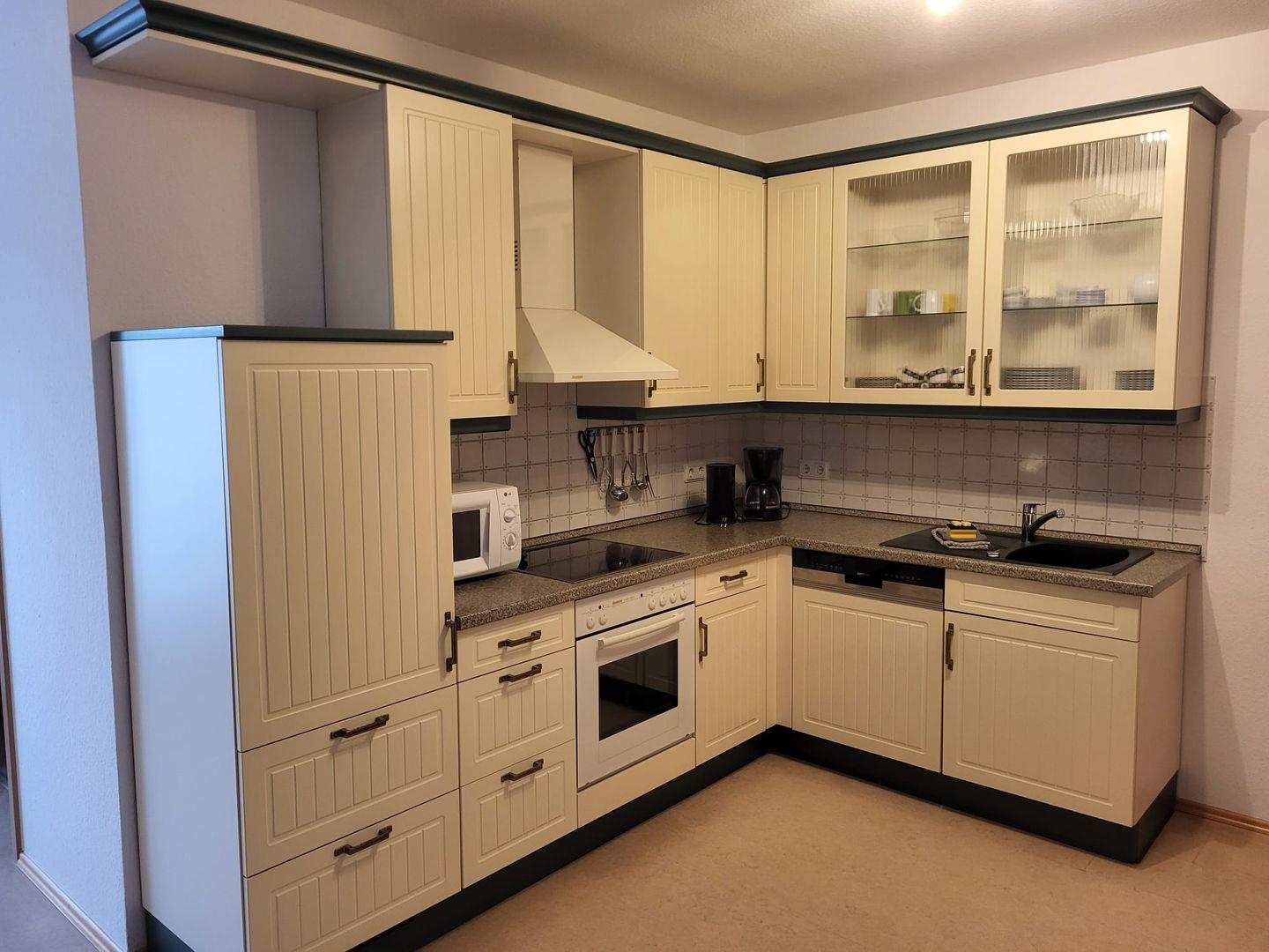 Die Wohnung verfügt über ein separates Schlafzimmer mit Doppelbett. Im Wohnbereich lädt eine gemütliche Sofaecke mit Sofa und 2 Sesseln und Sat-TV zum Entspannen ein. Von hier gelangen Sie auf die kleine aber feine Terrasse, wo Sie sich den frischen Wind um die Nase wehen lassen können. Ein Blick nach links und Sie sehen den Hafen. Das offene Raumkonzept verbindet den Wohnbereich mit der voll ausgestatteten Küche. Ob ein ostfriesisches Gericht zubereitet oder der Ostfriesentee gekocht wird, alle Küchenutensilien sind vorhanden. Ebenso stehen ein Ceranherd, Backofen, Mikrowelle, Kühlschrank mit Gefrierfach, Spülmaschine usw. zur Verfügung. Ein Essbereich mit Esstisch sorgt für komfortable Mahlzeiten in privater Atmosphäre. WLAN ist verfügbar!