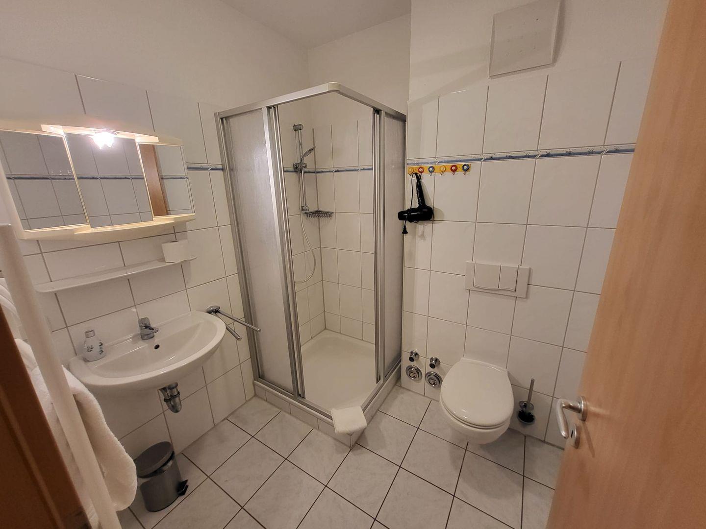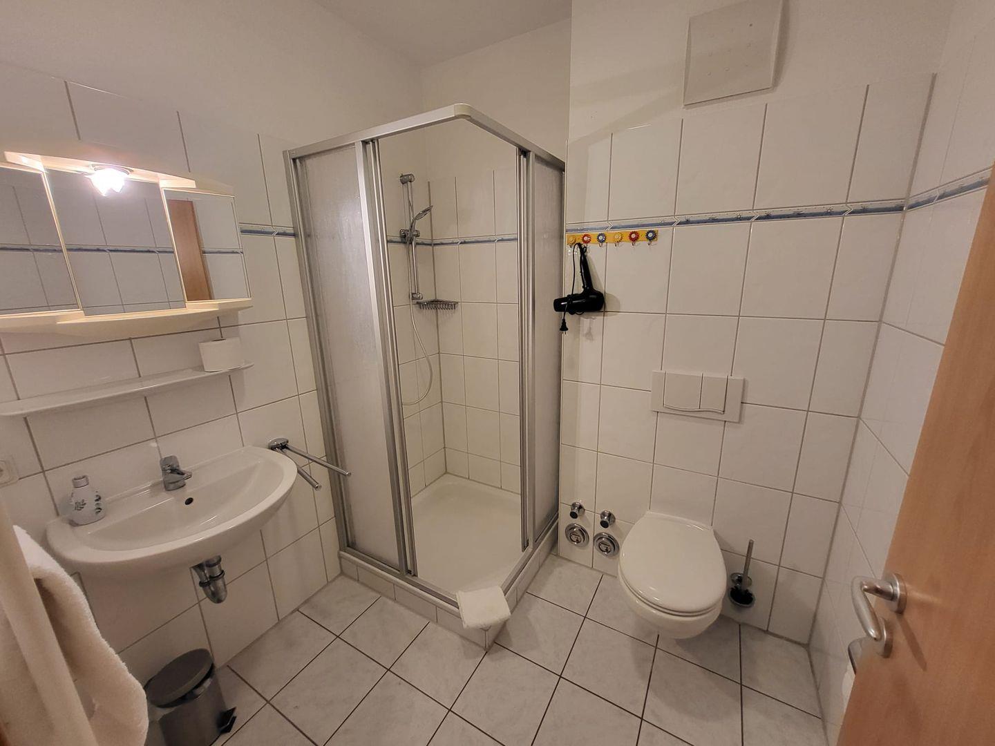 Das helle großzügige Badezimmer mit Dusche garantiert Ihnen Komfort. Für Ihre Wäsche stehen Waschmaschine und Trockner im Keller zur gemeinschaftlichen Nutzung bereit. Ein Fahrradschuppen zum Unterbringen von mitgebrachten Fahrrädern finden Sie neben dem Amtmannsgebäude. Leider verfügt die Wohnung über keinen Parkplatz. Gerne helfen Sie wir Ihnen, nach alternativen kostenfreien Parkplätzen in der Nähe zu suchen.