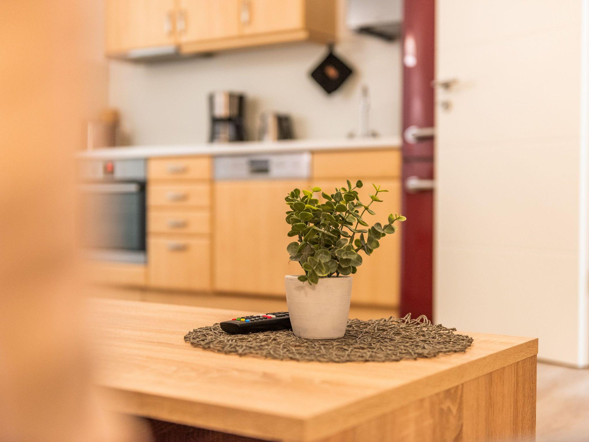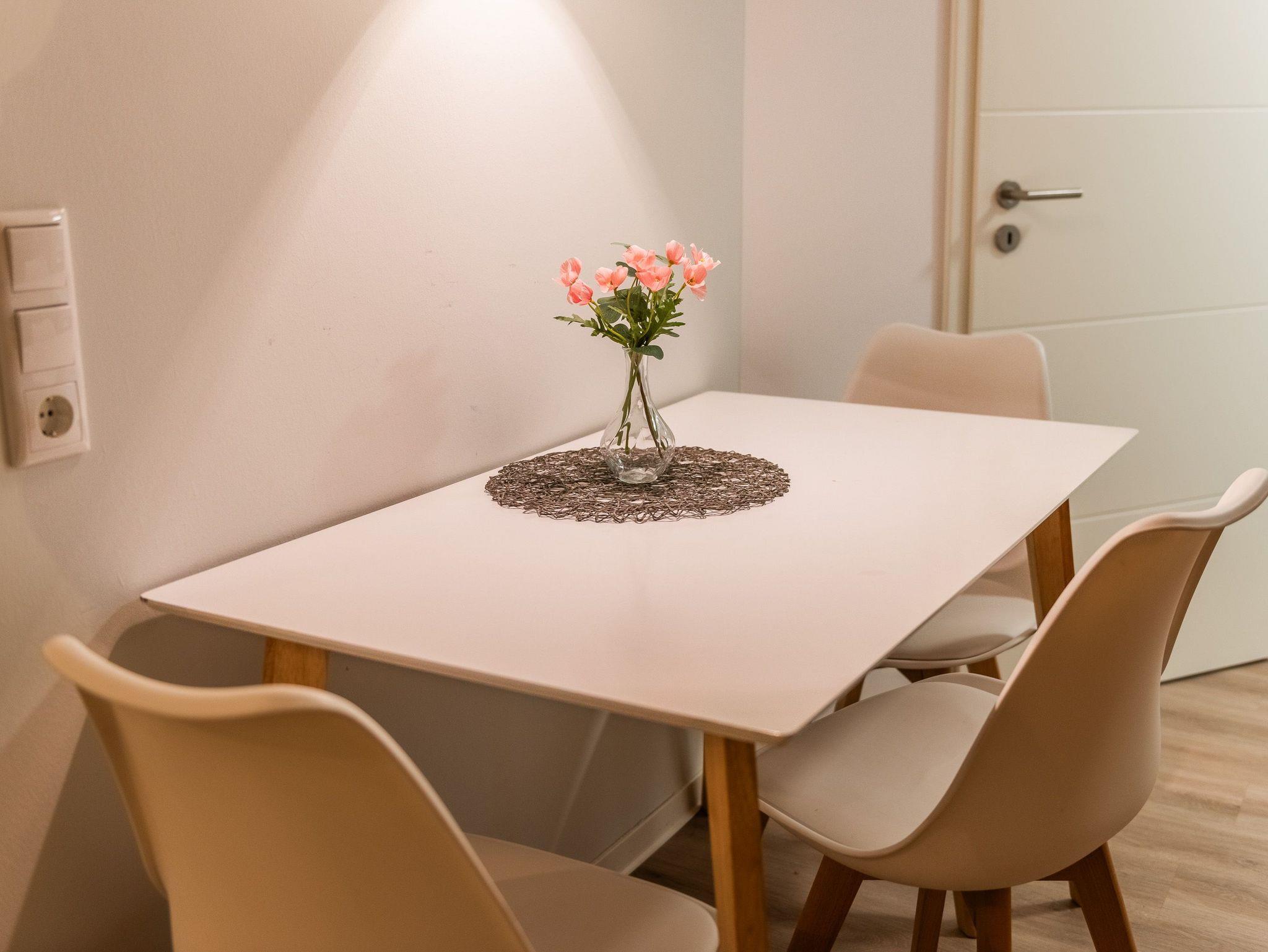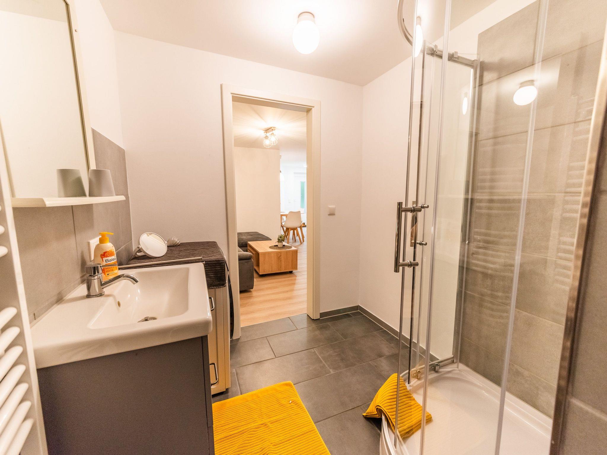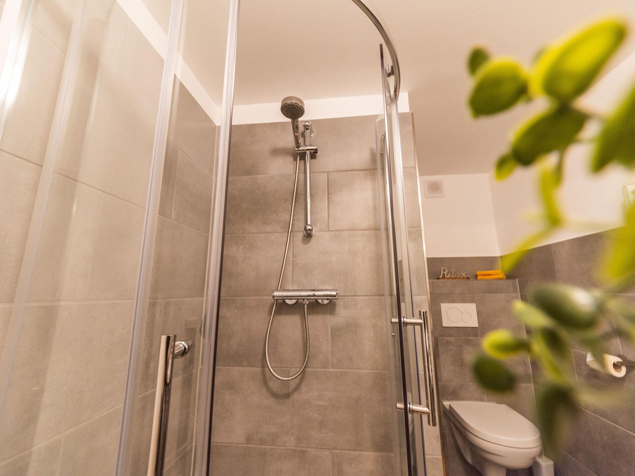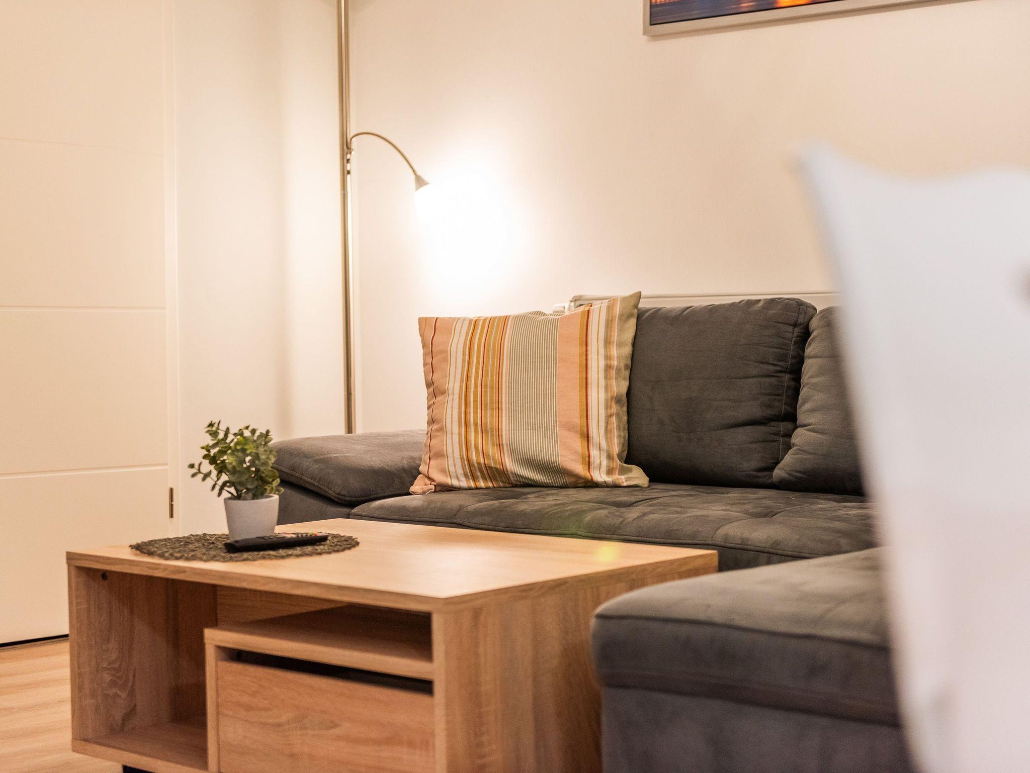 Das gemütliche Wohnzimmer bietet einen internetfähigen Fernseher sowie kostenloses W-Lan an. Im modernen Badezimmer steht eine großzügige Dusche mit einem Waschtrockner zur Verfügung.