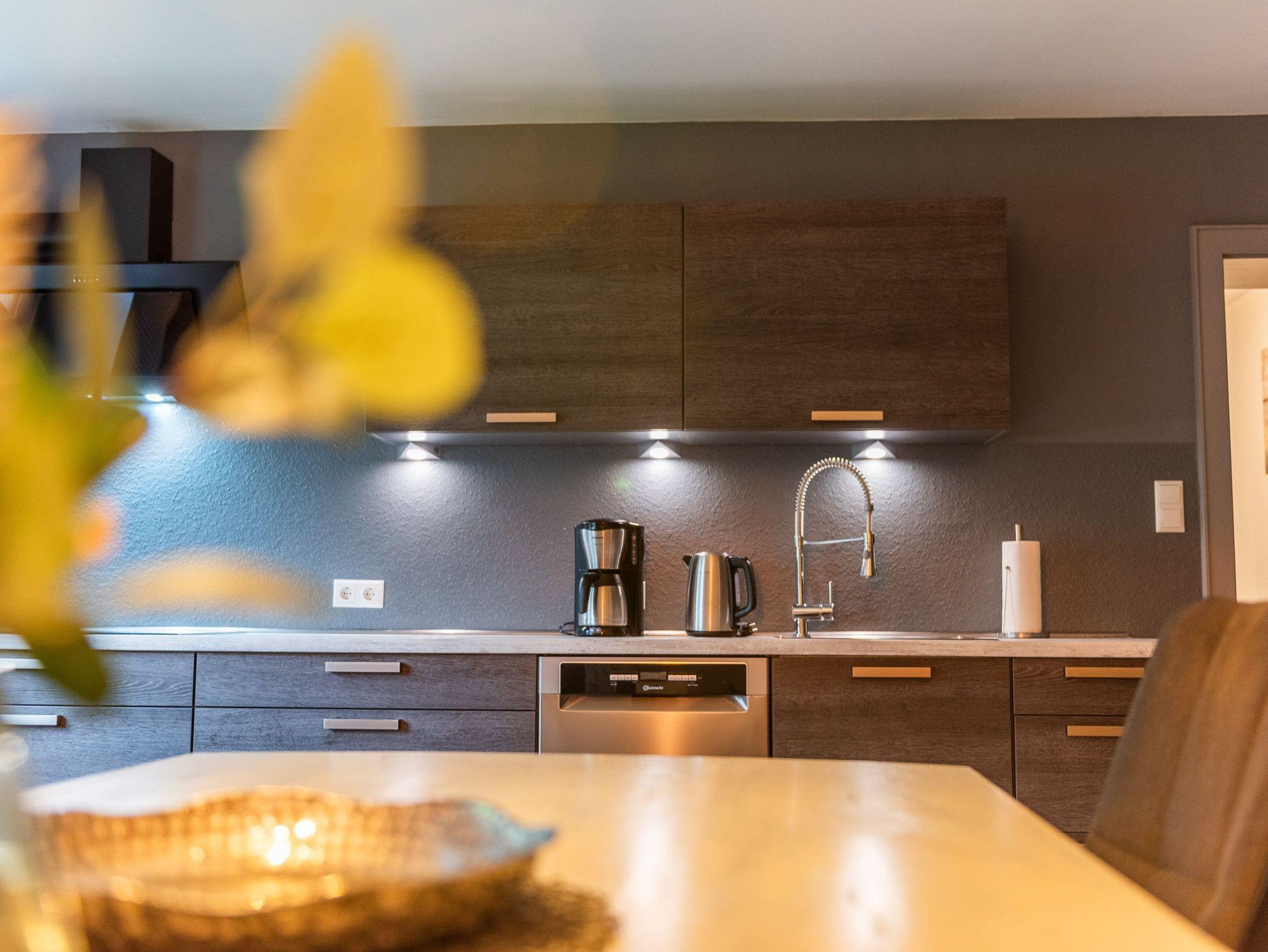 Das liebevoll eingerichtete Wohnzimmer bietet viel Platz für gemütliche Gemeinsamkeiten und ist mit Fernseher sowie WLAN ausgestattet. Zudem besteht die Möglichkeit, dass zwei weitere Personen auf dem Schlafsofa übernachten können (für den 5. und 6. Gäste fallen zusätzliche Kosten von 15,- /Person und Nacht an).