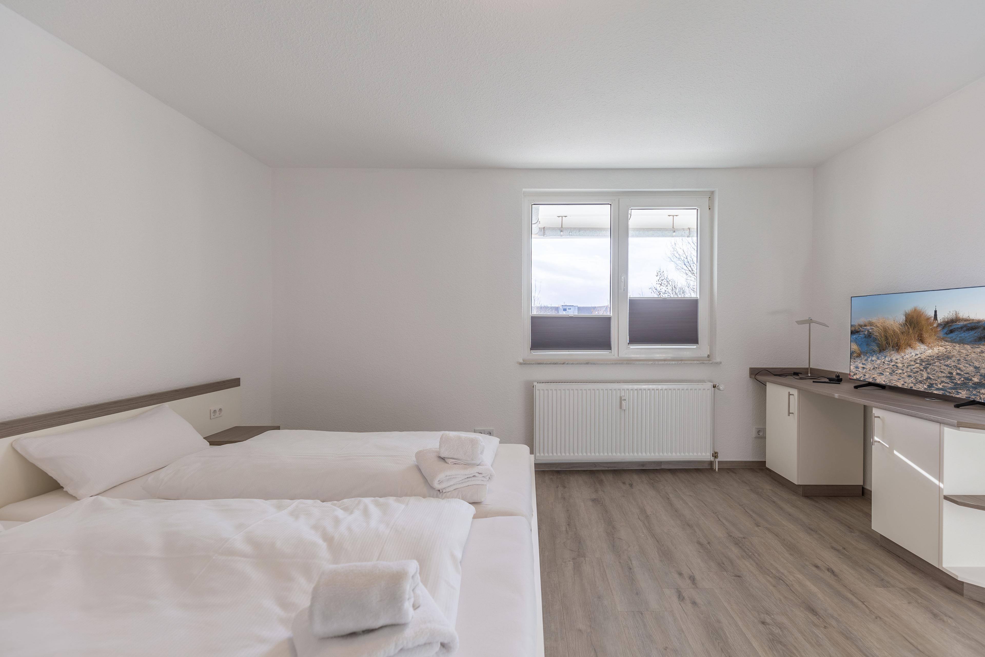 Die separate Küche bietet Ihnen alle Annehmlichkeiten, die Sie in Ihrem Urlaub erwarten. Die Küche ist ausgestattet mit einem Geschirrspüler, einem Backofen mit integrierter Mikrowelle, einem Induktionskochfeld und einem Kühlschrank mit Gefrierfach. Die Wohnung verfügt über ein großes separates Schlafzimmer. Das komfortable XXL-Doppelbett (2x100x200) mit hochwertigen Matratzen sorgt für einen erholsamen Schlaf.