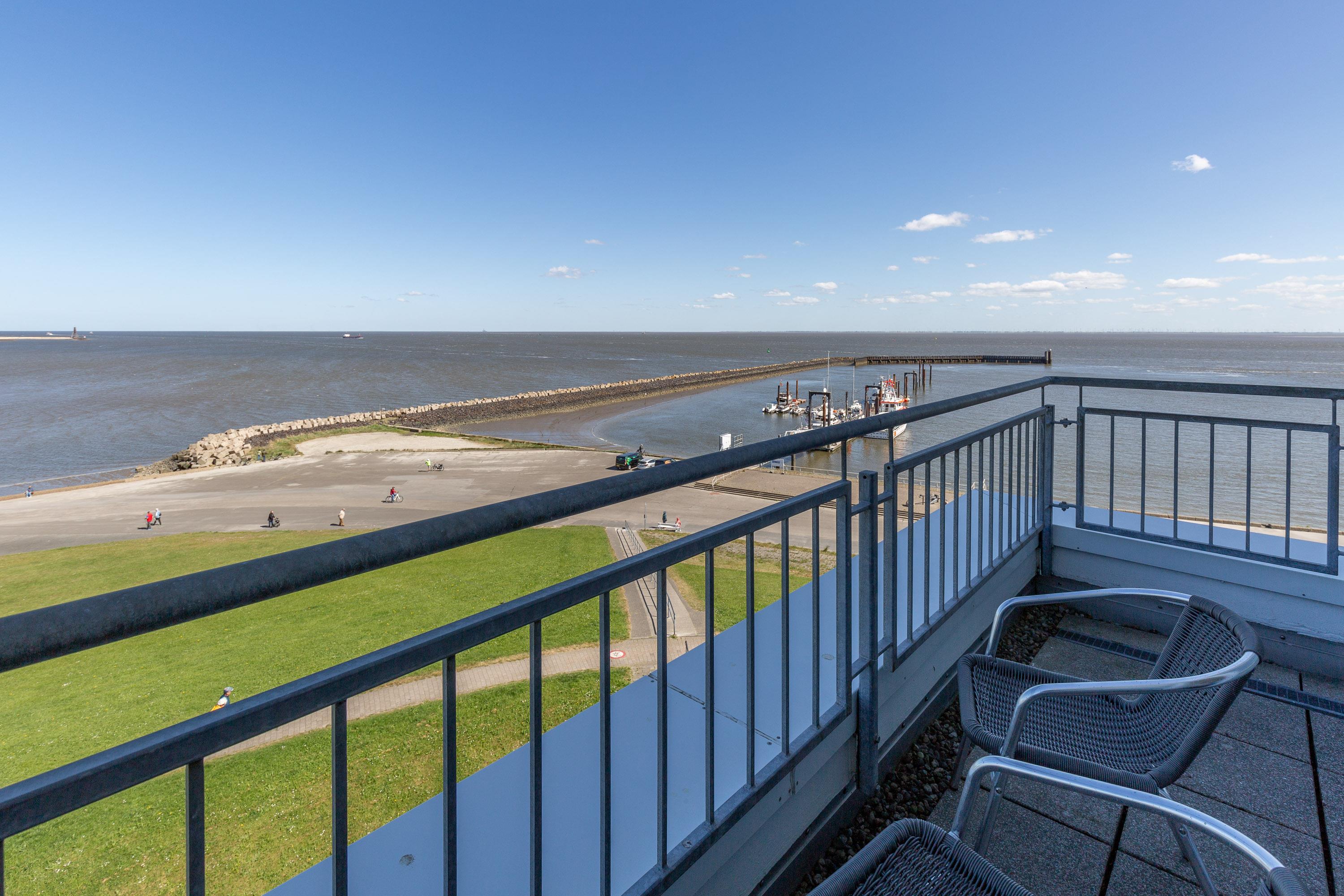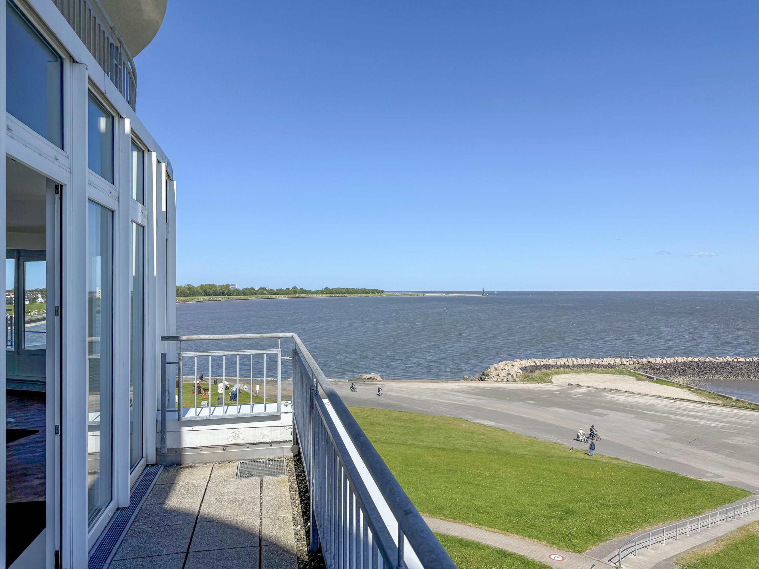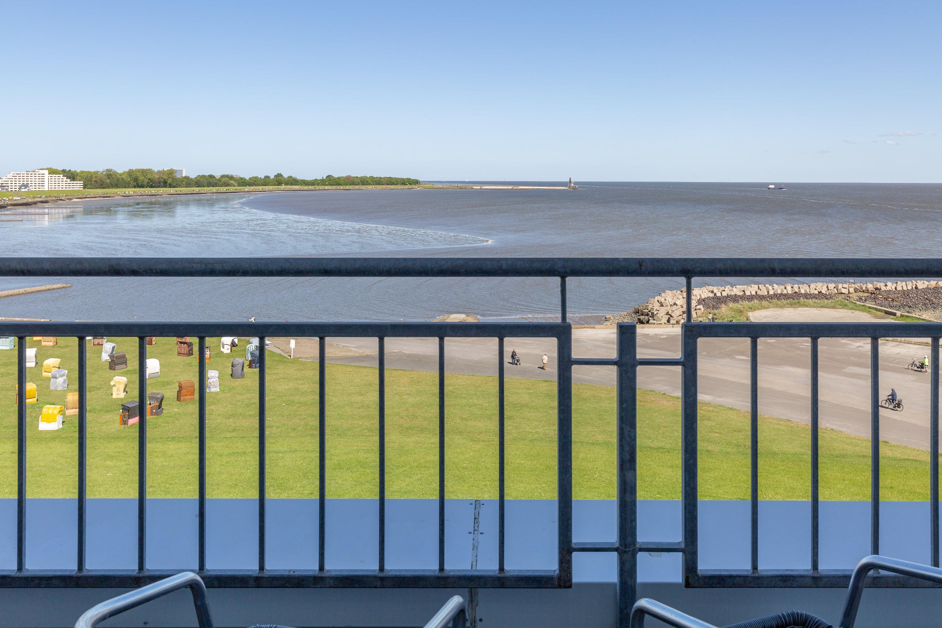 Mehr Cuxhaven geht nicht! Der spektakuläre 180 Grad-Rundumblick ist einfach unschlagbar. Hier haben Sie das maritime Treiben auf der Elbe stets im Blick. Kreuzfahrtschiffe, Kutter und Großsegler scheinen zum Greifen nah.