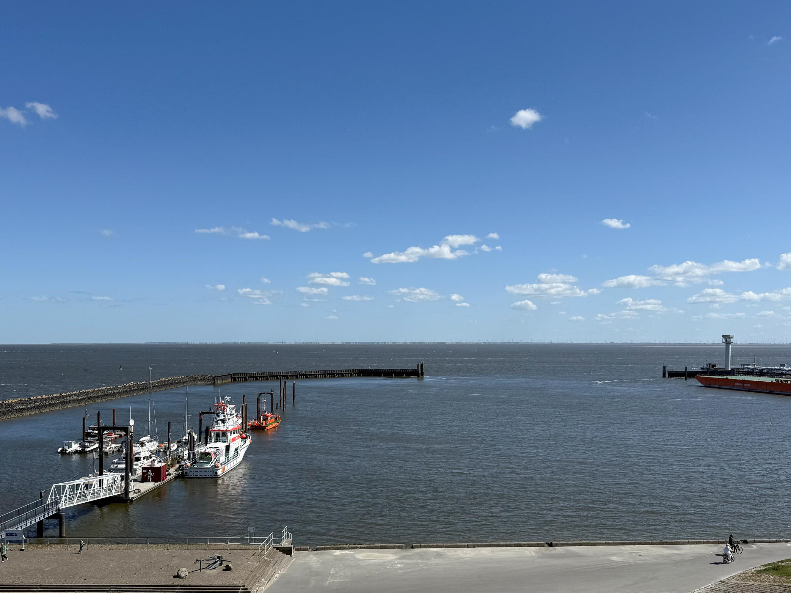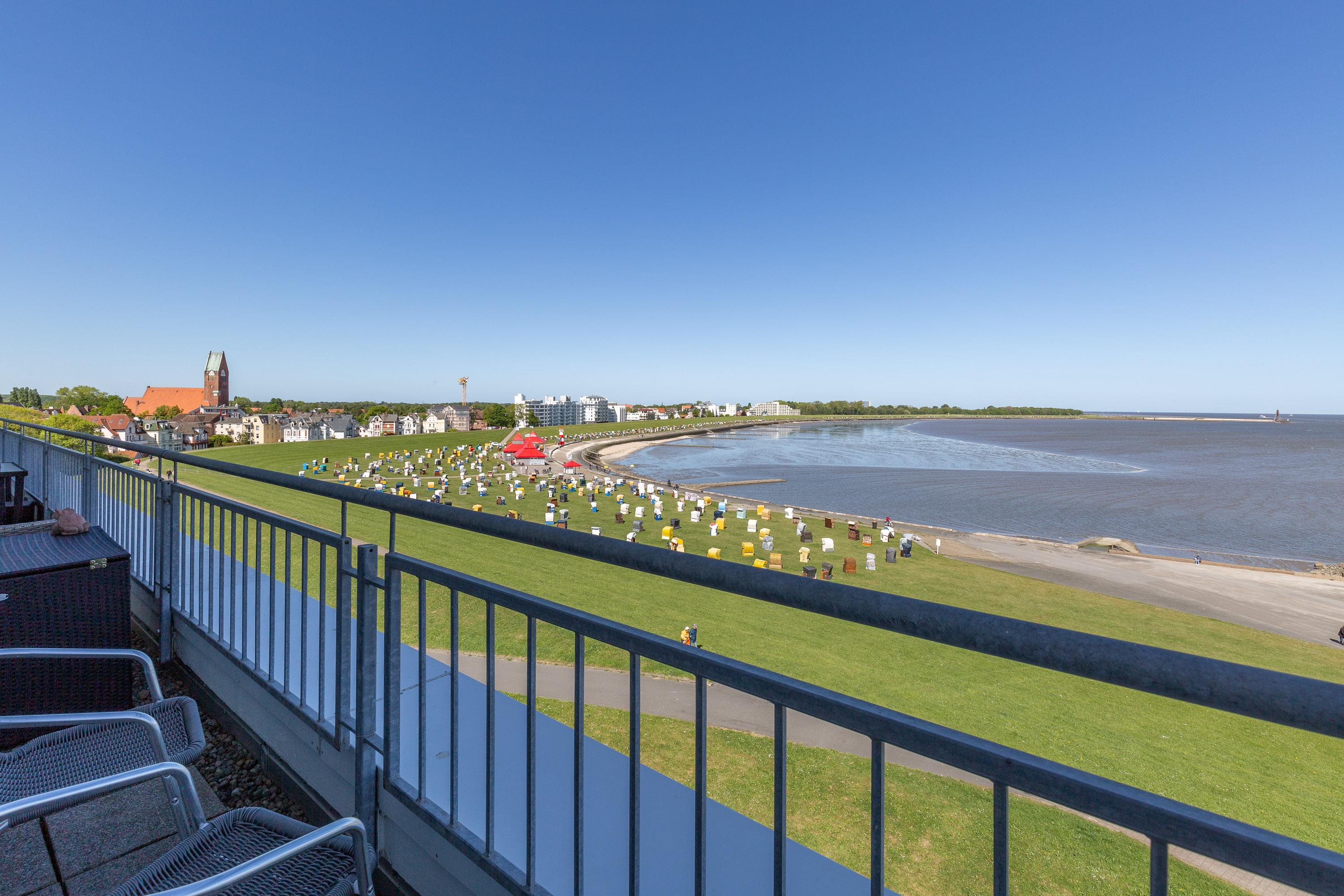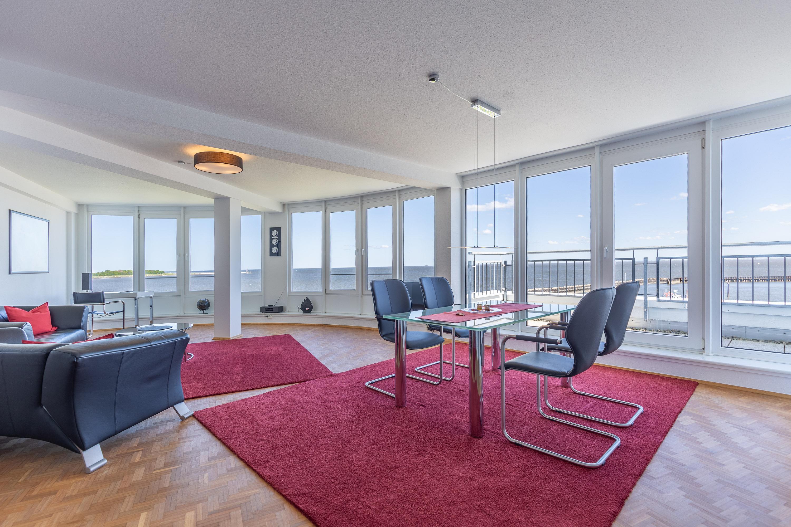 Mehr Cuxhaven geht nicht! Der spektakuläre 180 Grad-Rundumblick ist einfach unschlagbar. Hier haben Sie das maritime Treiben auf der Elbe stets im Blick. Kreuzfahrtschiffe, Kutter und Großsegler scheinen zum Greifen nah.