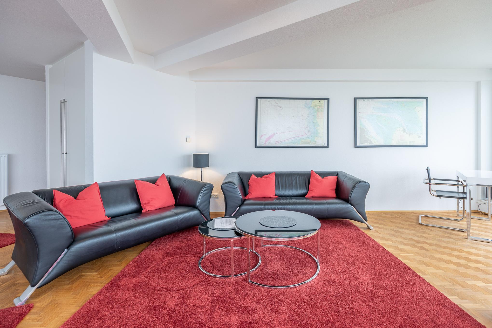 Nach einem langen und erlebnisreichen Tag können Sie sich entspannt in den hochwertigen Sofas zurücklehnen und den vorbeifahrenden Schiffsverkehr aus nächster Nähe beobachten. Drei Flachbildfernseher im Wohn- und in den Schlafzimmern sorgen dafür, dass Sie auch im Urlaub nicht auf Ihre Lieblingsserie verzichten müssen. Dank kostenlosem WLAN können Sie Ihre Urlaubseindrücke direkt mit Freunden teilen. Des Weiteren verfügt die Wohnung über 2 Balkone mit einem atemberaubenden Meerblick.