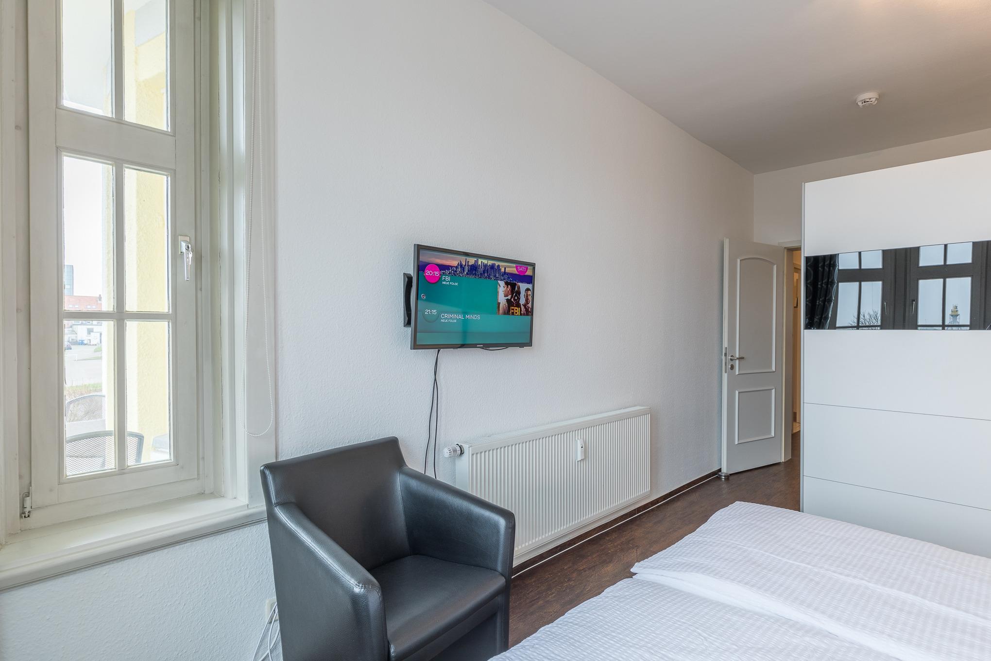 Fahrstuhl im Haus (fährt aber nur bis zur halben Etage), vom Wohnzimmer und den beiden Schlafzimmern haben Sie eine Teilseesicht, innerhalb weniger Gehminuten erreichen Sie die Alte Liebe und verschiedene Restaurants. Genießen Sie die Leichtigkeit und Weitläufigkeit unserer Ferienhäuser und die Wohlfühlatmosphäre an der Nordsee.