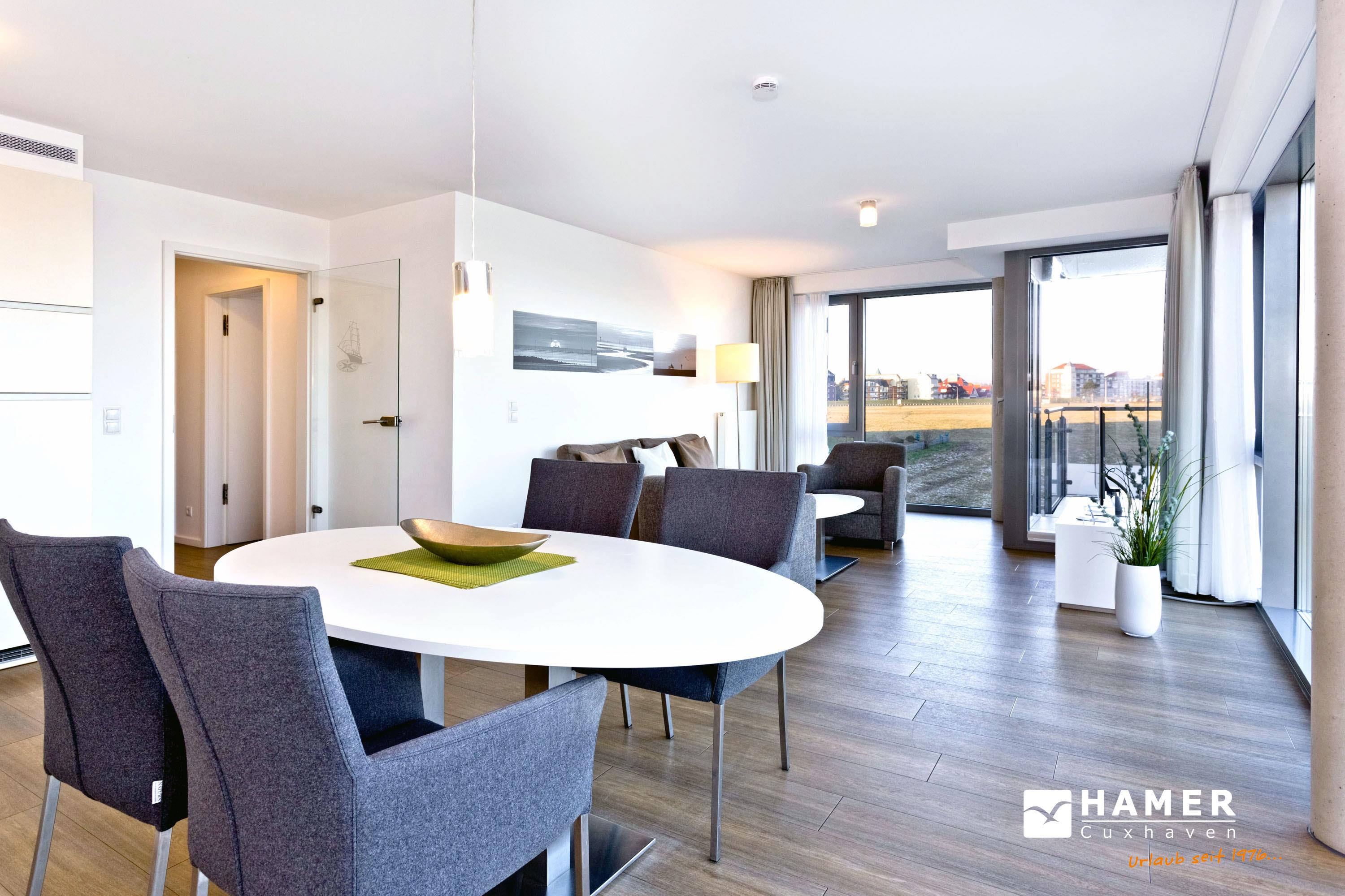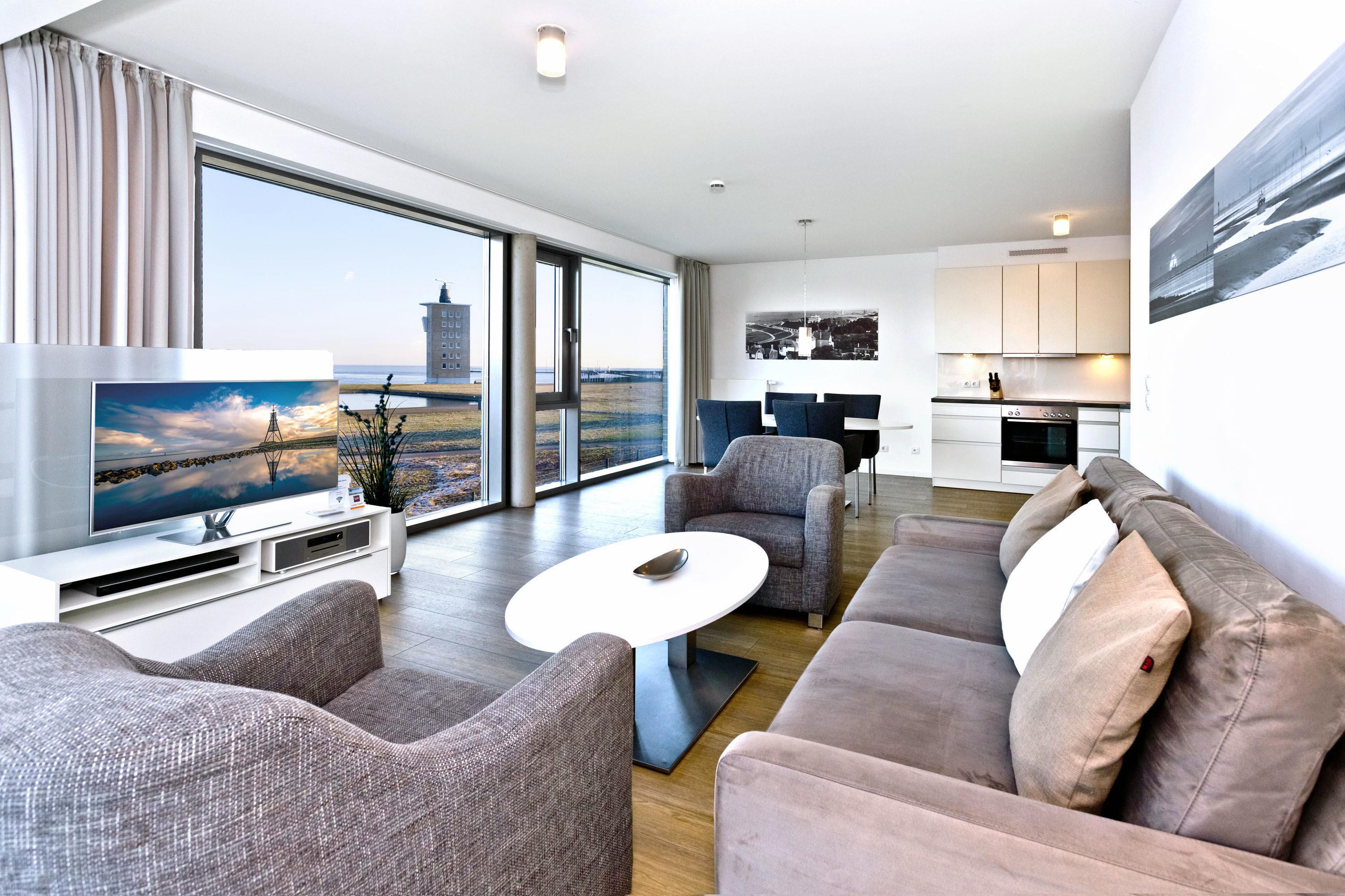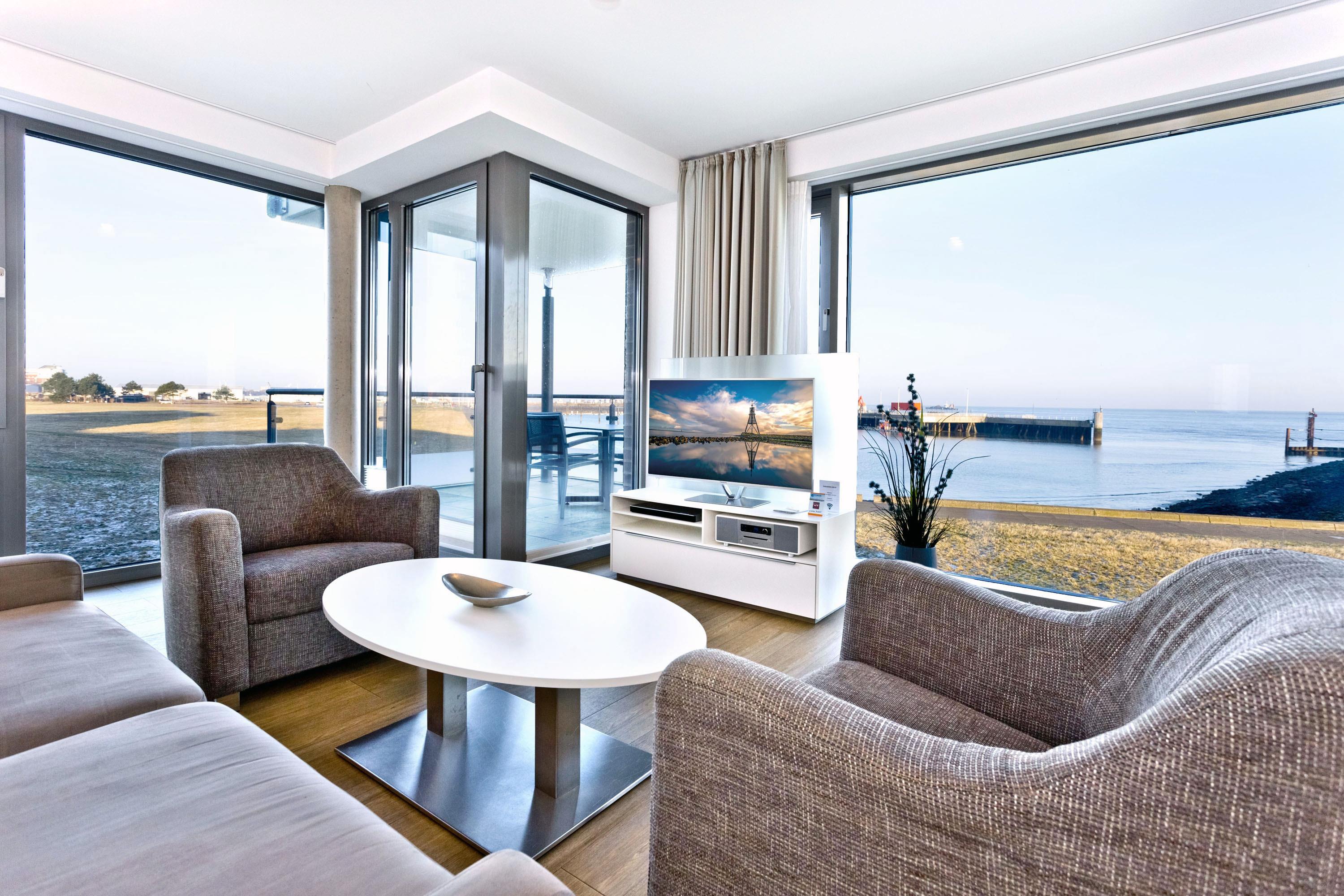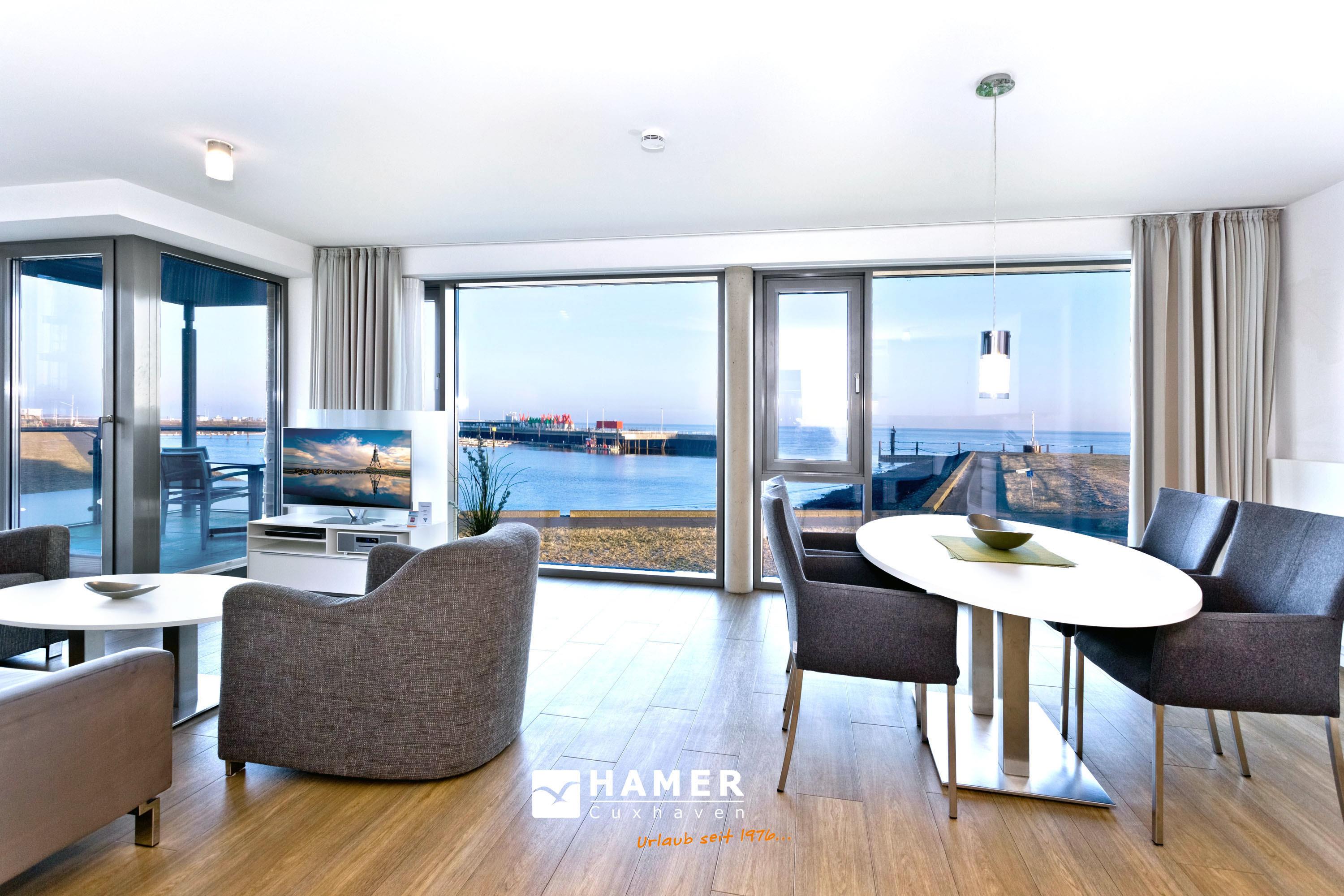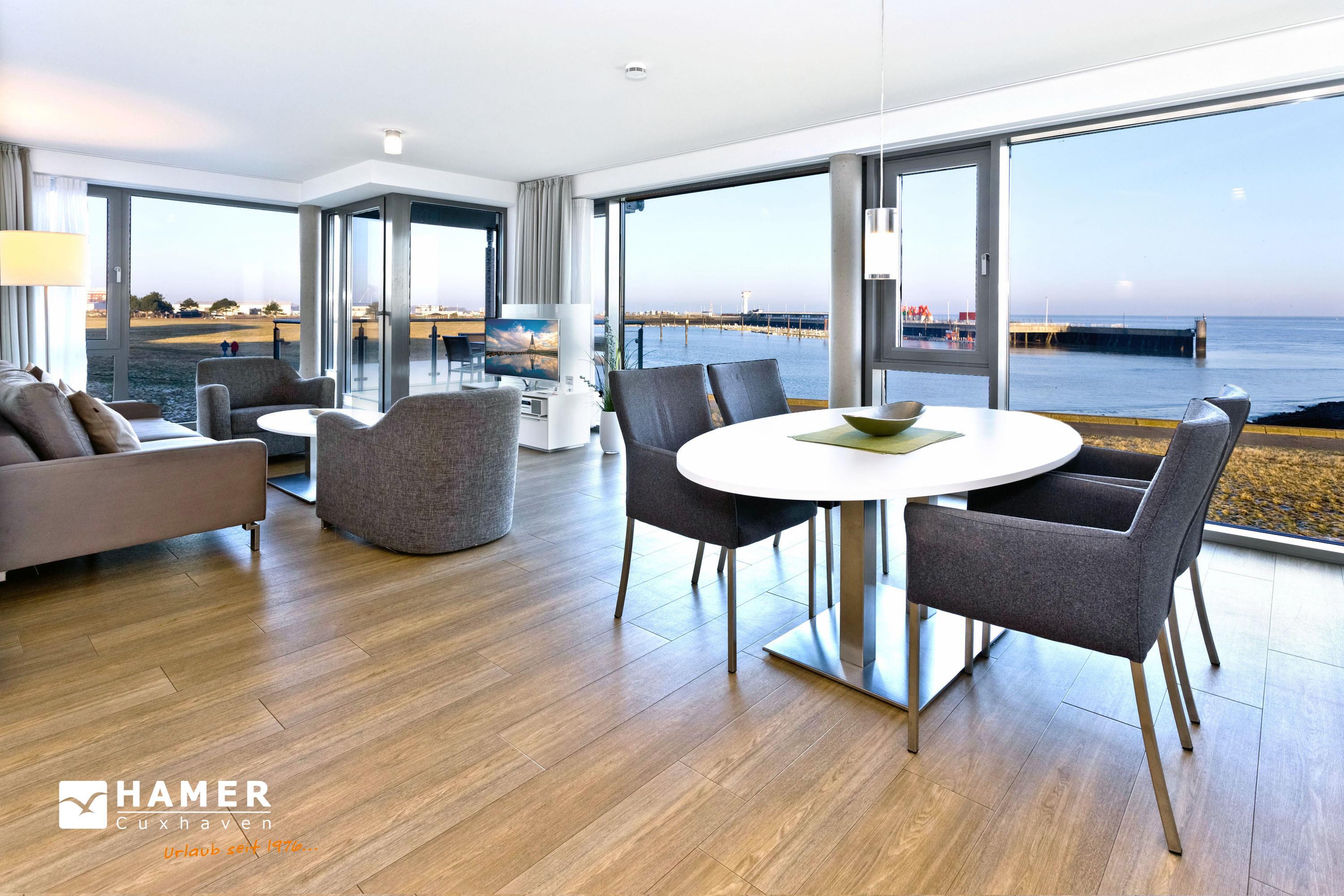 Luxuriöse 3-Zimmer-Ferienwohnung mit Panoramablick auf die Alte Liebe in Cuxhaven.