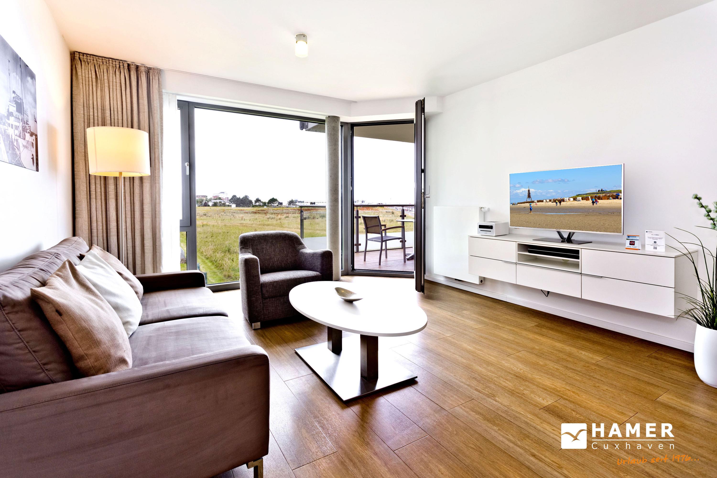 Traumhafte 2-Raum-Ferienwohnung mit Seeblick und großem Balkon in Grimmershörn für höchsten Komfort.
