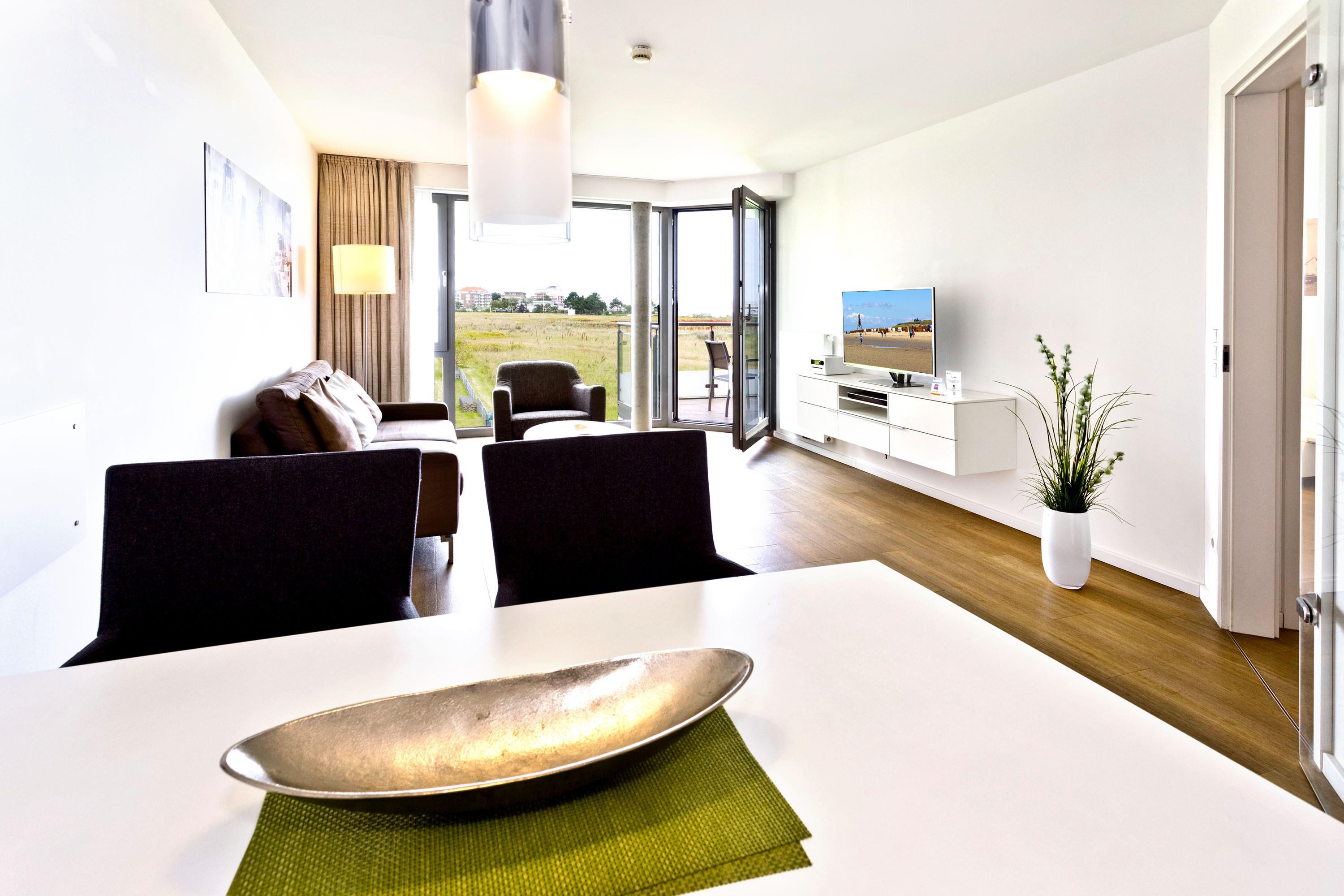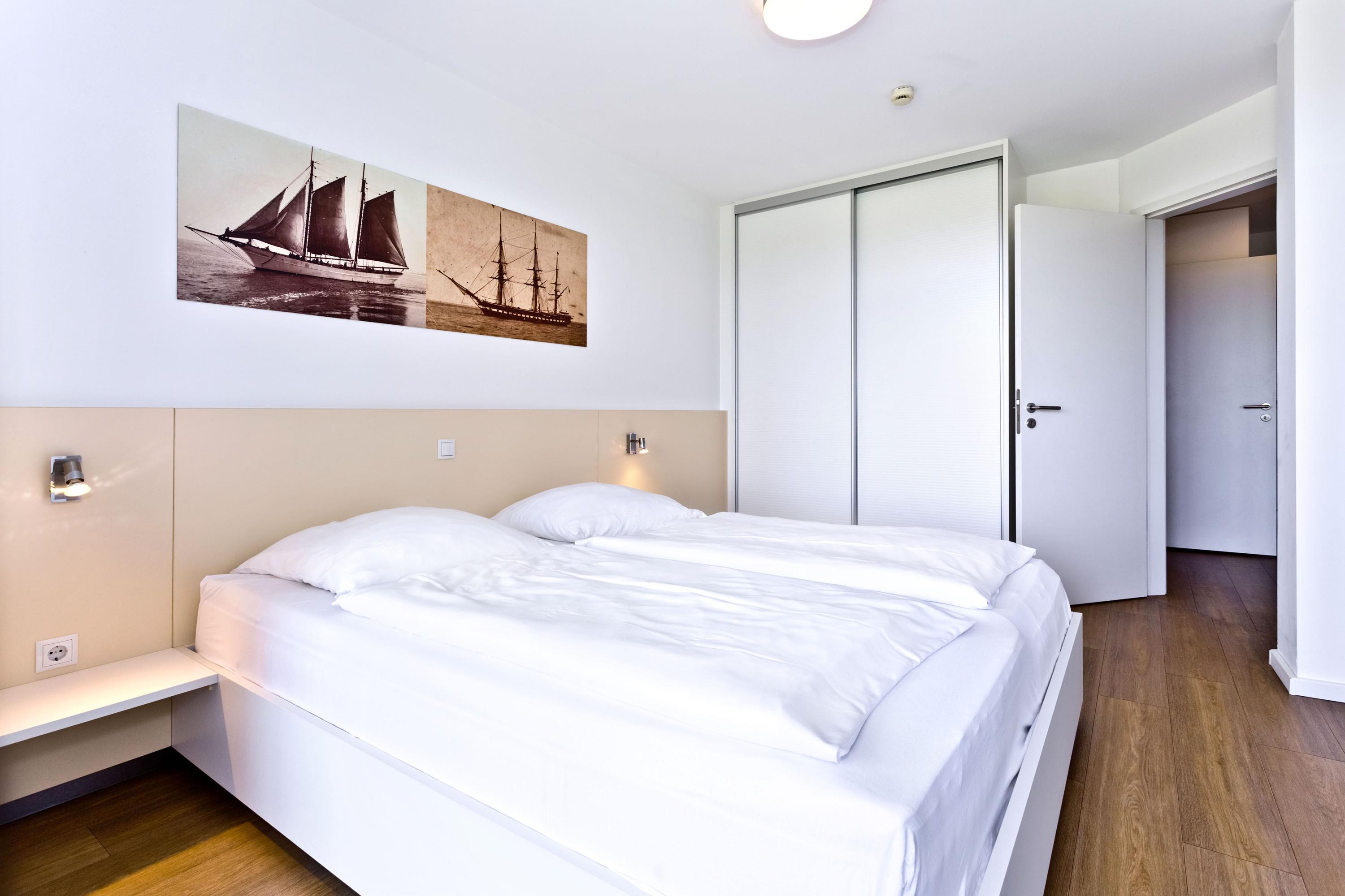 Traumhafte 2-Raum-Wohnung mit voller Seesicht in der 1.Etage mit großem Balkon (nord/west). Die vollständige Küchenzeile mit Mikro, Back., Geschirrsp. etc. garantiert höchsten Komfort. 3D-SAT-TV, Blue-Ray-DVD, Kompaktanlage, kostenloses W-Lan-Internet, separates Schlafzimmer mit Außenjalousien und hochwertigem Doppelbett, allergikerfreundlich, ebenerdige Dusche/WC, Föhn, freie Saunanutzung, reservierter Außenstellplatz, keine Haustiere und natürlich Nichtraucher.