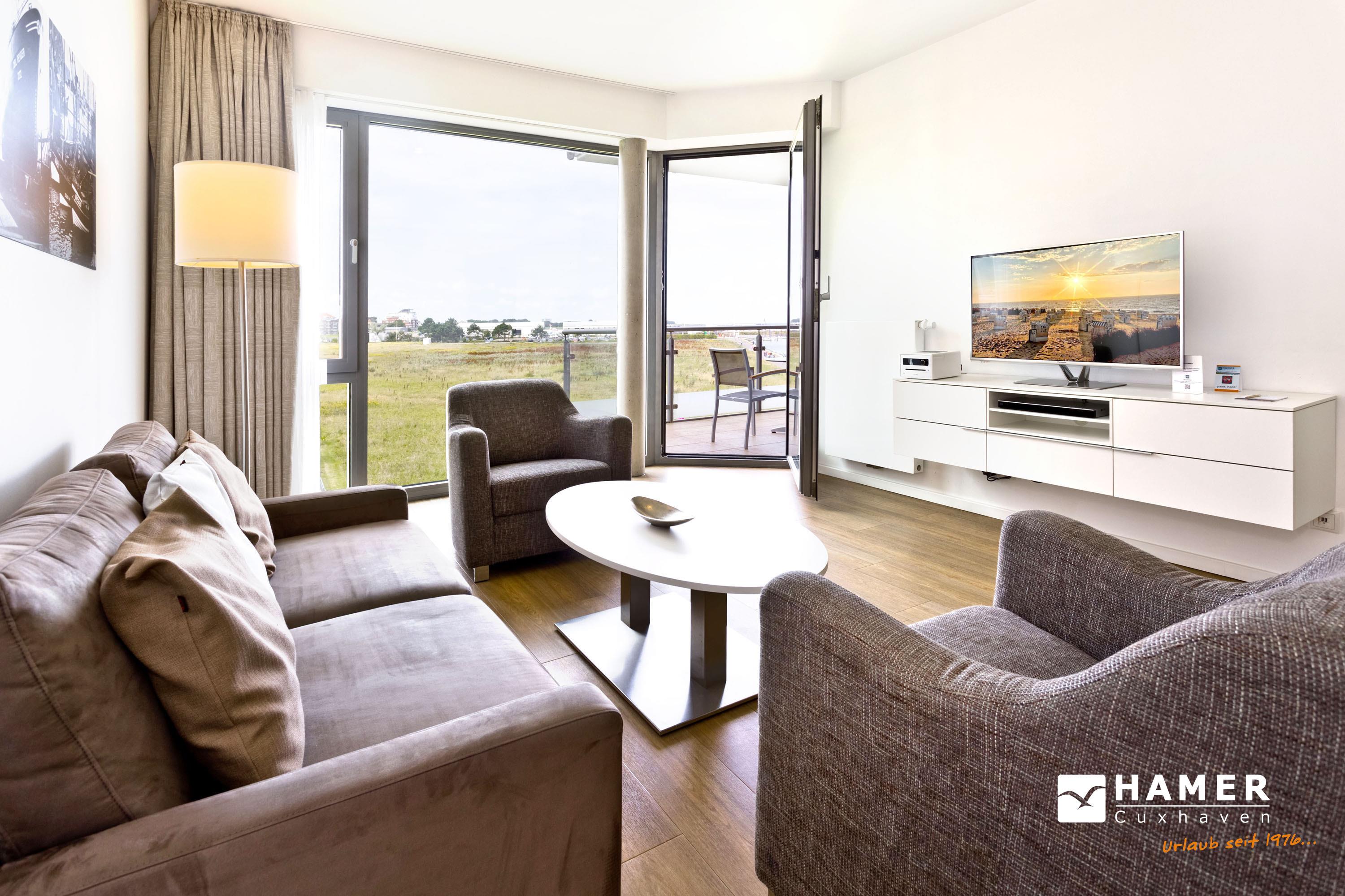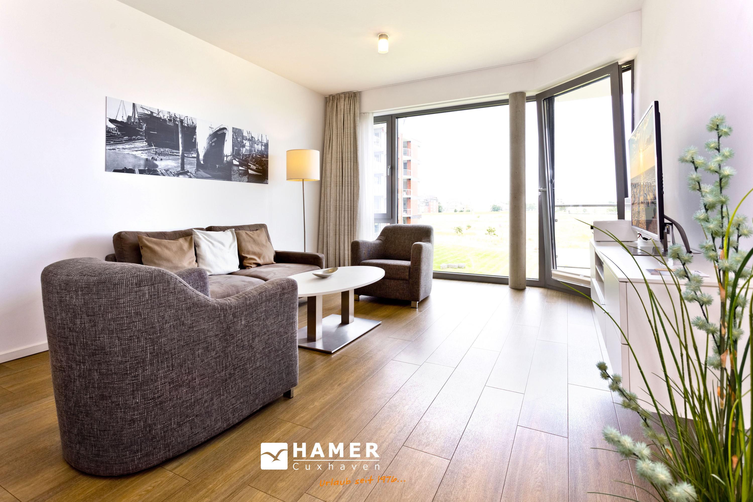 Genießen Sie eine traumhafte 2-Zimmer-Ferienwohnung mit Seeblick, großem Balkon und moderner Ausstattung in Grimmershörn.