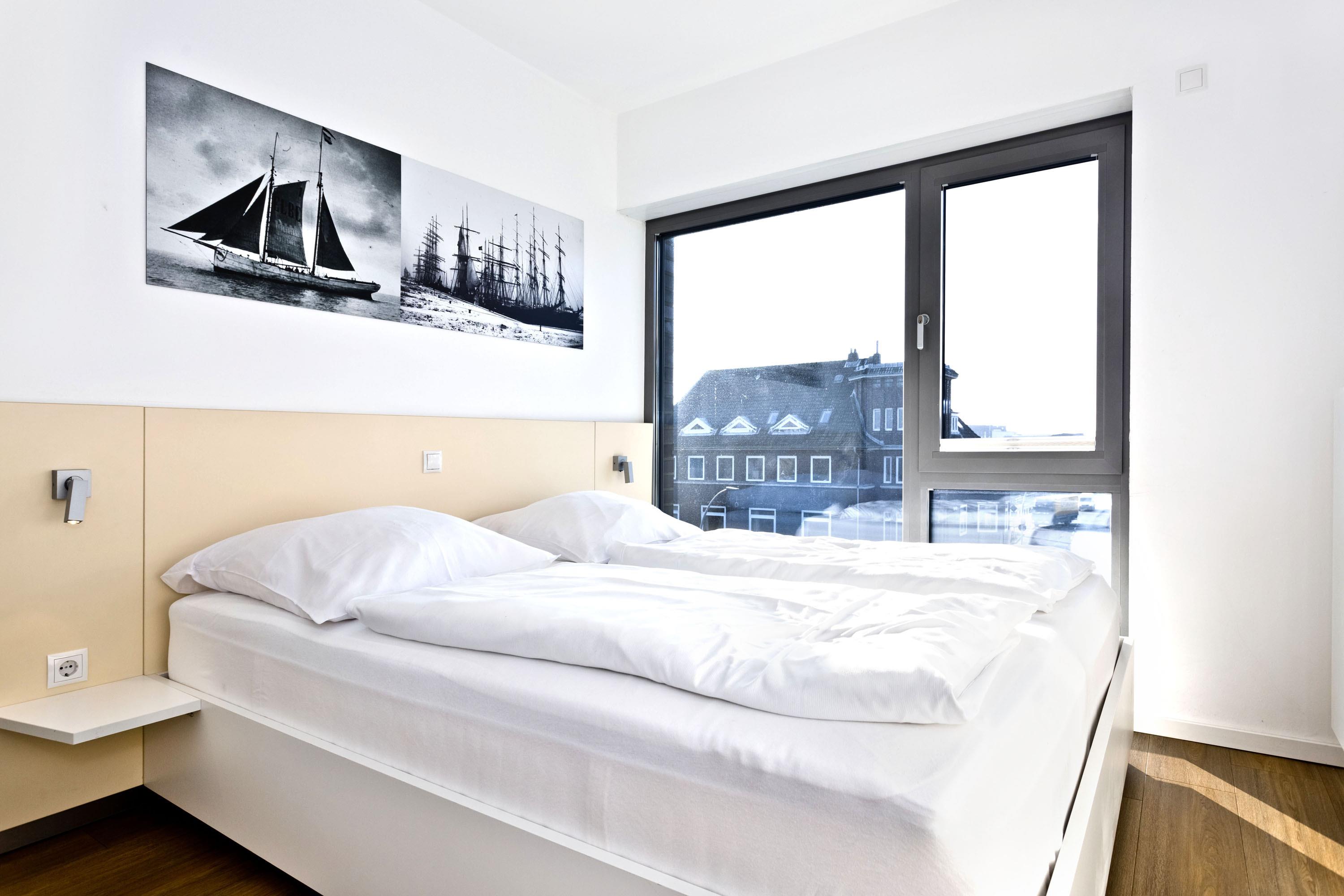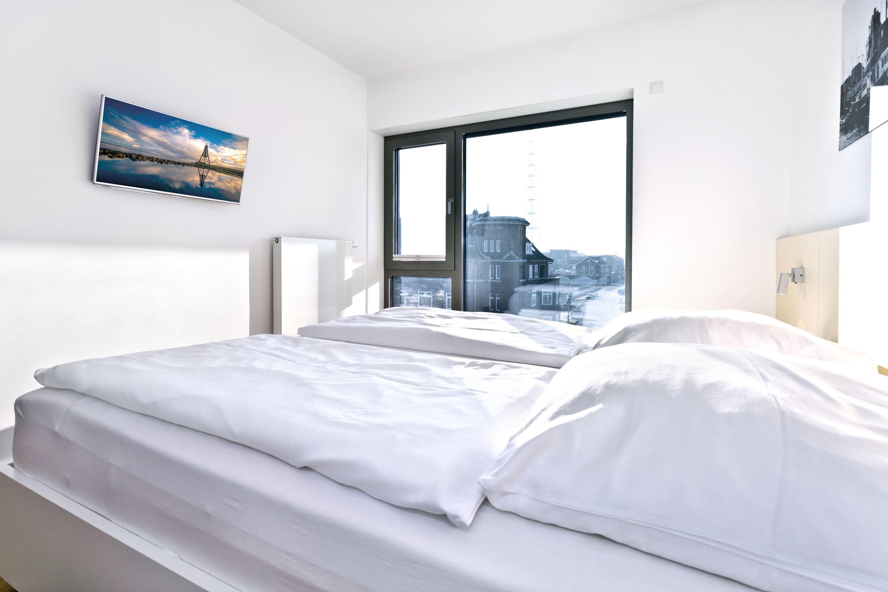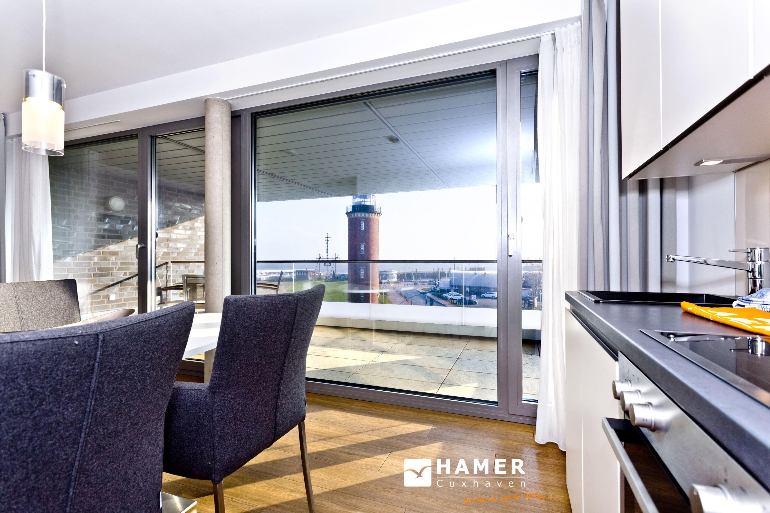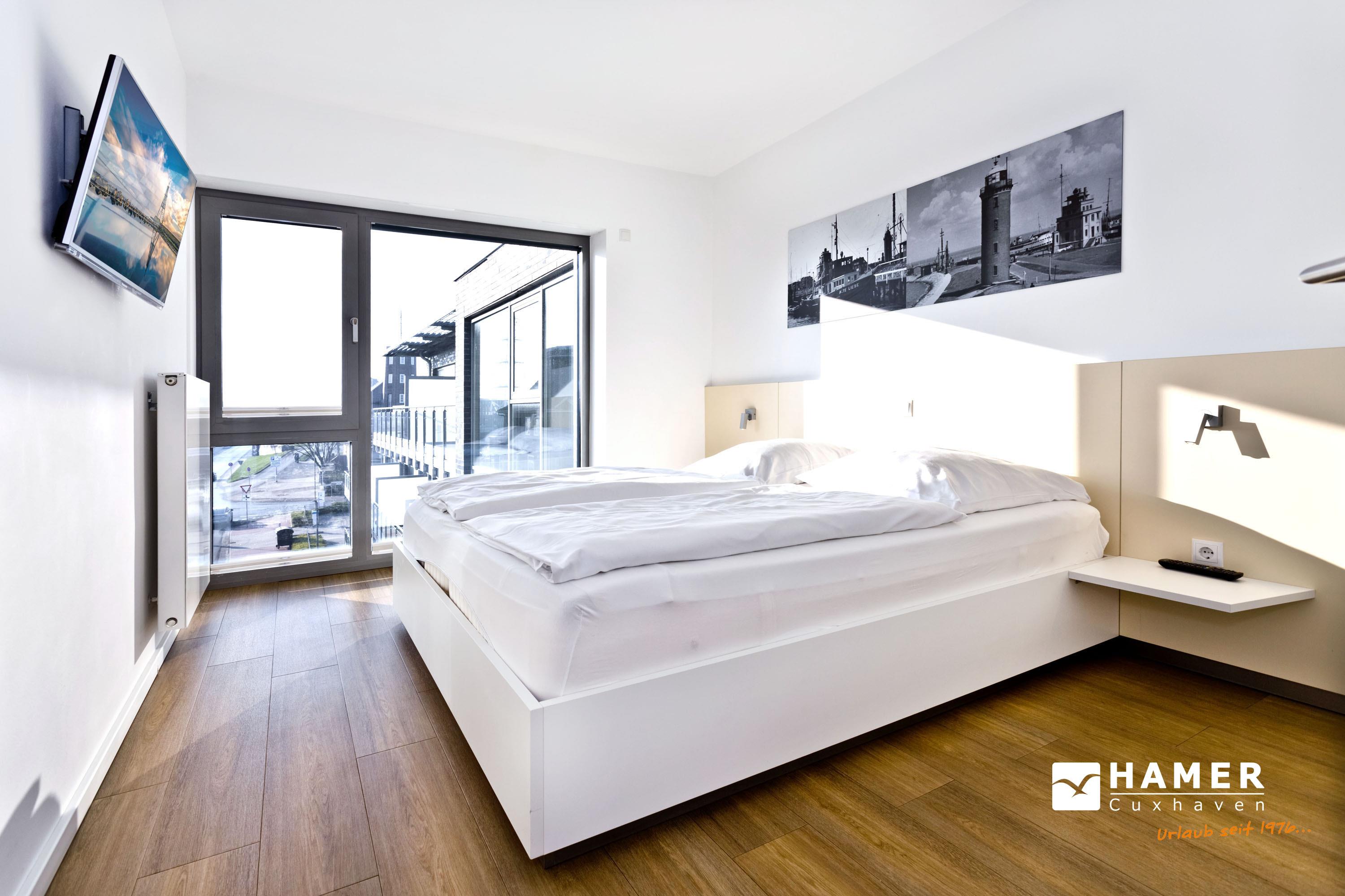 Direkter Blick auf die "Alte Liebe"! Erleben Sie hier einen der schönsten Ausblicke Cuxhavens. Tolle 3 Zi. Luxus-Wohnung über 74m², 3. Etage, großzügiges Wohnzimmer mit großem Balkon (süd/ost), vollständig ausgestattete Küchenzeile, 2 Schlafzimmer mit Doppelbetten und Außenjalousien, 2xTV, DVD, Radio/CD, kostenloses W-Lan-Internet, 1xDu/WC, 1x Gäste-WC, reservierter Stellplatz in der Tiefgarage, freie Saunanutzung, Nichtraucher, keine Haustiere.