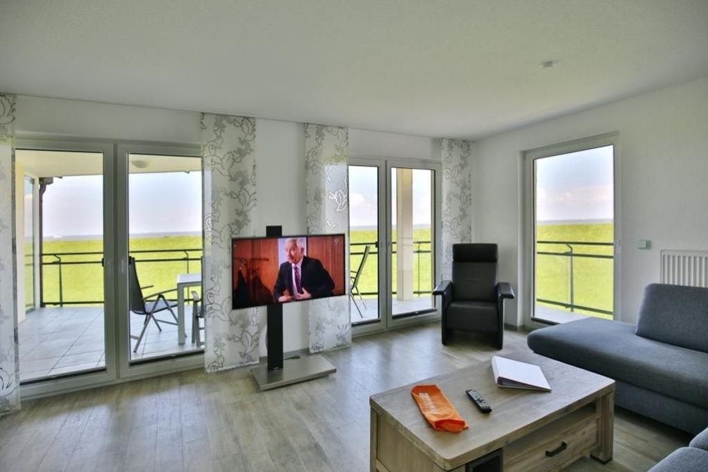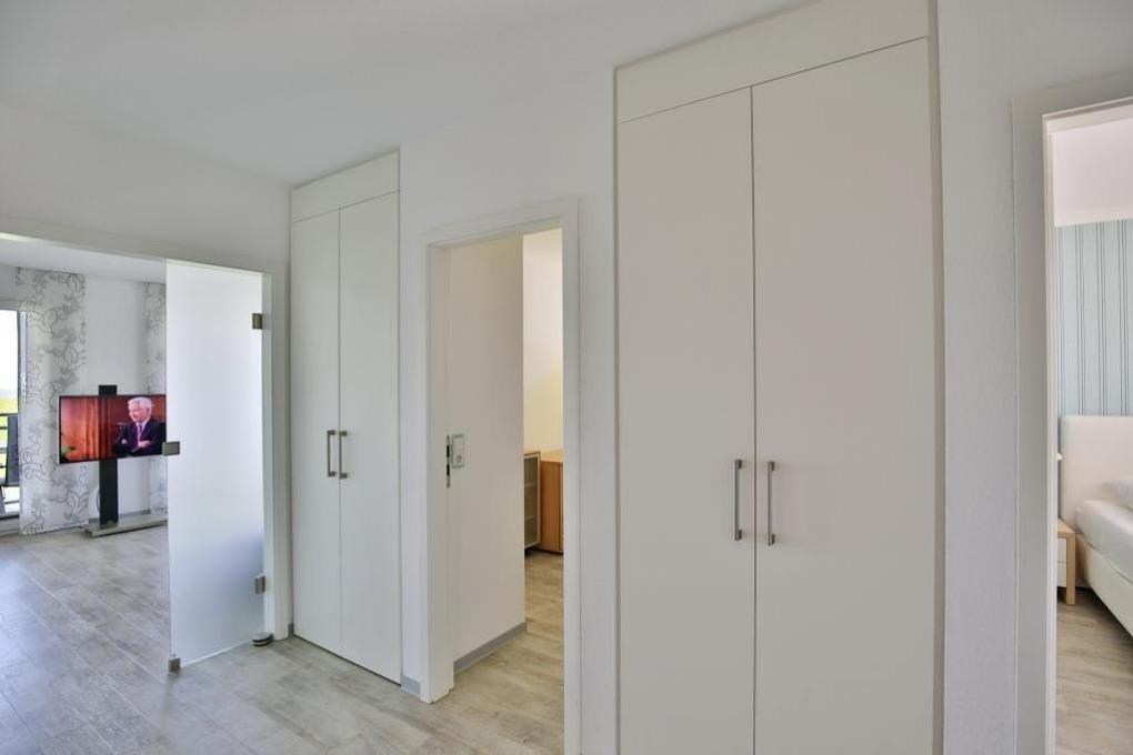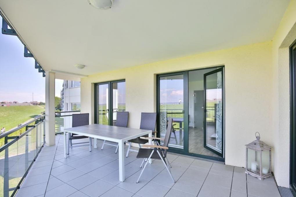 Großzügige 4-Zimmer-Wohnung über ca. 111m² auf der 2.Etage mit tollem Seeblick in die Grimmershörnbucht und auf den Weltschifffahrtsweg #1 für 4 Pers.. 1 Schlafzimmer mit Doppelbett, TV [&] Bad en Suite (WC, Urinal, ebenerdige Dusche [&] Wärmekabine), 1 Schlafzimmer mit franz. Doppelbett, Bad/Wc, Wohnzimmer mit vollausgestatteter Küchenzeile (neu 11/2018) (Back., Mikrow., Geschirrspüler) Sat-TV mit Bluray-Player, kostenloses W-Lan, großer umlaufender Balkon (nord/ost/süd) mit Strandkorb, Ankleidezimmer, Garage #11 im Innenhof mit elektr. Tor, kostenfreie Waschmaschine/Trockner im Erdgeschoss, keine Haustiere gestattet, Nichtraucher.