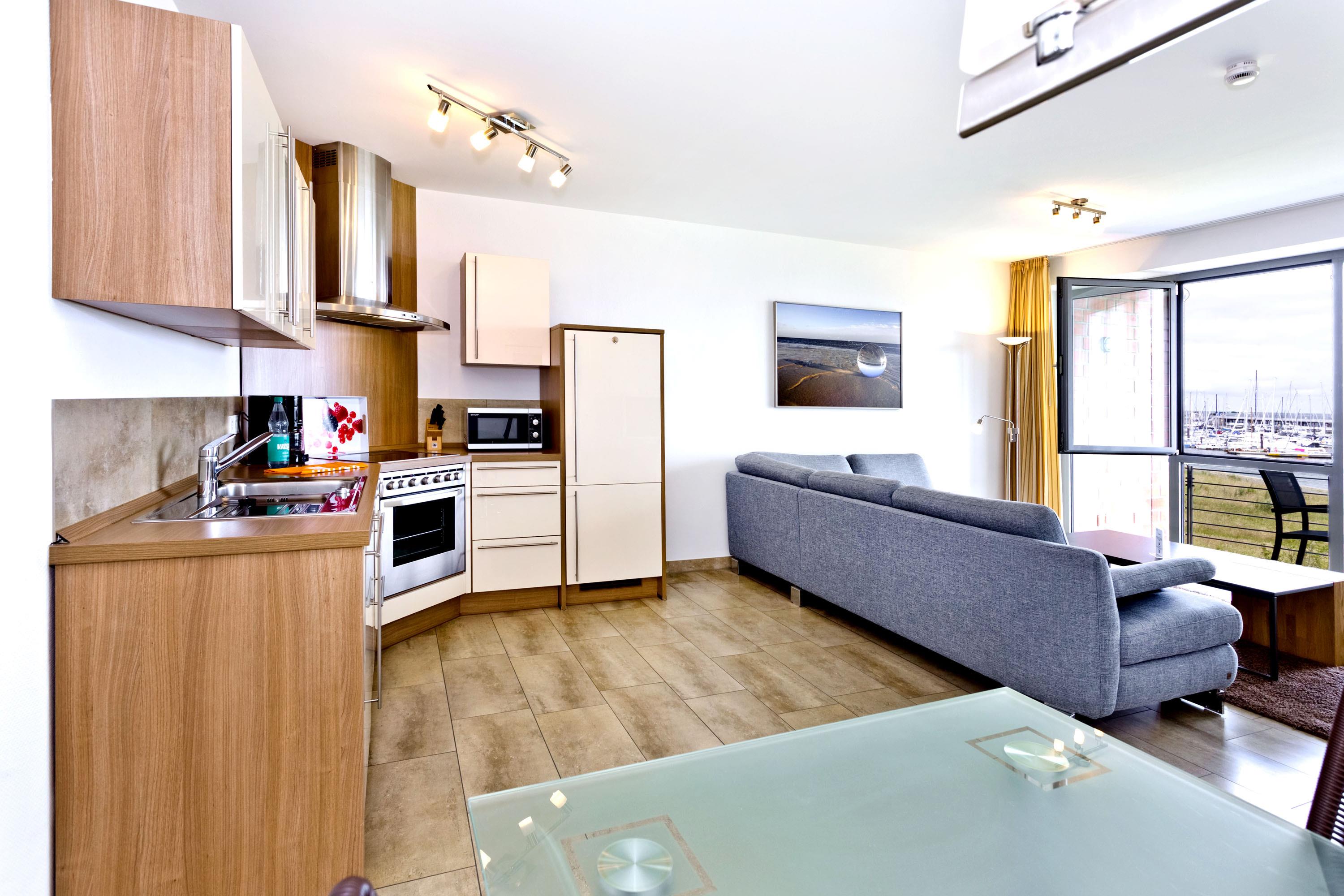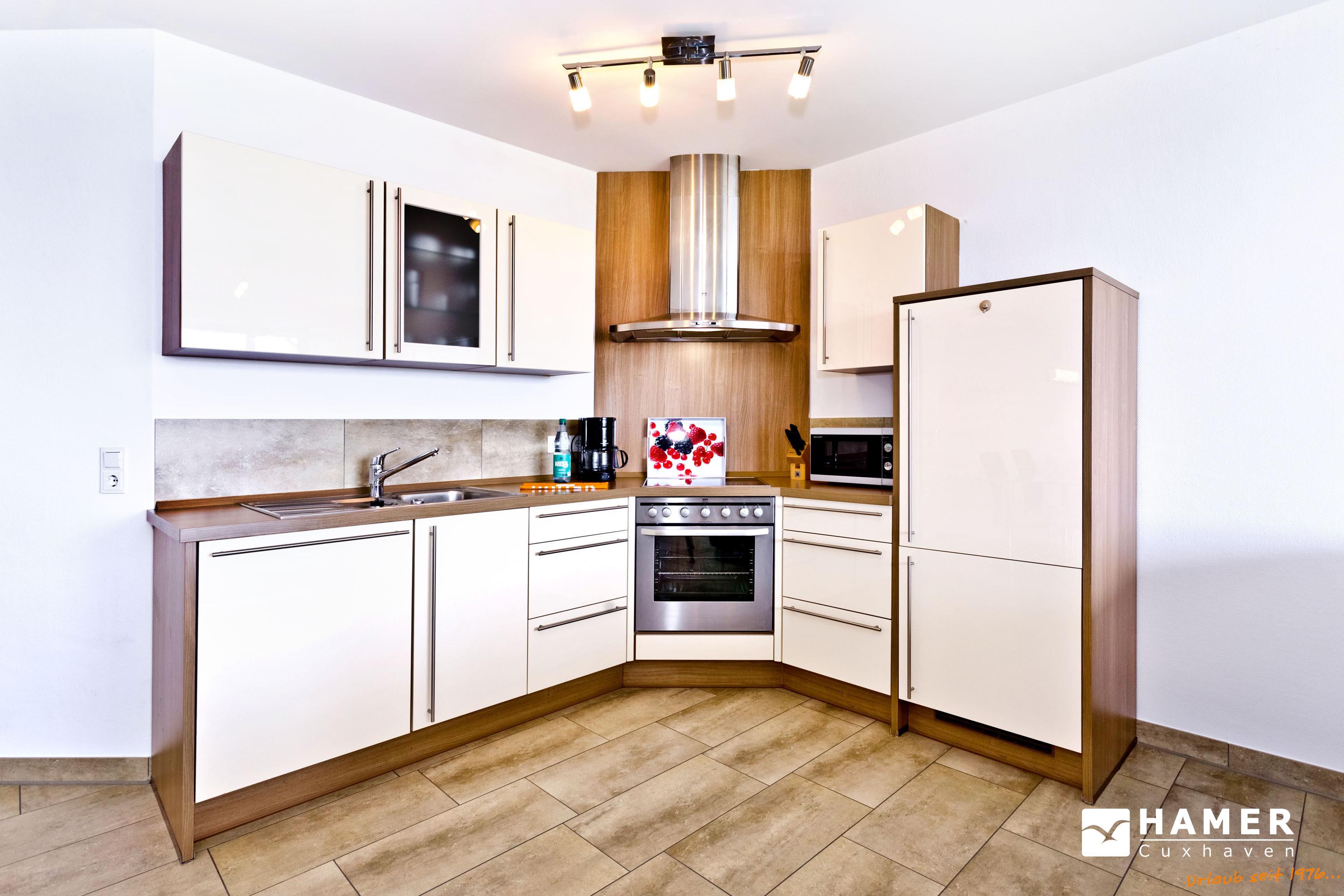 Geschmackvolle 102m² Wohnung in der 1.Etage. Hier haben Sie die Traumseesicht auf den Weltschifffahrtsweg und die Hafenanlagen. 1 Schlafzimmer mit Doppelbett, 1 Schlafzimmer mit 2 Einzelbetten, 1 Bad/Du/Wc und 1 Gäste Wc, Föhn, großes Wohnzimmer mit komplett ausgestatteter Küchenzeile (Kühlschrank ohne Gefrierfach), 2 große Balkone (nord+süd). Die Schlafzimmer verfügen über Rollläden. Zur Wohnung gehört der reservierter Pkw-Stellplatz #10 am Haus. Keine Haustiere. Nichtraucher. Fahrräder können auch bequem und sicher im ebenerdigen Fahrradraum des Nachbargebäudes abgestellt werden (separater Schlüssel).