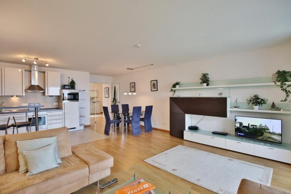 Großzügige 102m² Wohnung in der 1.Etage. Hier haben Sie die Traumseesicht auf den Weltschifffahrtsweg und die Hafenanlagen. 1 Schlafzimmer mit Doppelbett und TV, 1 Schlafzimmer mit Schlafsofa, 1 Bad/Du/Wc und 1 Gäste-Wc, sehr großes Wohnzimmer mit komplett ausgestatteter Küchenzeile, TV u. BlueRay DVD, Radio mit Dockingstation, 2 große, windgeschützte Balkone (nord+süd). Alle Räume sind mit Parkett gestaltet und verfügen über Rollläden. Zur Wohnung gehört ein reservierter Pkw-Stellplatz in der Tiefgarage. Keine Haustiere. Nichtraucher.