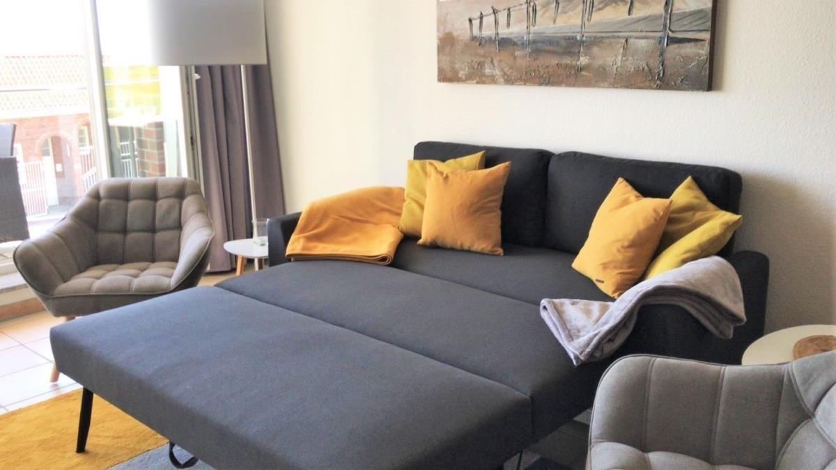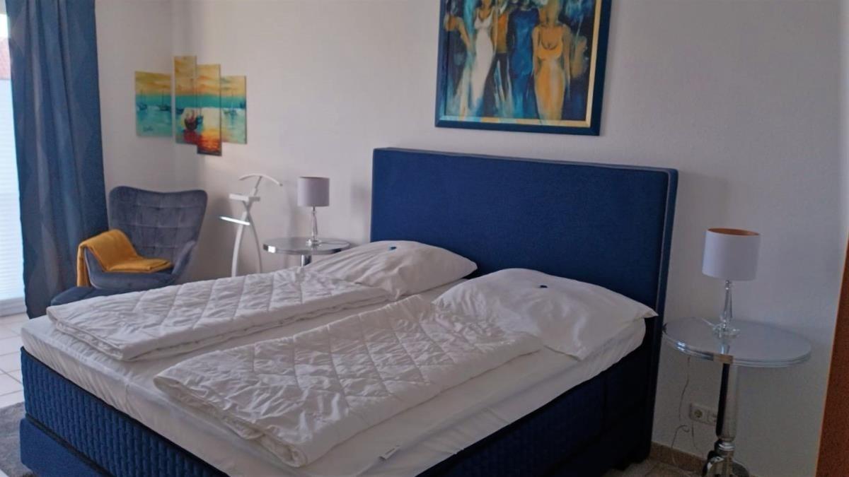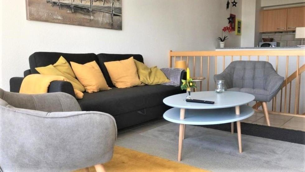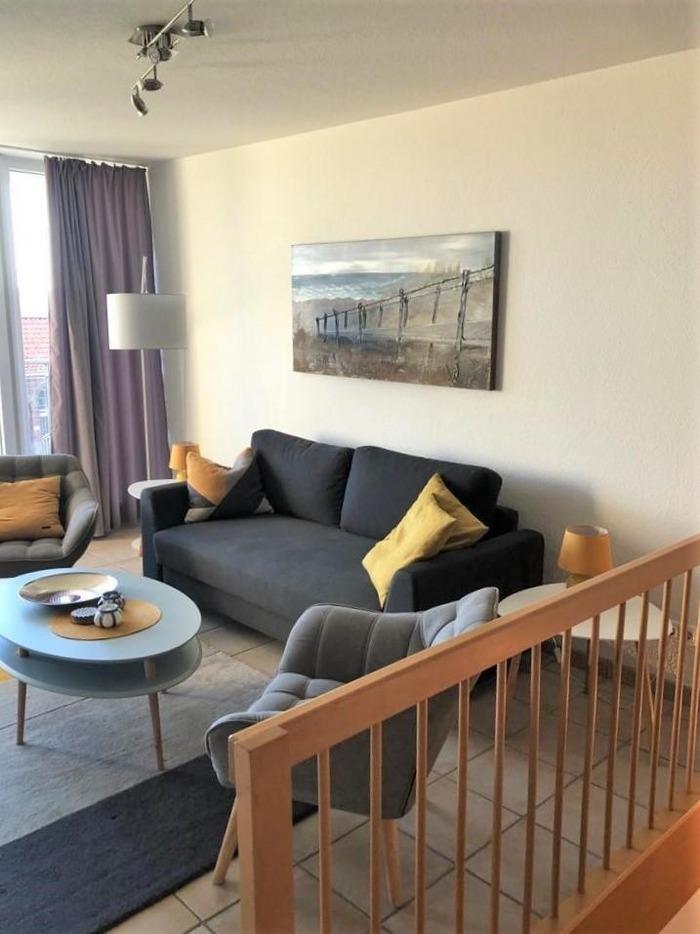 Die hochwertige Ferienwohnung erstreckt sich über zwei Etagen (Erdgeschoss [&] 1. Obergeschoss) und bietet auf ca. 60 m² Platz für bis zu 4 Personen. Der helle Wohnbereich mit gemütlichem Schlafsofa (160 x 200 cm), TV sowie Radio mit CD-Player lädt zum Entspannen ein. Das separate Schlafzimmer ist mit einem luxuriösen Boxspringbett (180 x 200 cm, zwei Matratzen [&] Topper) ausgestattet und sorgt für erholsame Nächte.