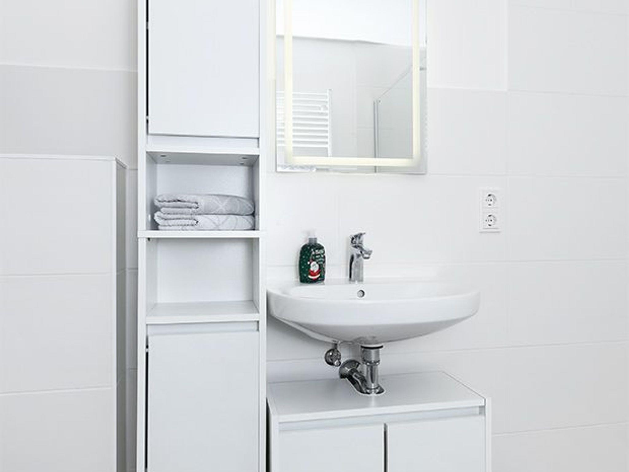 Weiter Highlights der Wohnung sind die Küche mit Backofen, die ruhige Lage mit Terrasse, der kostenlose WLAN Internetzugang, sowie das moderne Badezimmer mit ebenerdiger Dusche.