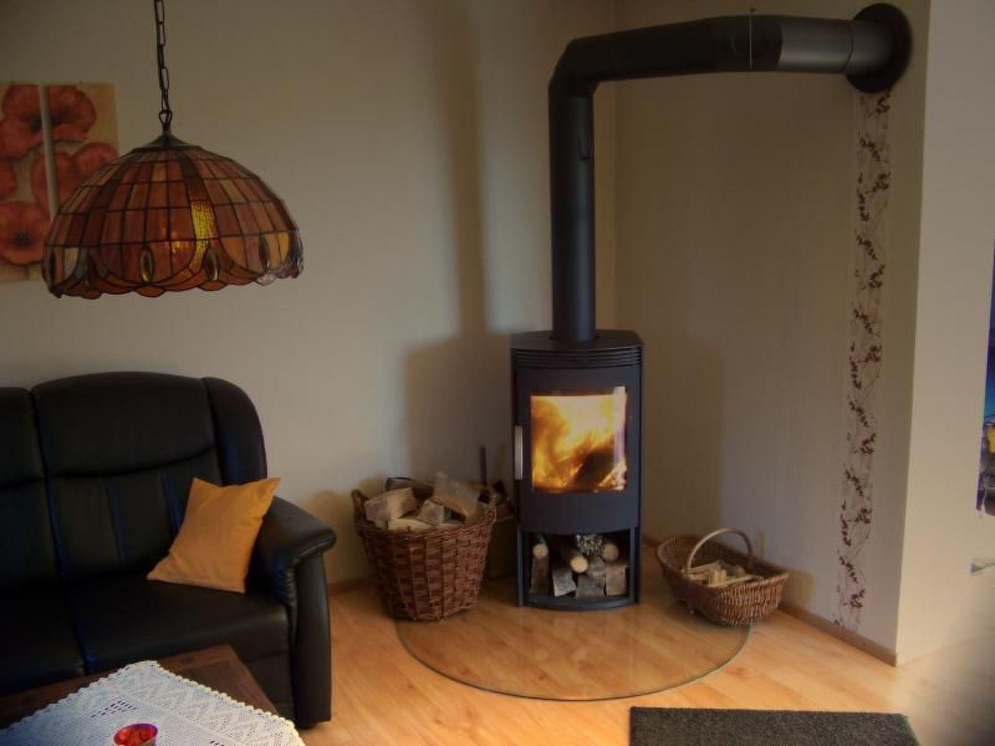 Sie erreichen alle Räume über einen Hausflur mit Treppenhaus. Küche und Wohnzimmer befinden sich in einem modernen, großzügigen Raum. Neben einer gemütlichen Sitzecke mit Ledercouch und Kaminofen ist auch ein Esstisch mit vier Stühlen vorhanden. Die Küche ist komplett, auch mit einer Spülmaschine ausgestattet. Im Wohnbereich finden Sie neben dem Sat-TV auch einen DVD-Player. Von der Küche aus erreichen Sie die südlich gelegene Terrasse mit freiem Blick auf Wiesen und Felder. Im Erdgeschoss befindet sich außerdem das moderne Bad mit Dusche und Wanne, das WC (extra) und ein Schlafzimmer mit Doppelbett. Das zweite Schlafzimmer befindet sich im Obergeschoß des Hauses. Es ist mit einem weiteren Sat-TV,, einer Sitzecke mit Couch und zwei Sesseln ausgestattet. Das kleinste Zimmer findet Platz auf 6 qm und ist mit einem Einzelbett, einem kleinen Sekretär und einer Nachtkonsole ausgestattet. Es kann als Arbeits- oder auch Spielzimmer genutzt werden. Die Internetnutzung erfolgt über WLAN (Vodafone Gigacube, 4G)und ist im ganzen Haus und auf der Terrassen verfügbar.