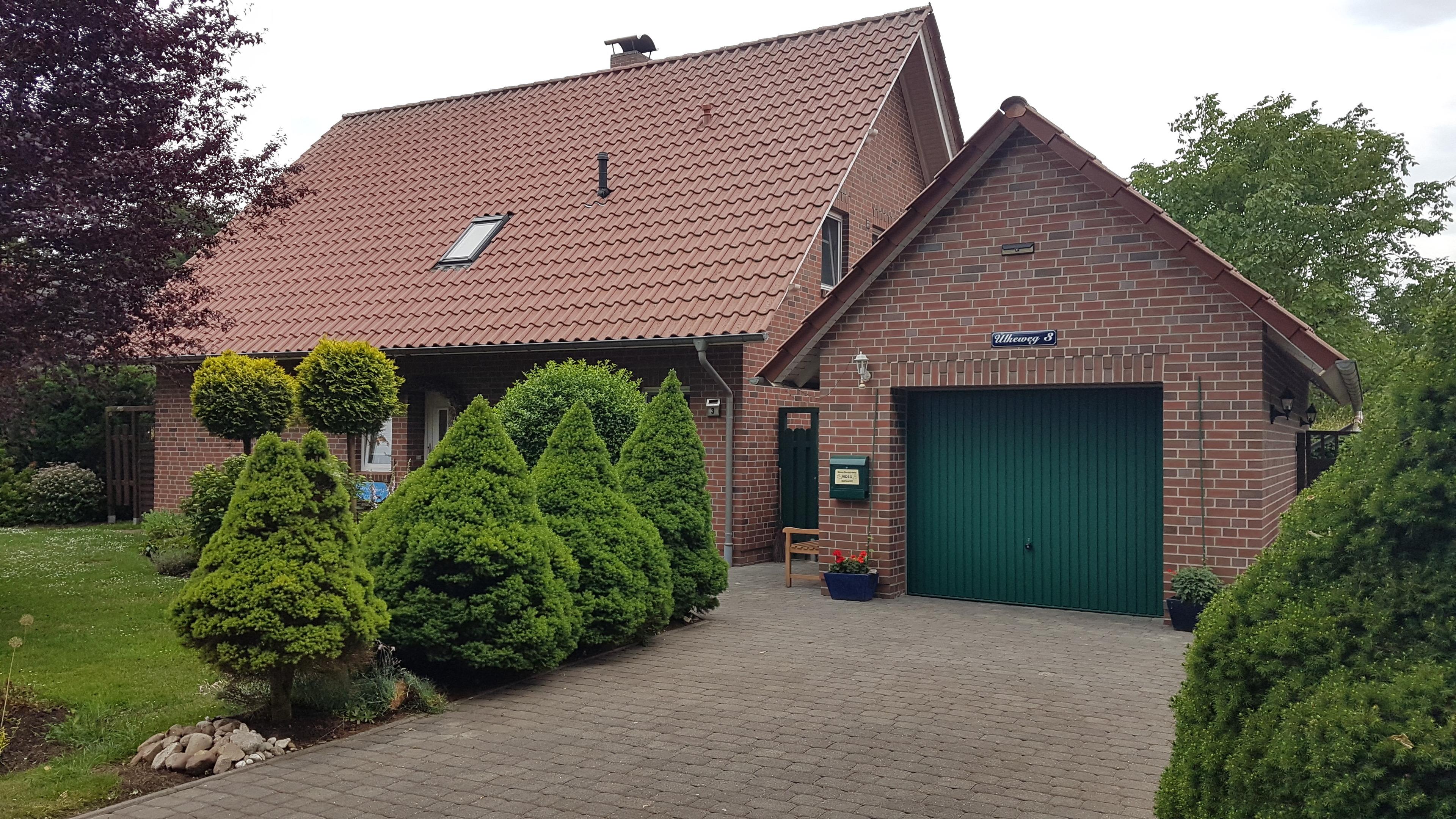 in einer herrlichen Wallheckenlandschaft mitten in Ostfriesland, im Geestdorf Strackholt.