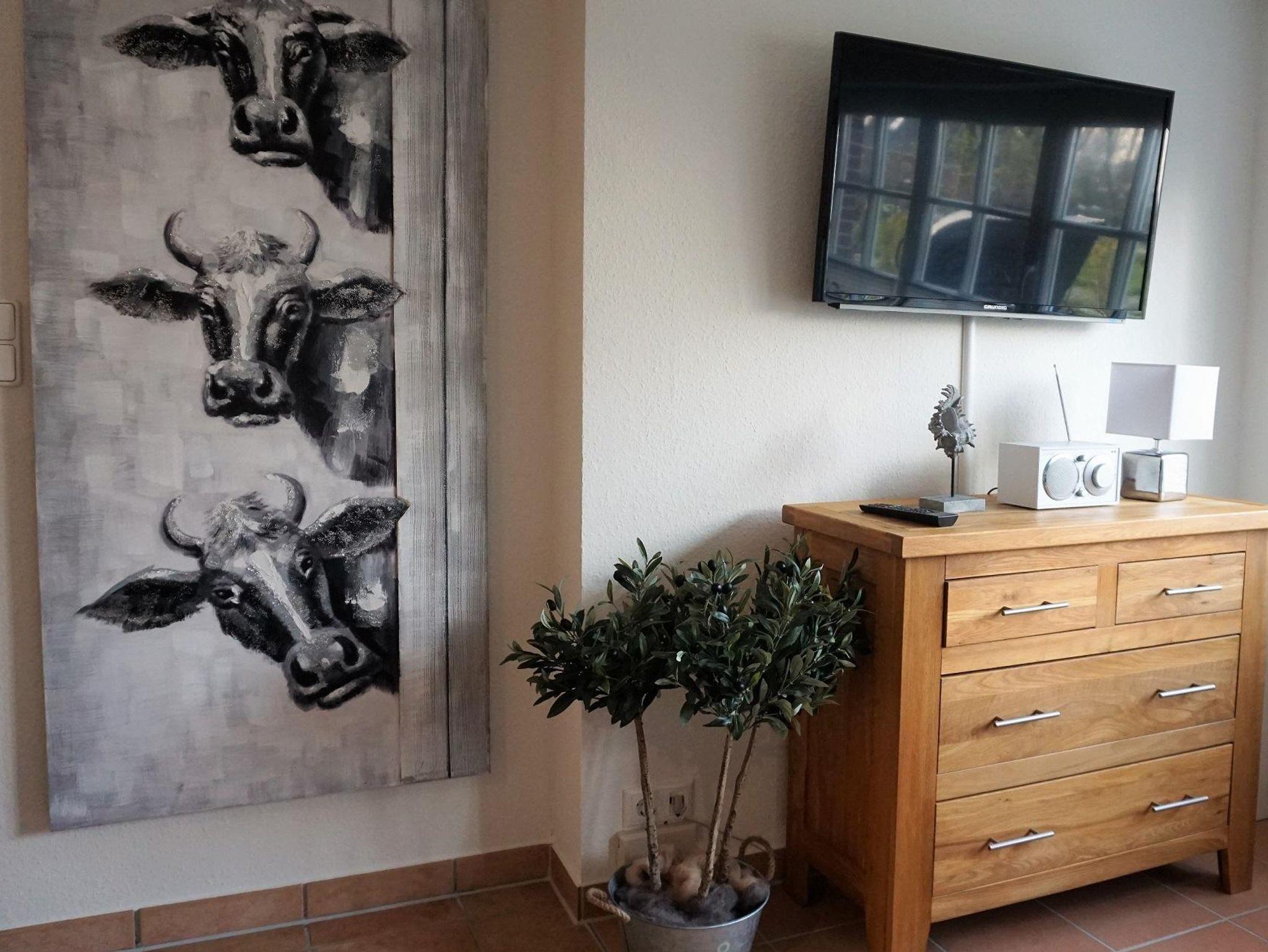 Ferner ist die Wohnung mit einem TV-Flachbildschirm, CD- und DVD-Player ausgestattet.