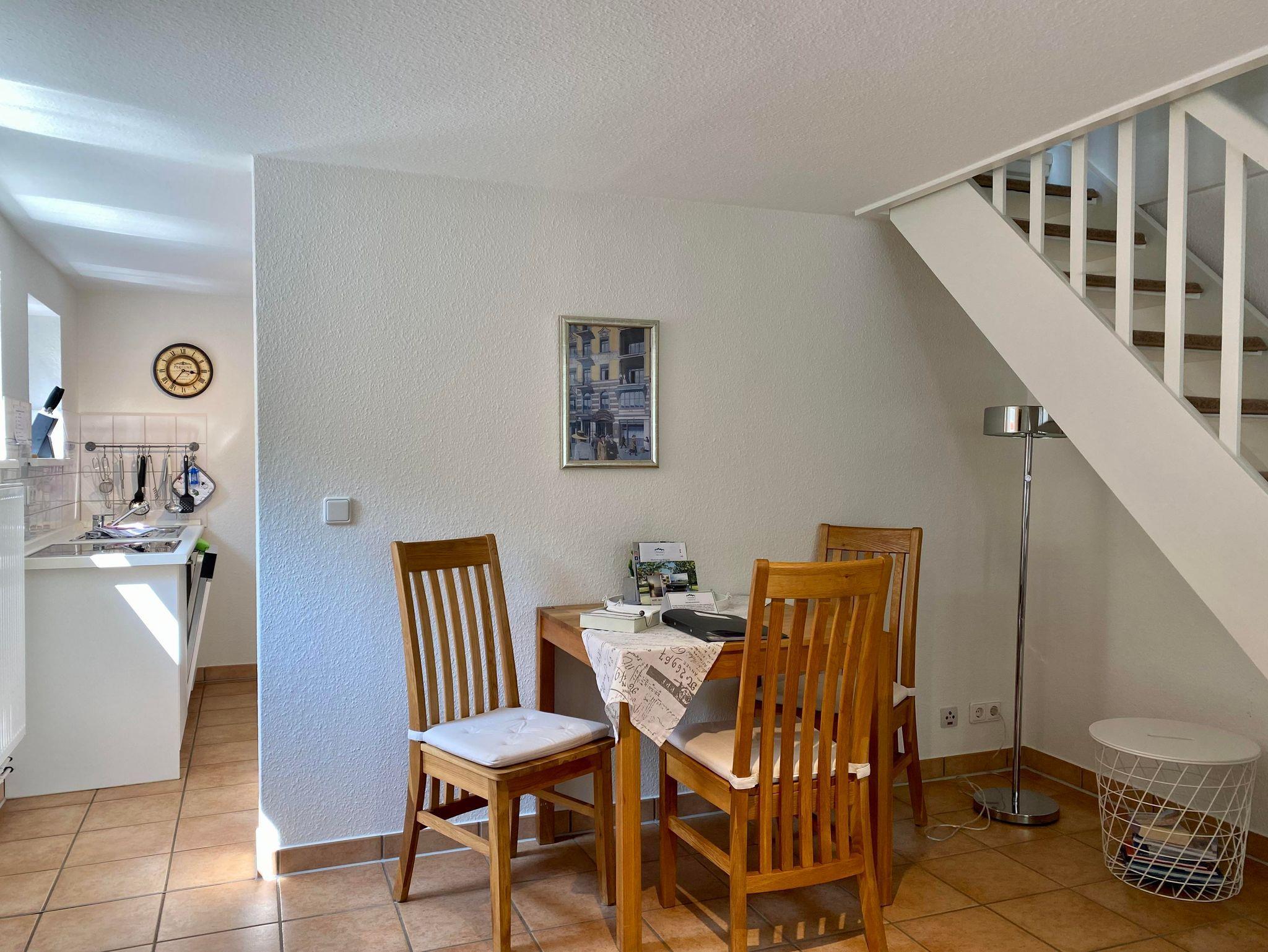 Die ansprechend ausgestattete 2-Zimmer Maisonette-Wohnung ist geschmackvoll möbliert. Ausreichend Platz bietet der großzügige Einbauschrank im OG sowie eine separate Garderobe mit Abstellraum im EG. Der Wohnbereich ist mit Terrakotta-Fliesen, der Schlafbereich mit einem Holzdielenfußboden ausgestattet.