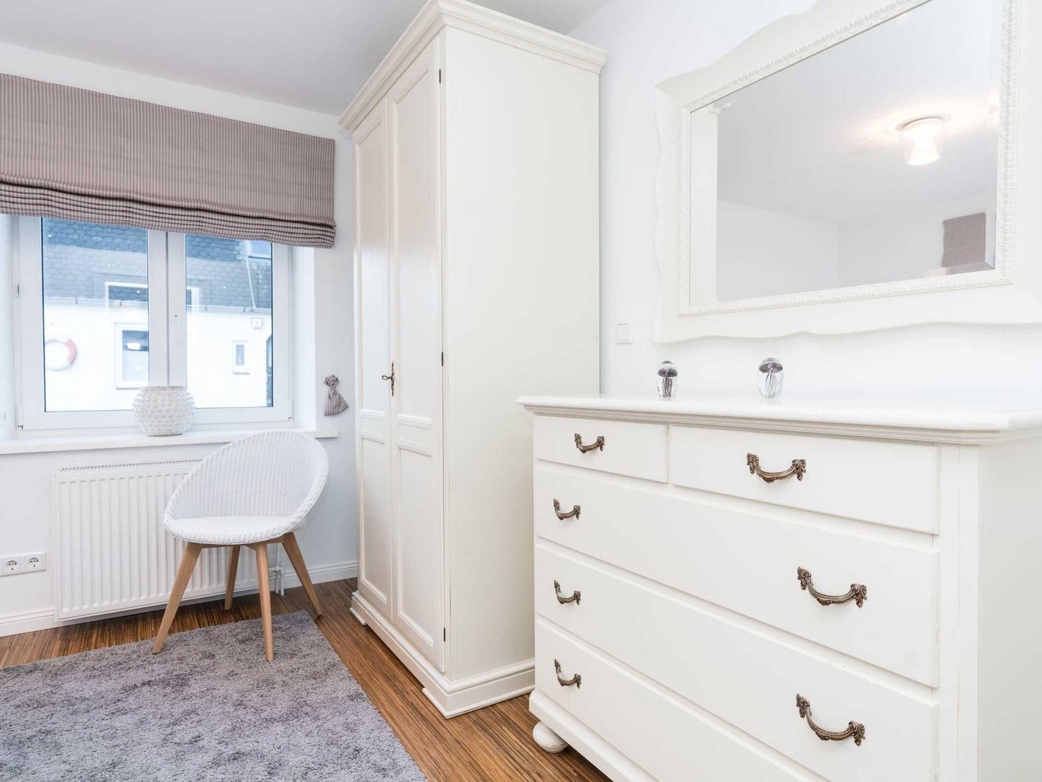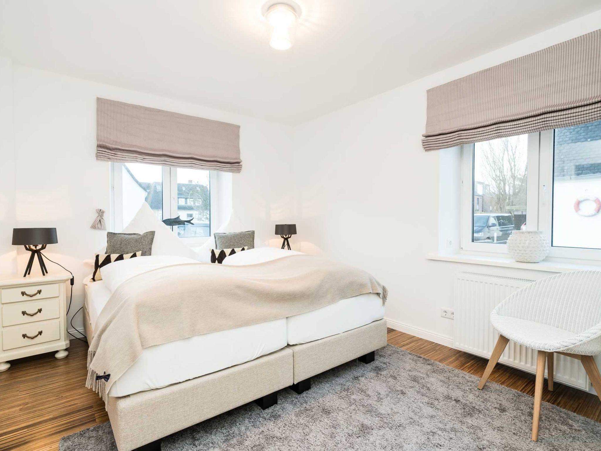 Das Schlafzimmer verfügt über ein bequemes und hochwertiges Boxspringbett in Hotelqualität und befindet sich im EG der Wohnung.