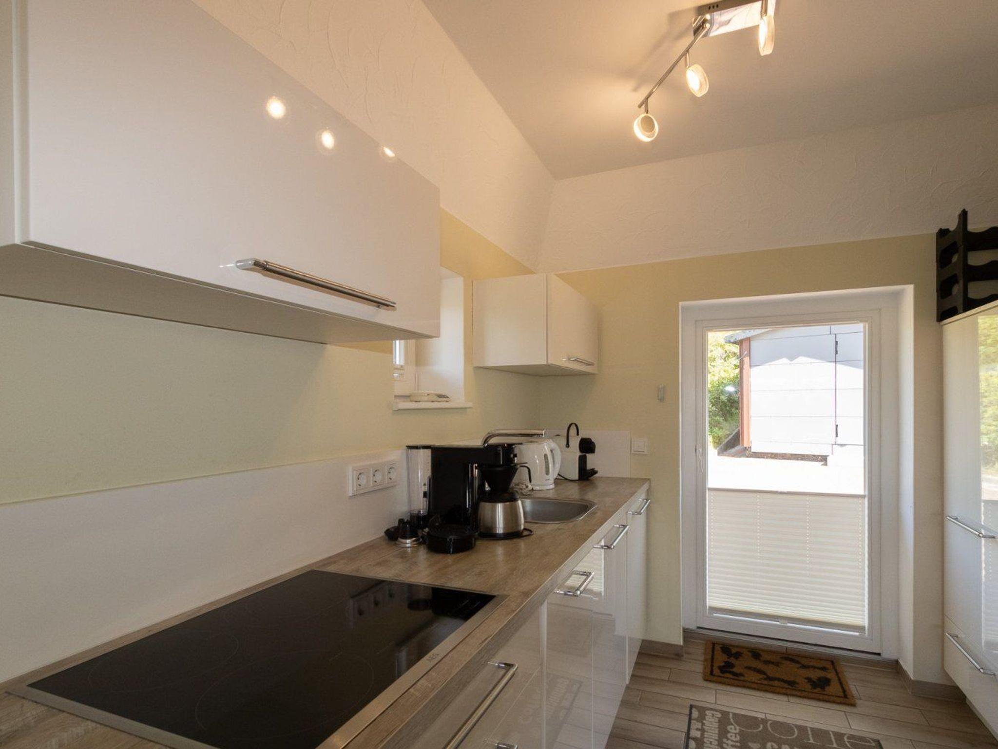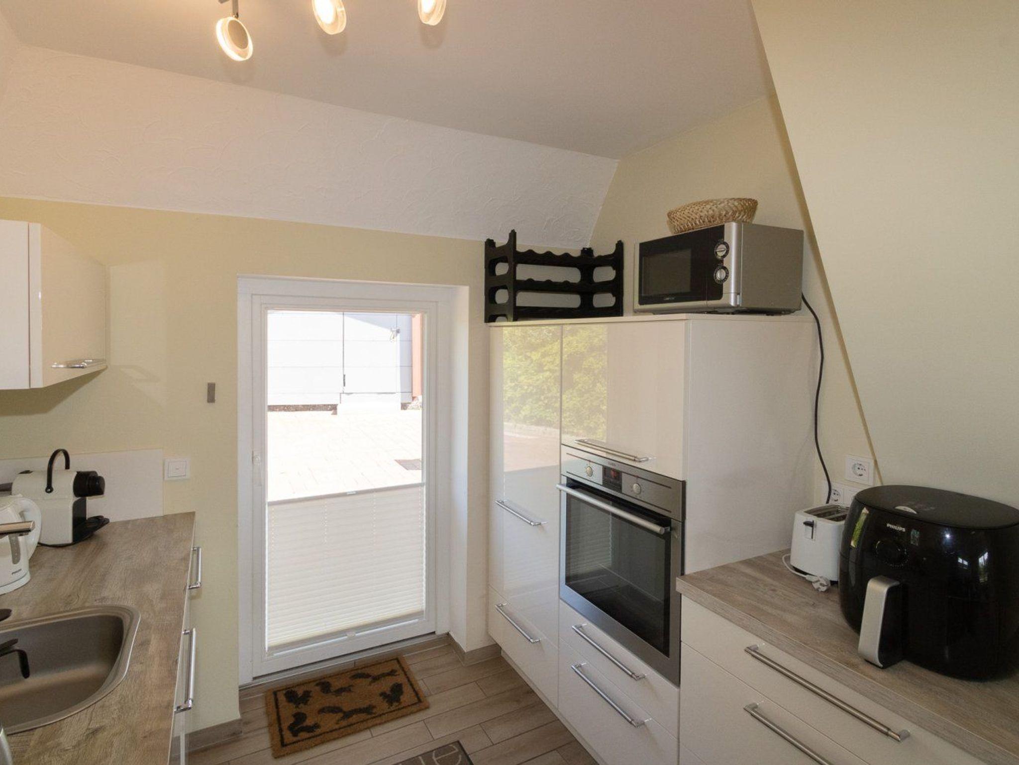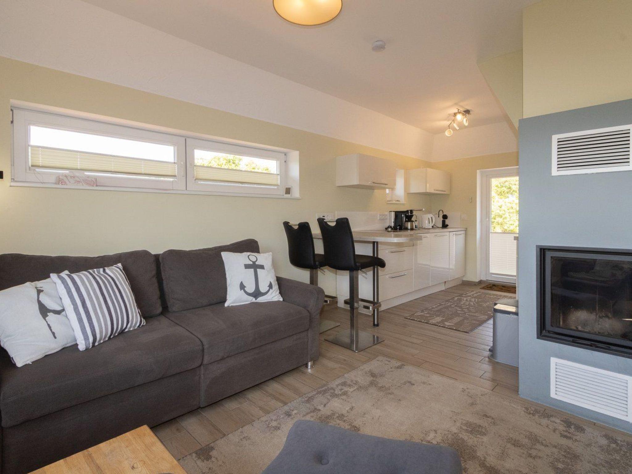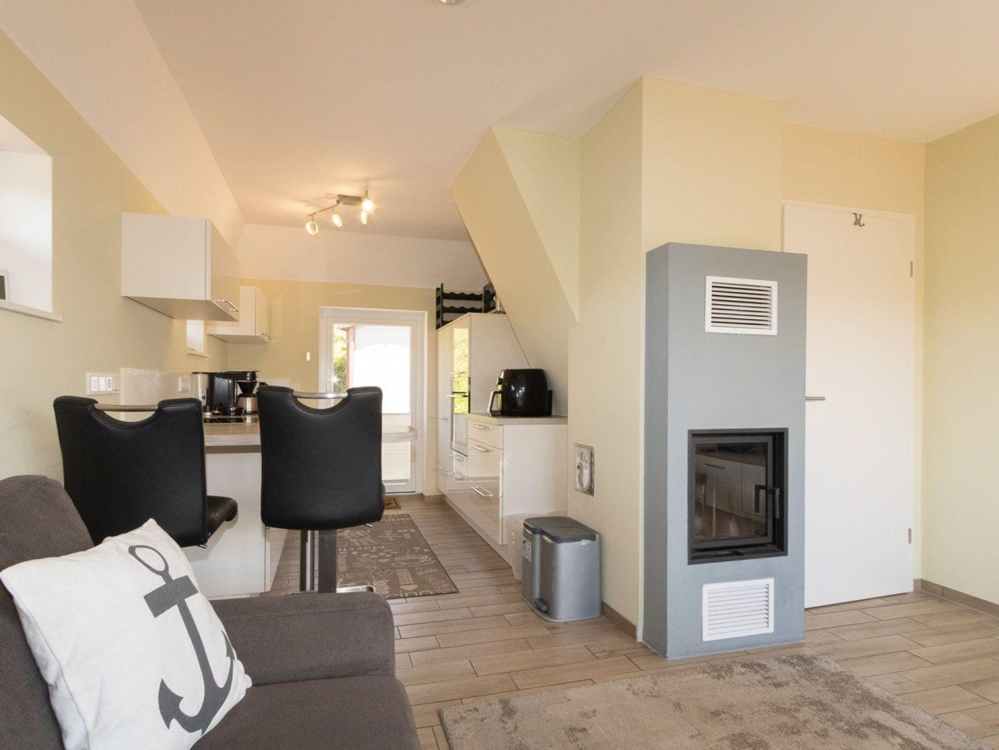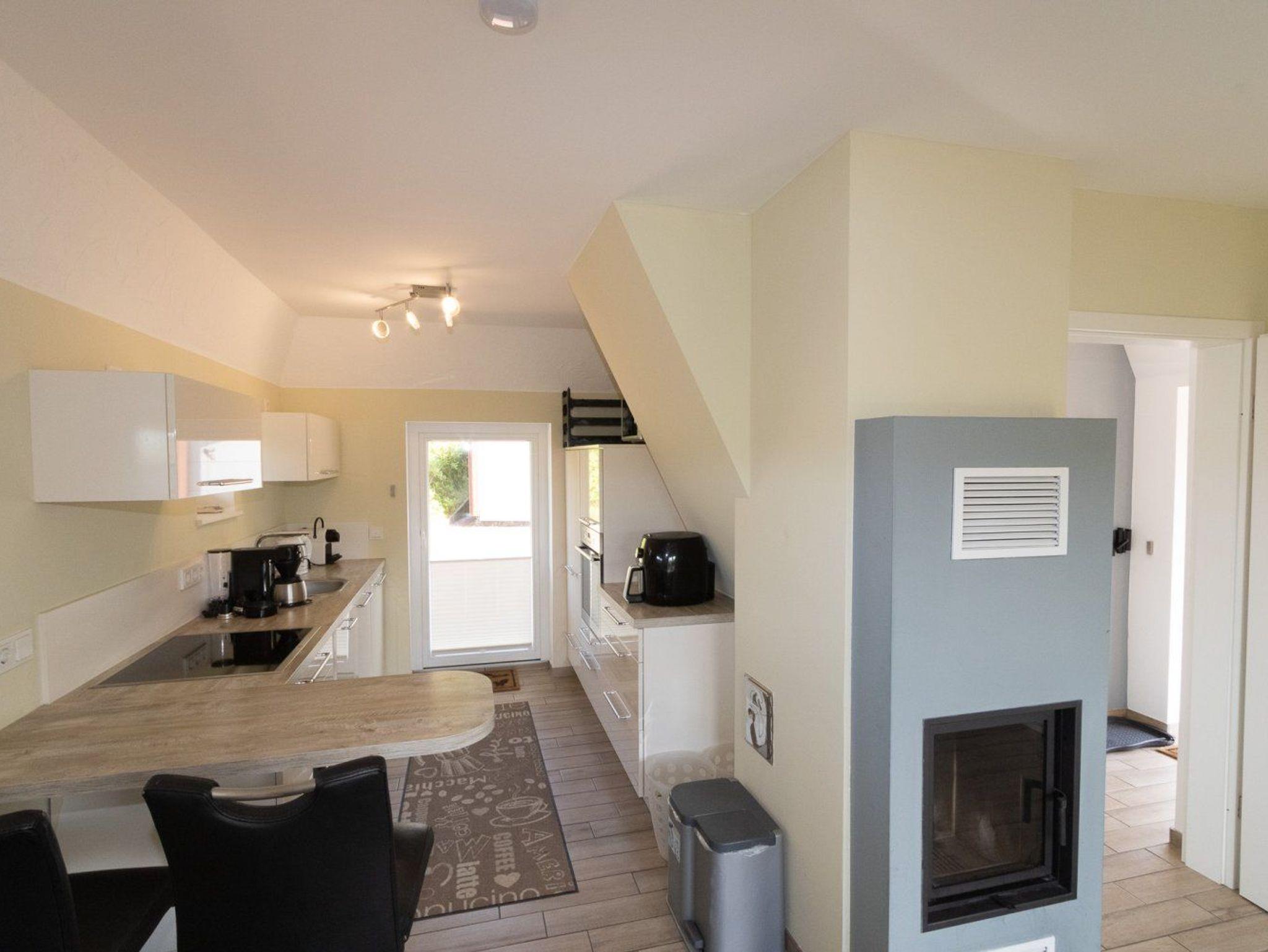 Eine hochwertige Einbauküche mit Spülmaschine und guter Ausstattung steht zur Benutzung zur Verfgung. Der schöne Wohnraum im Erdgeschoss verfügt über eine gemütliche Couch und liegt offen zur Küche. Die stilvolle Ausstattung ist modern. Im Wohnraum finden Sie auch den Kamin, der zusätzlich zur Fußbodenheizung für eine wohlige Wärme sorgt.