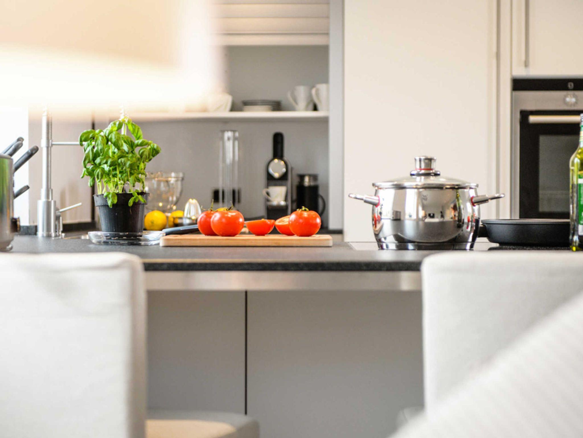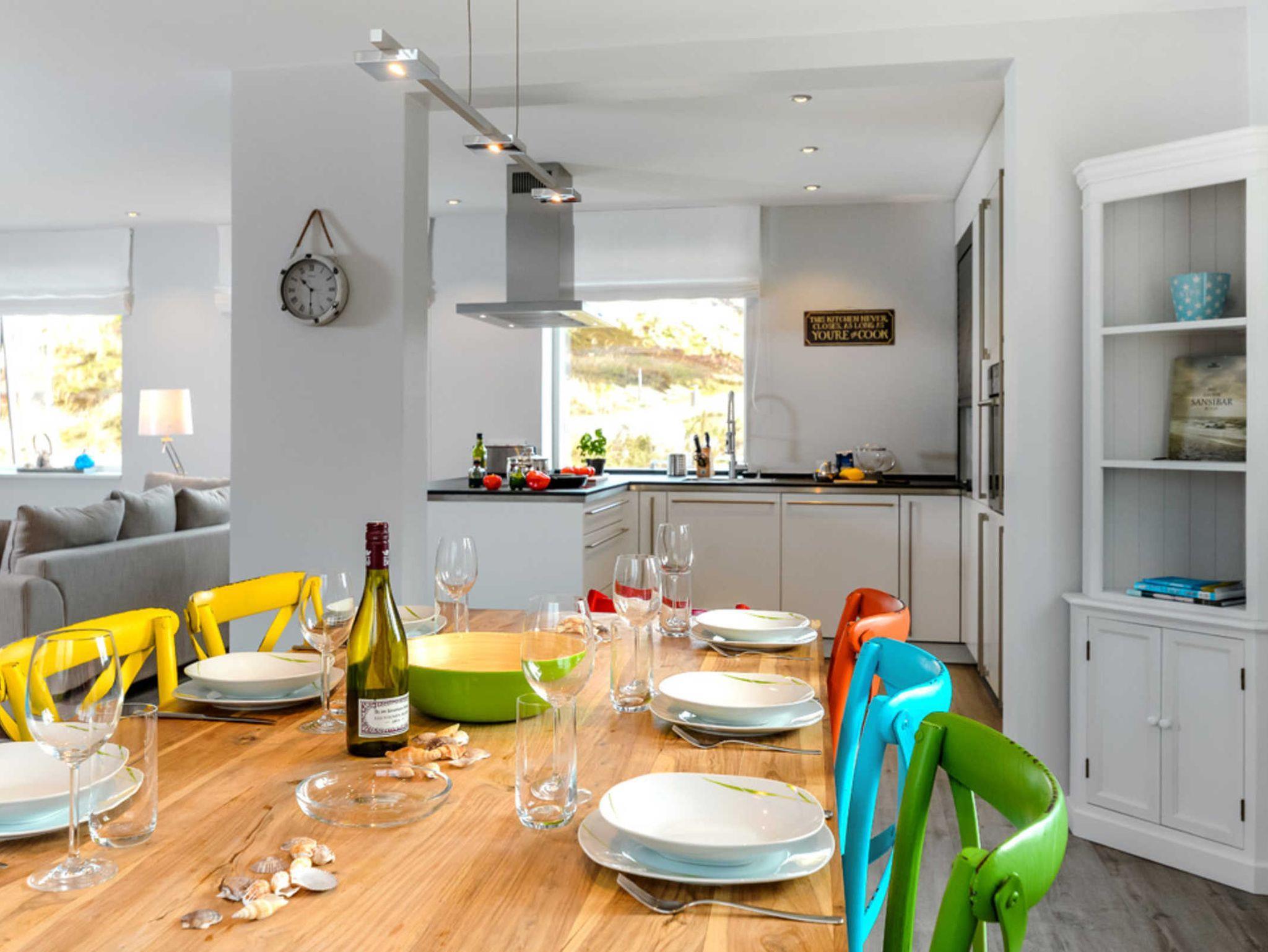 Das Sylt Hüüs verfügt über einen Eingangsbereich von dem aus Sie direkt in den großzügigen Wohn-Essbereich mit offener Küche gelangen. Ein Kaminofen lädt auch im Winter zur Gemütlichkeit ein.
