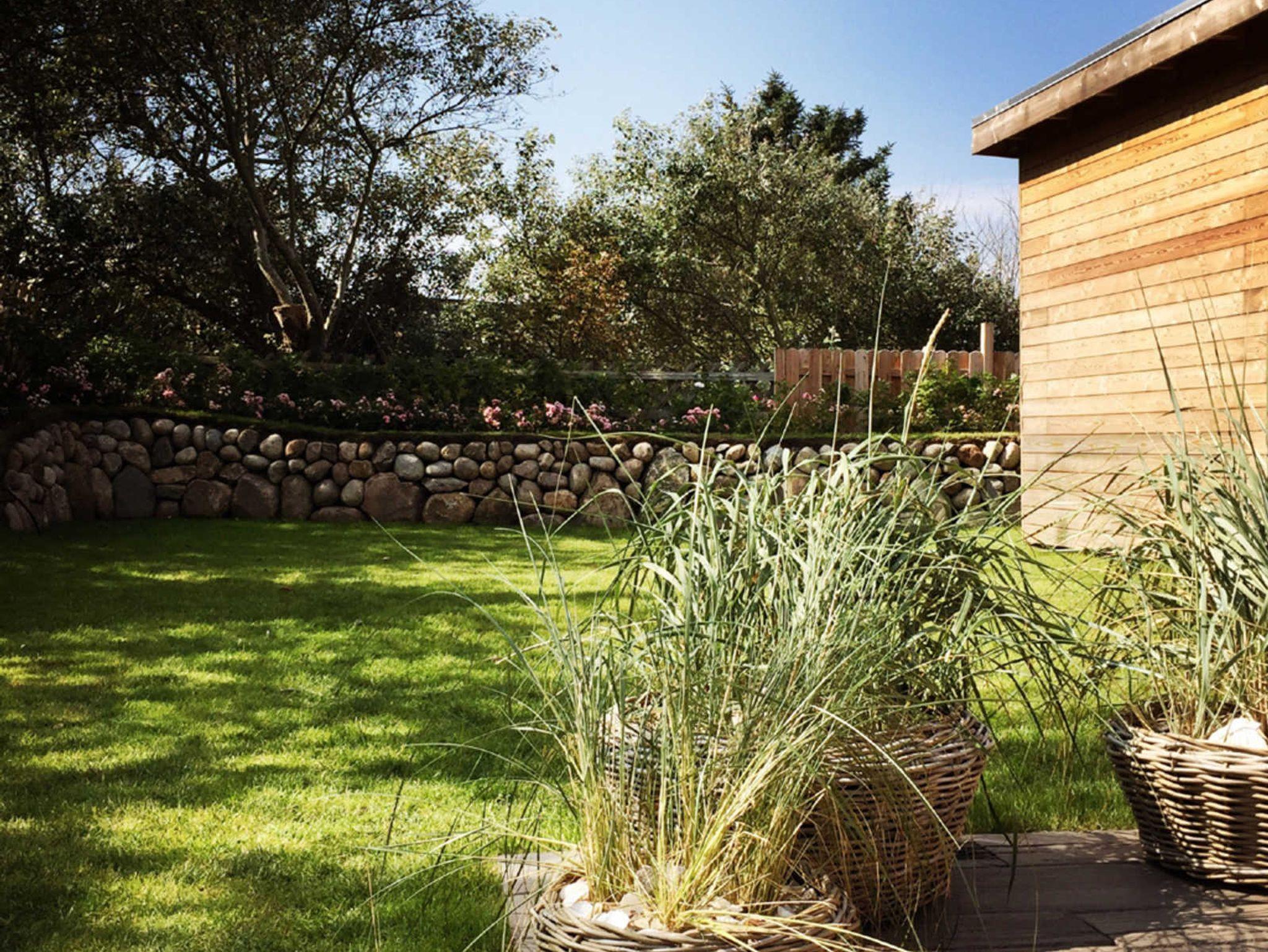 Die Terrasse mit Gartenmöbeln lädt bei schönem Wetter im Garten zum relaxen ein. Umgeben von Syltrosen, abgegrenzt durch einen Friesenwall und fern von jeder Durchgangsstraße finden Sie hier die absolute Ruhe.