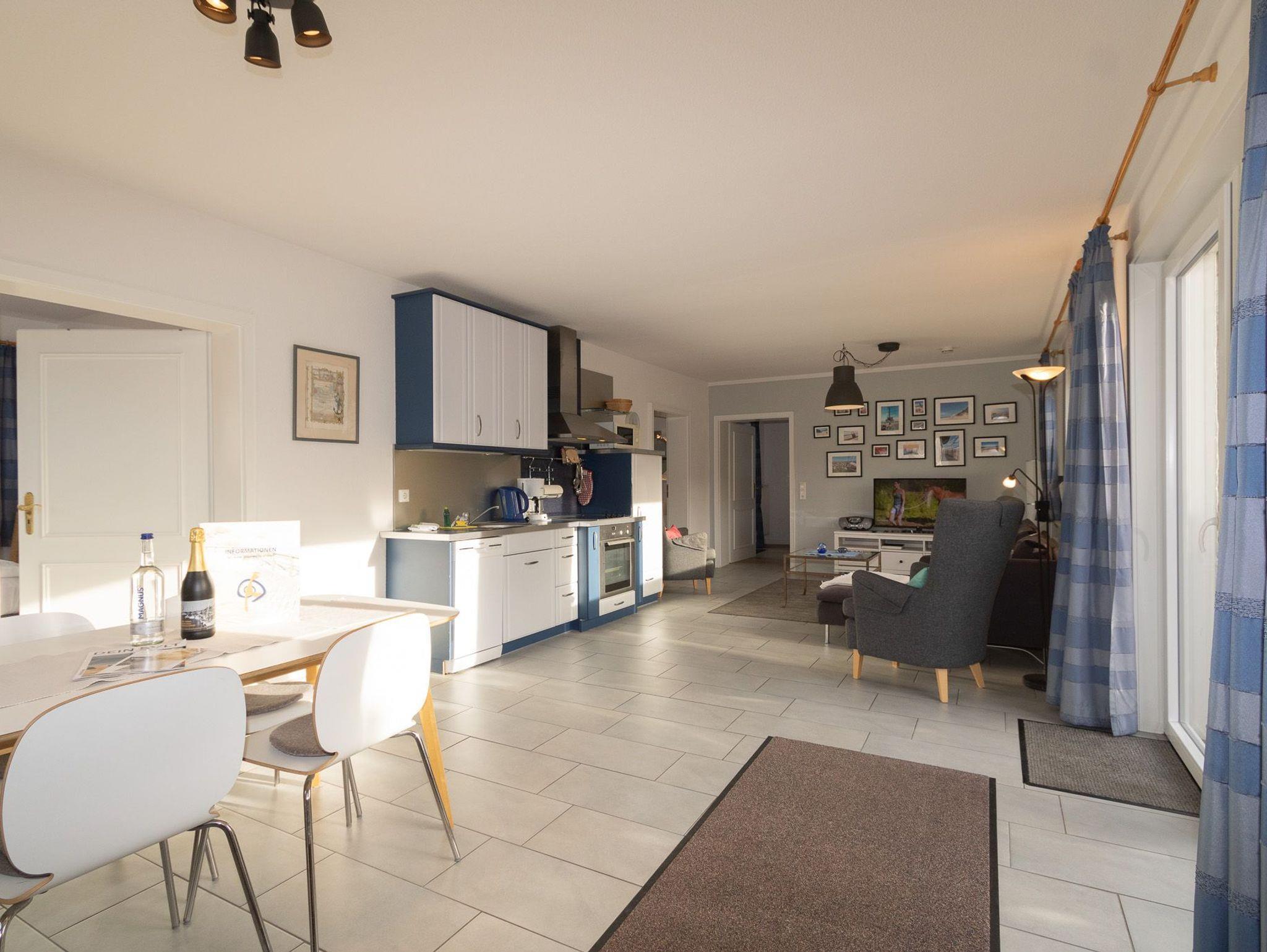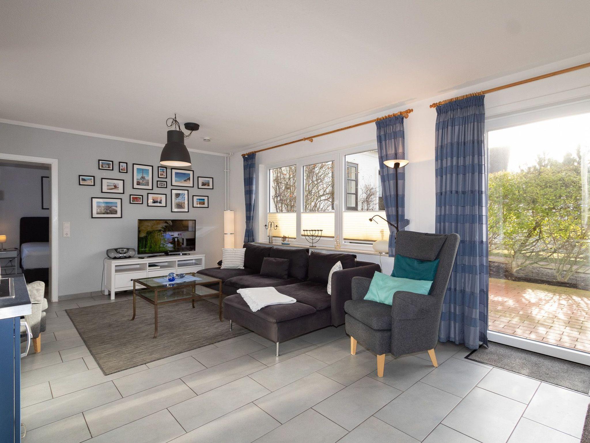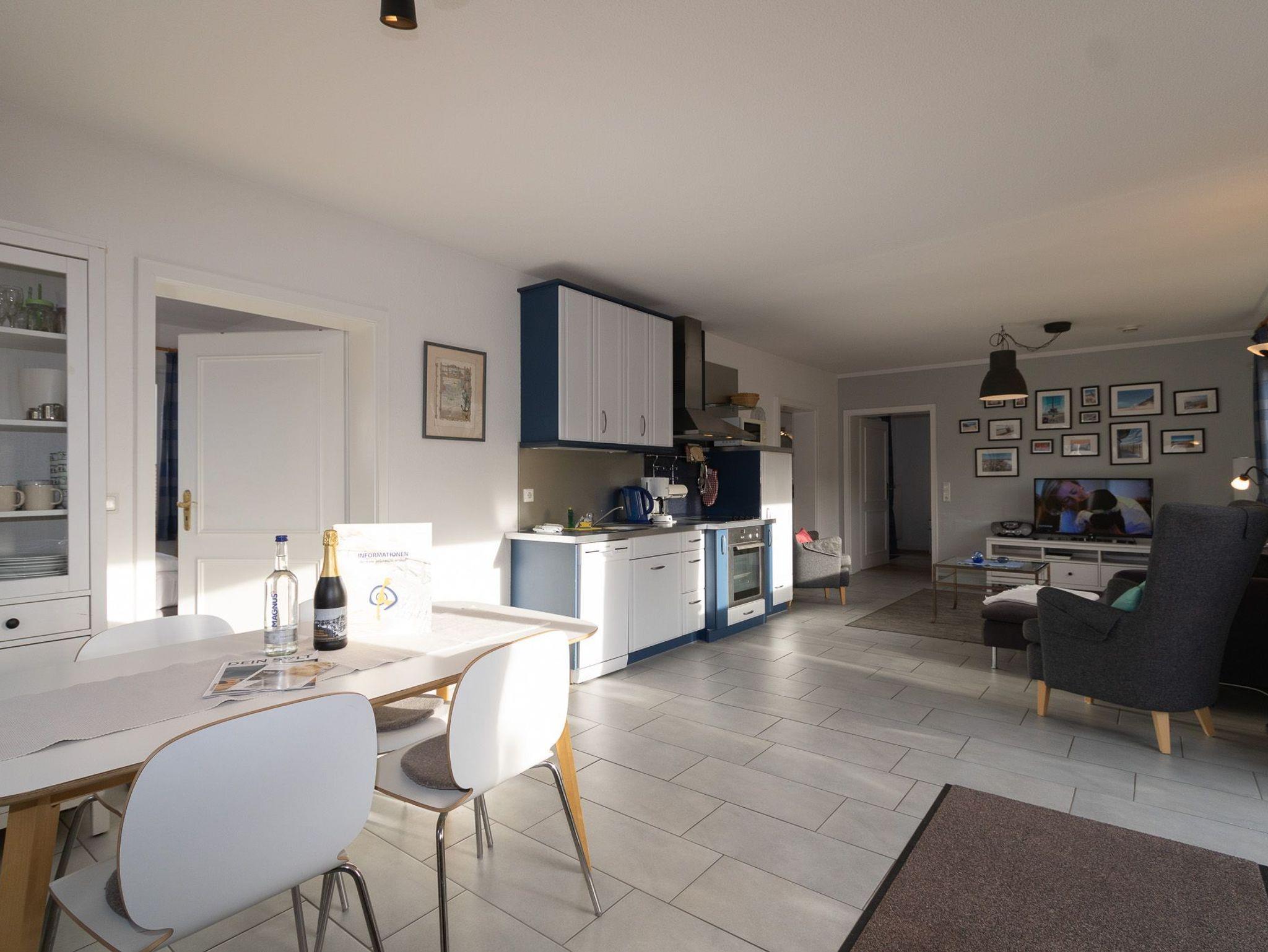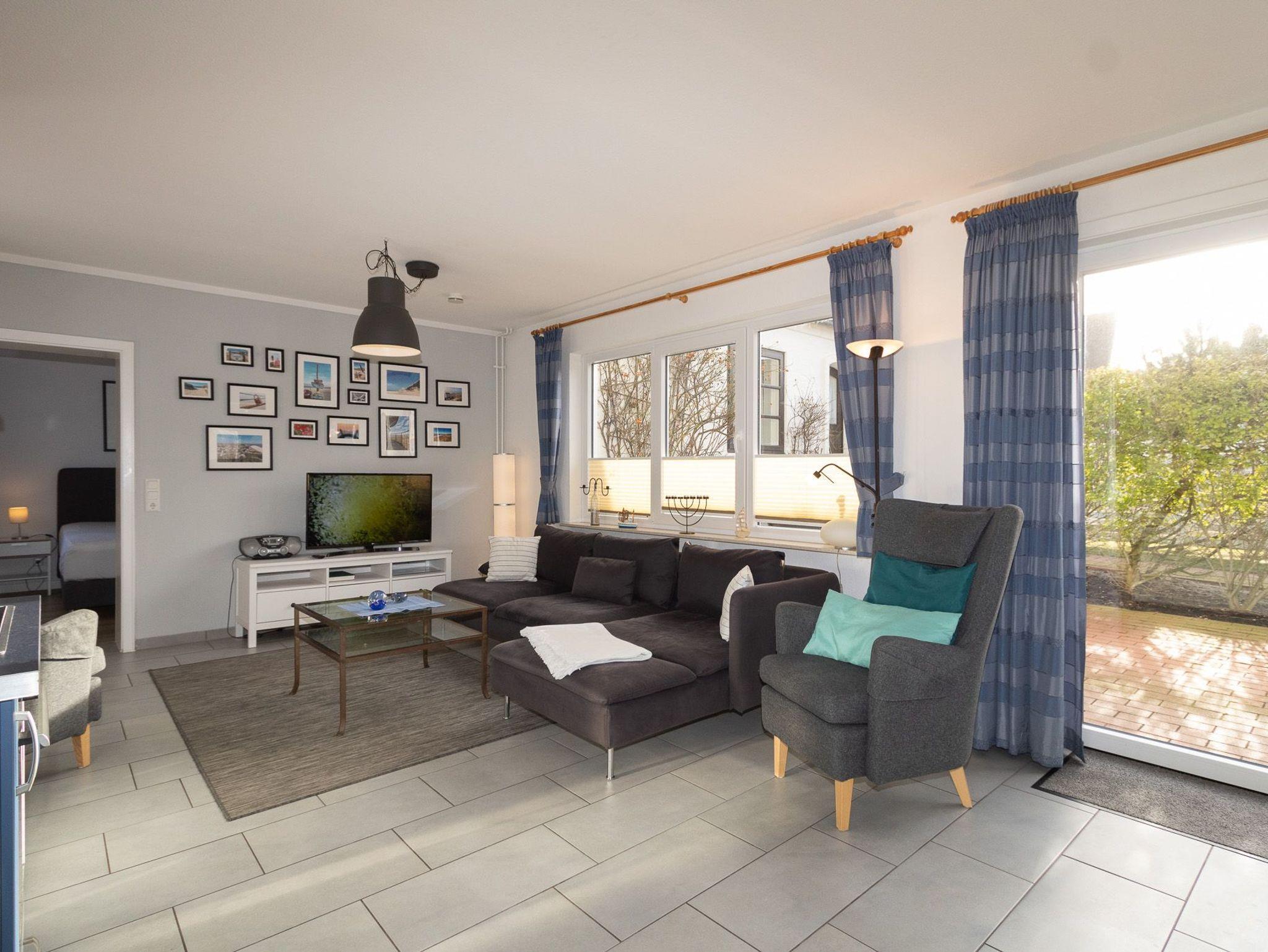 Ebenerdig und ohne Barrieren ist diese Wohnung auch für Rollstuhlfahrer geeignet. Die Wohnung verfügt über 2 Schlafzimmer mit Doppelbetten und einen geräumigen Wohn-/Essraum mit Küchenzeile. Im Wohnbereich befindet sich noch eine Schlafcouch. Das moderne Bad verfügt über eine große Dusche und eine Badewanne mit Wirlpoolfunktion. Auf zwei Terrassen, die komplett mit Gartenmöbeln und einem Strandkorb ausgestattet sind, findet sich je nach Tageszeit bestimmt ein Sonnenplatz für Sie.