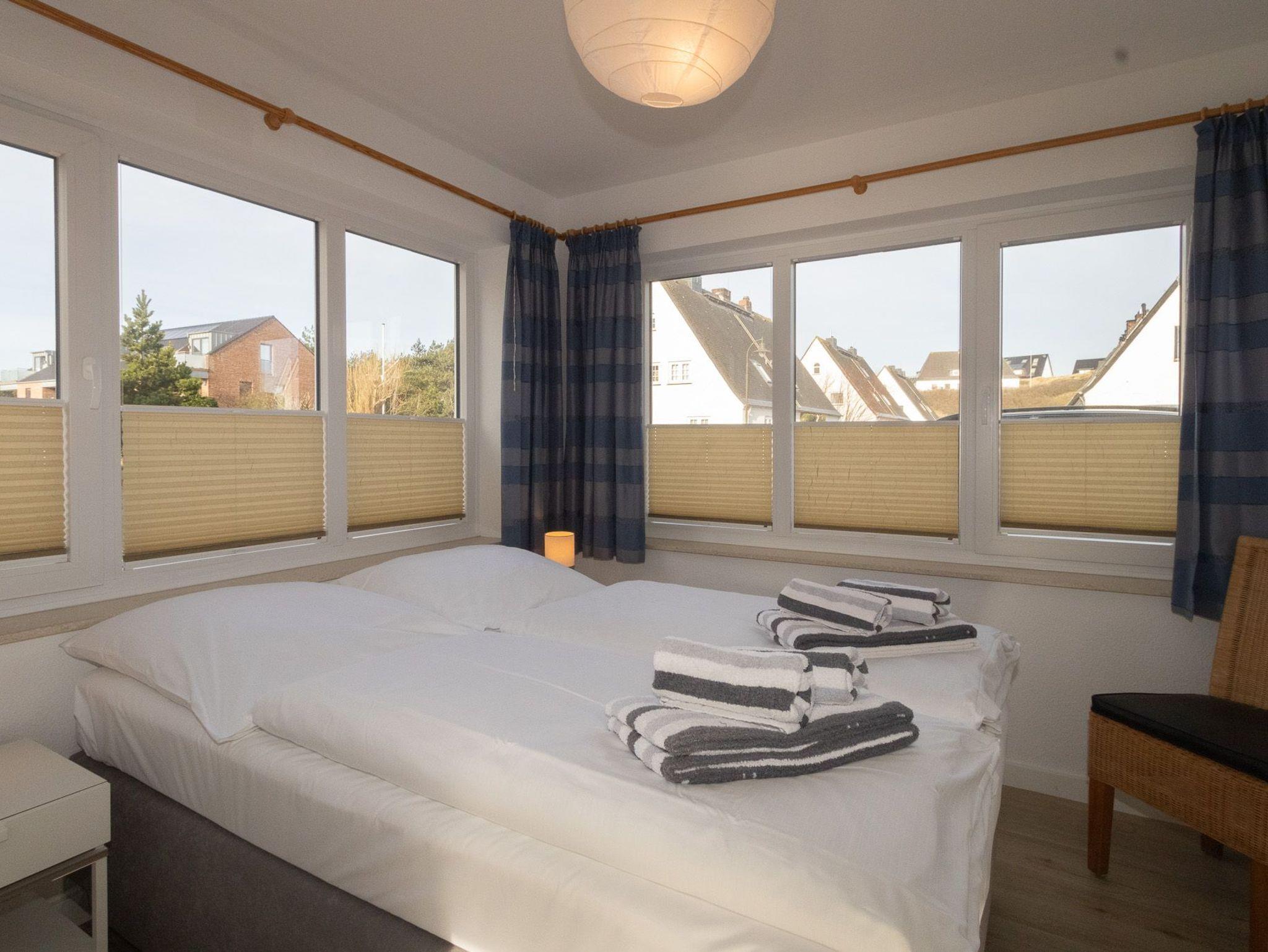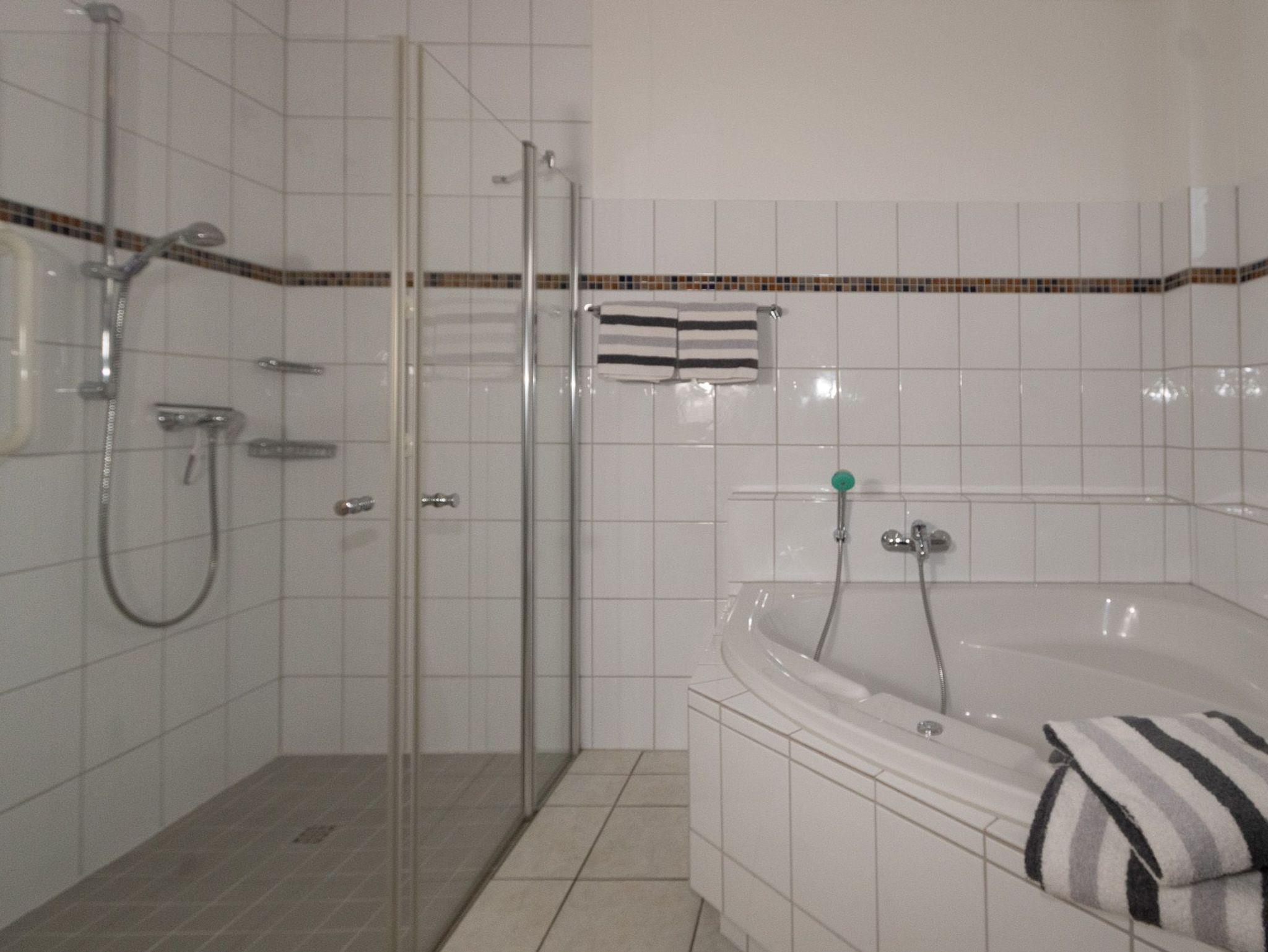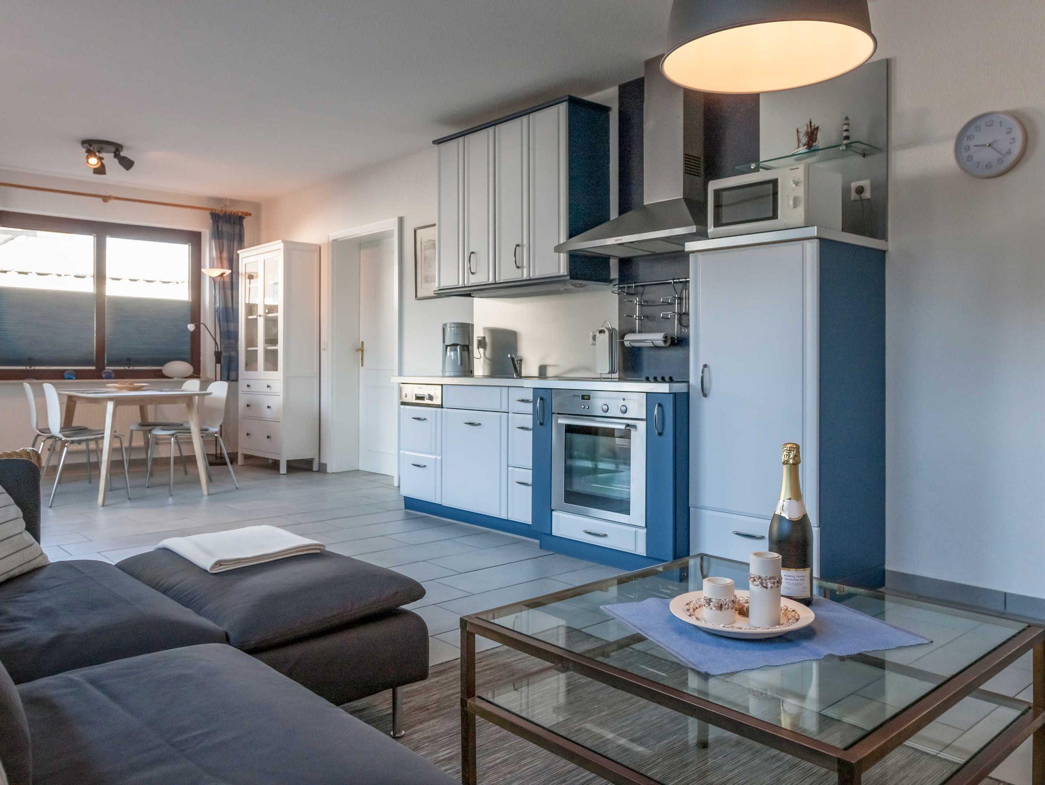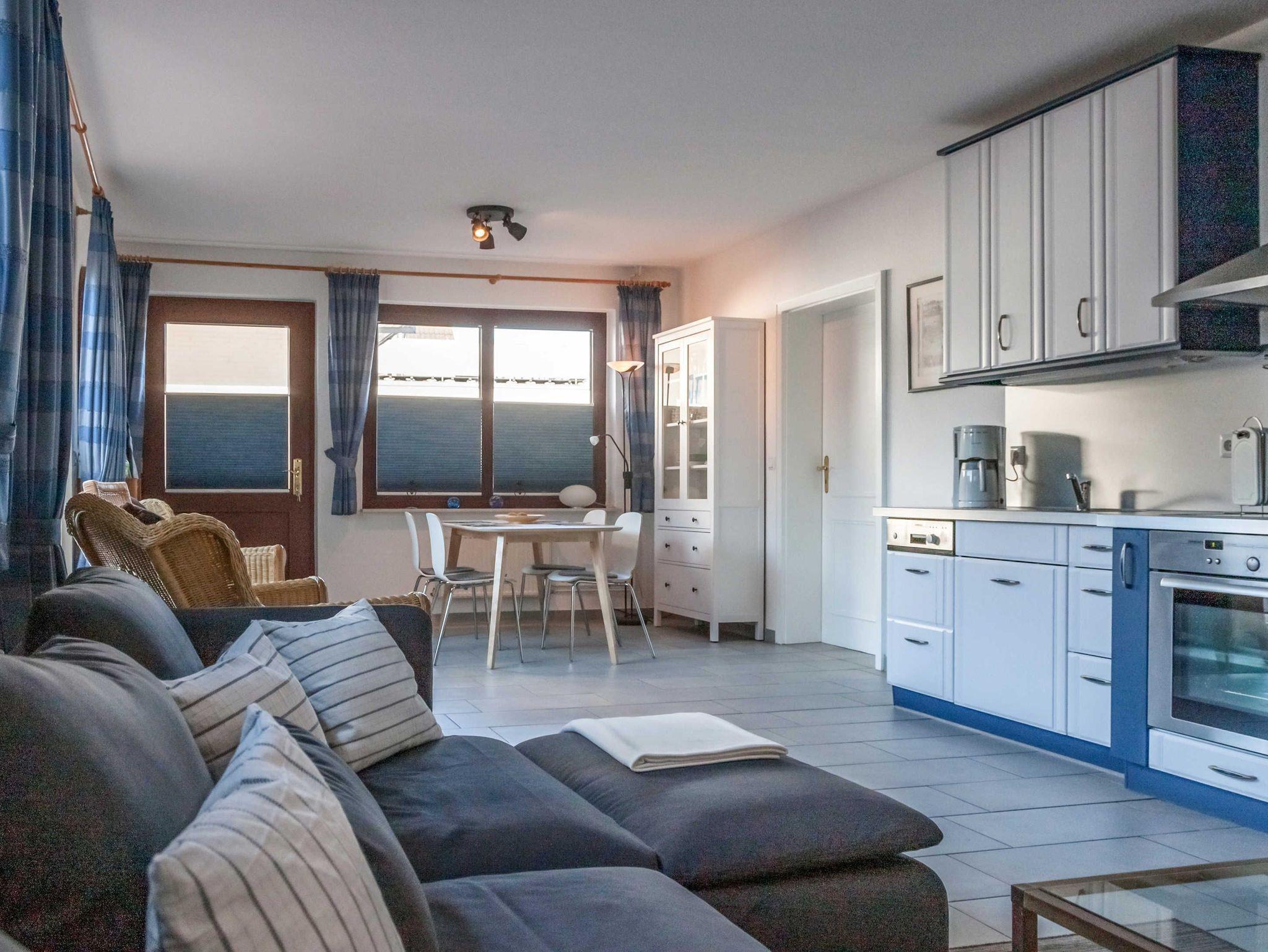 Ebenerdig und ohne Barrieren ist diese Wohnung auch für Rollstuhlfahrer geeignet. Die Wohnung verfügt über 2 Schlafzimmer mit Doppelbetten und einen geräumigen Wohn-/Essraum mit Küchenzeile. Im Wohnbereich befindet sich noch eine Schlafcouch. Das moderne Bad verfügt über eine große Dusche und eine Badewanne mit Wirlpoolfunktion. Auf zwei Terrassen, die komplett mit Gartenmöbeln und einem Strandkorb ausgestattet sind, findet sich je nach Tageszeit bestimmt ein Sonnenplatz für Sie.