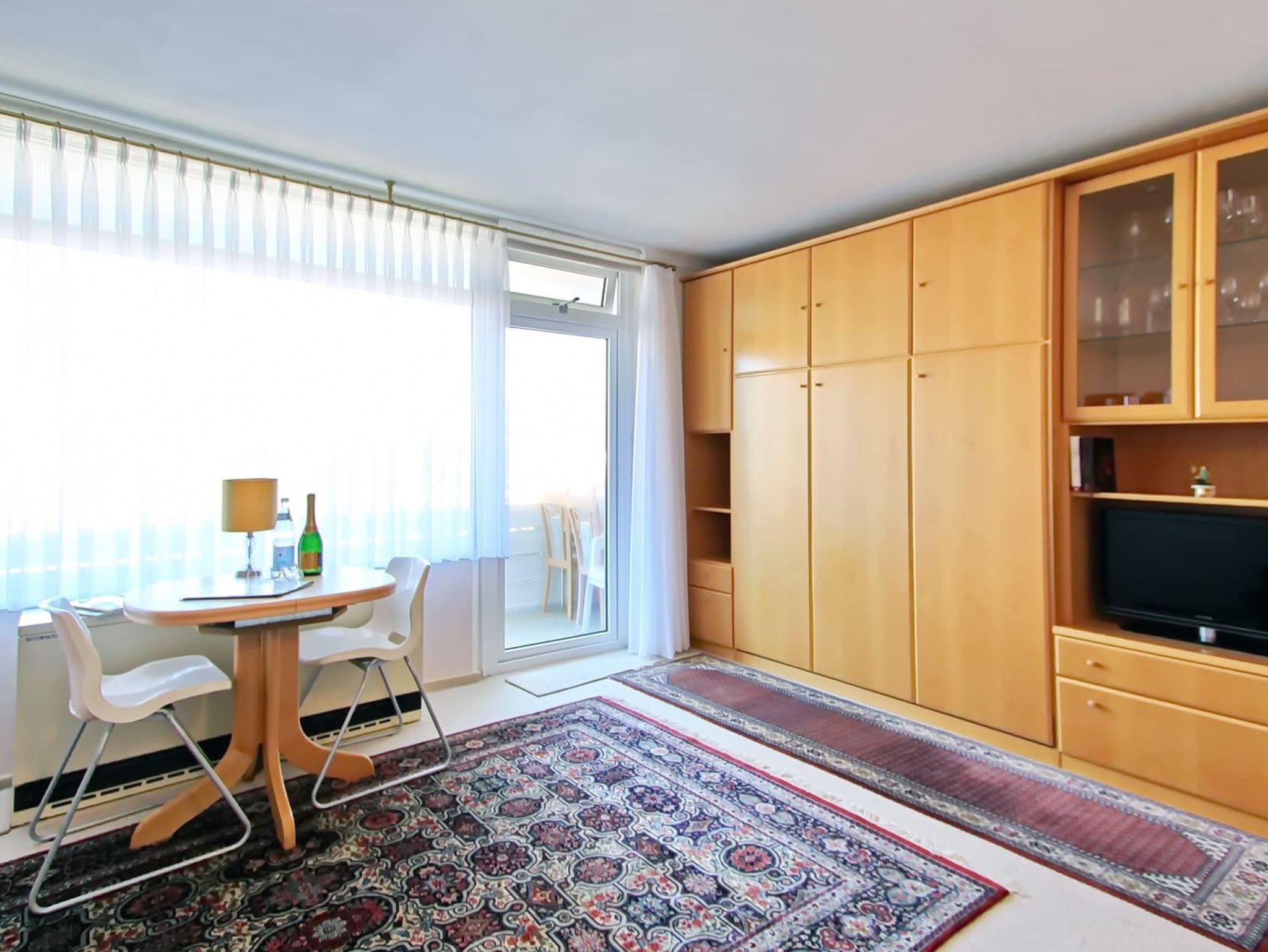 Die Ferienwohnung verfügt über 1 Wohn-Schlafraum mit Doppelschrankbett, 2 Stressless-Relax-Ledersessel mit Fußteil, Essplatz am Fenster, CD-Player, Flat-TV, sowie dem Zugang zum großzügigen Westbalkon mit Blick auf die Dünen und den Strandübergang.