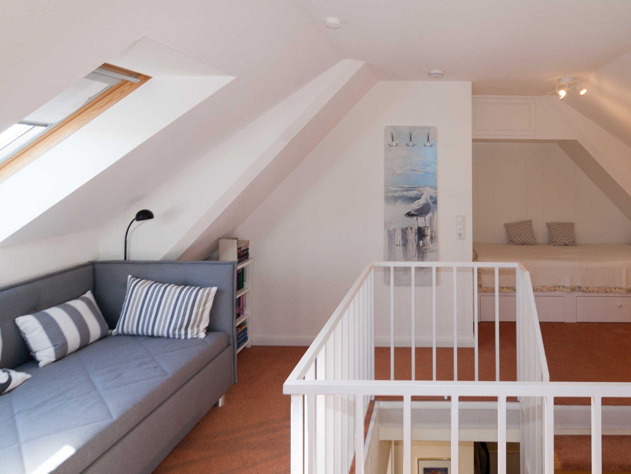 Die Wohnung ist für 2 + 2 Personen (2 Erwachsene und 2 Kinder) ausgestattet. Sie befindet sich im 1. OG und ist wie folgt ausgestattet: 1 Schlafzimmer mit Doppelbett, modernes Duschbad, Wohnzimmer mit offener Küchenzeile und Balkon zum Süden. Auf dem Balkon können Sie den ganzen Tag die Sonne und den Panoramablick geniessen. Über eine Treppe im Flur können Sie die Galerie erreichen, in der sich die Betten für die 3. und 4. Person befinden.