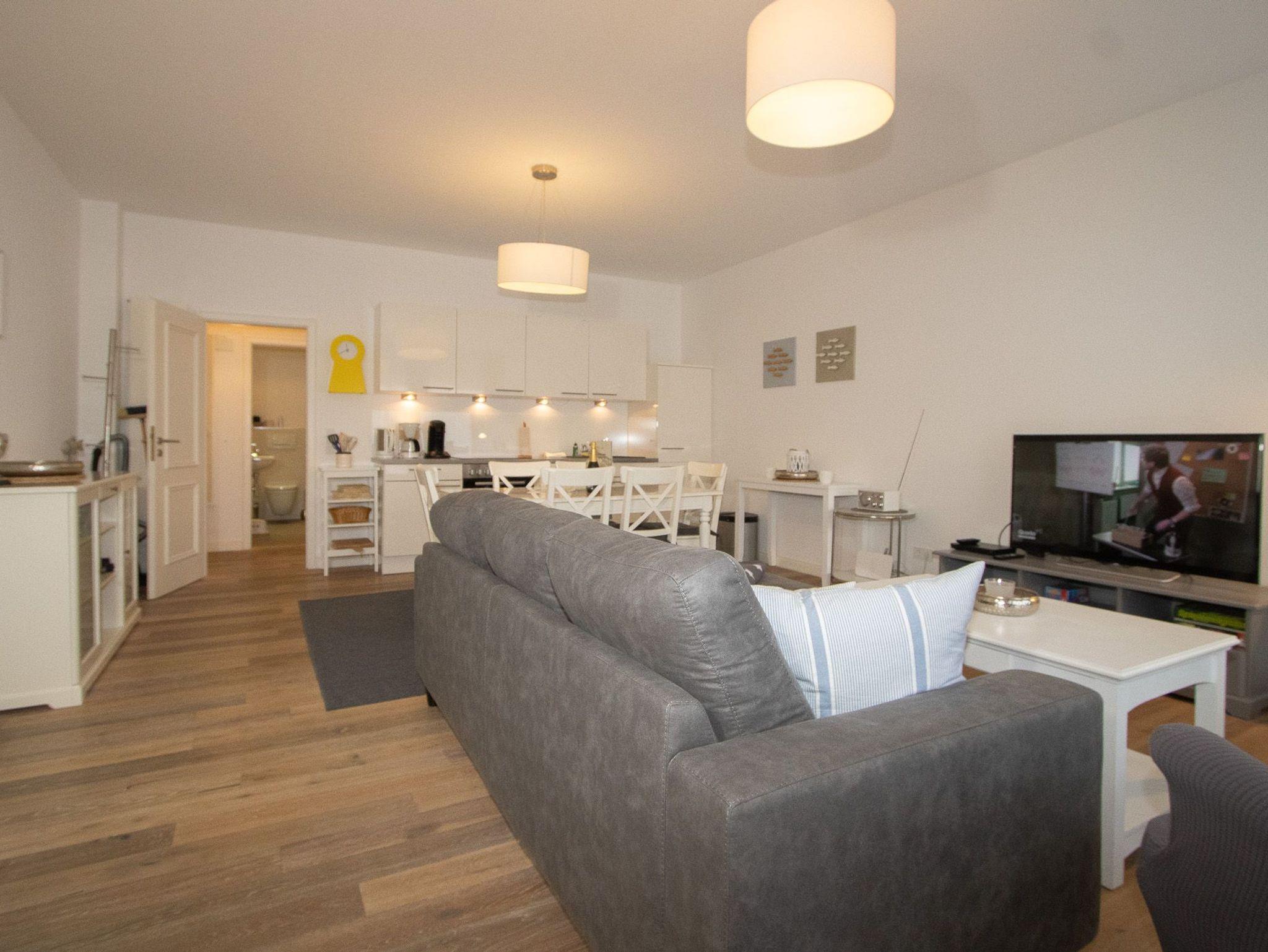 Komplett neu renovierte und sehr großzügige Wohnung für 4 Personen. Sehr geschmackvoll in der Einrichtung mit 2 Terrassen zum Sonnen. Sehr großzügige Ausstattung mit viel Platz zum Erholen. Die Wohnung ist in einen kombinierten Wohn-Schlafraum mit Küchenzeile und Esstisch, ein sehr großzügiges Schlafzimmer mit angrenzendem Duschbad sowie ein weiteres Schlafzimmer mit einem weiteren Duschbad ausgestattet. Der Esstisch, der sich auch im Wohnbereich befindet, bietet Platz für 6 Personen. Hier können Sie Freunde bewirten und verwöhnen. Neben dem zweiten Schlafzimmer liegt noch ein kleines Lesezimmer, das für die richtige Entspannung sorgen kann. Die Terrassenbestuhlung steht schon für die Sonnenstunden des Urlaubs bereit.