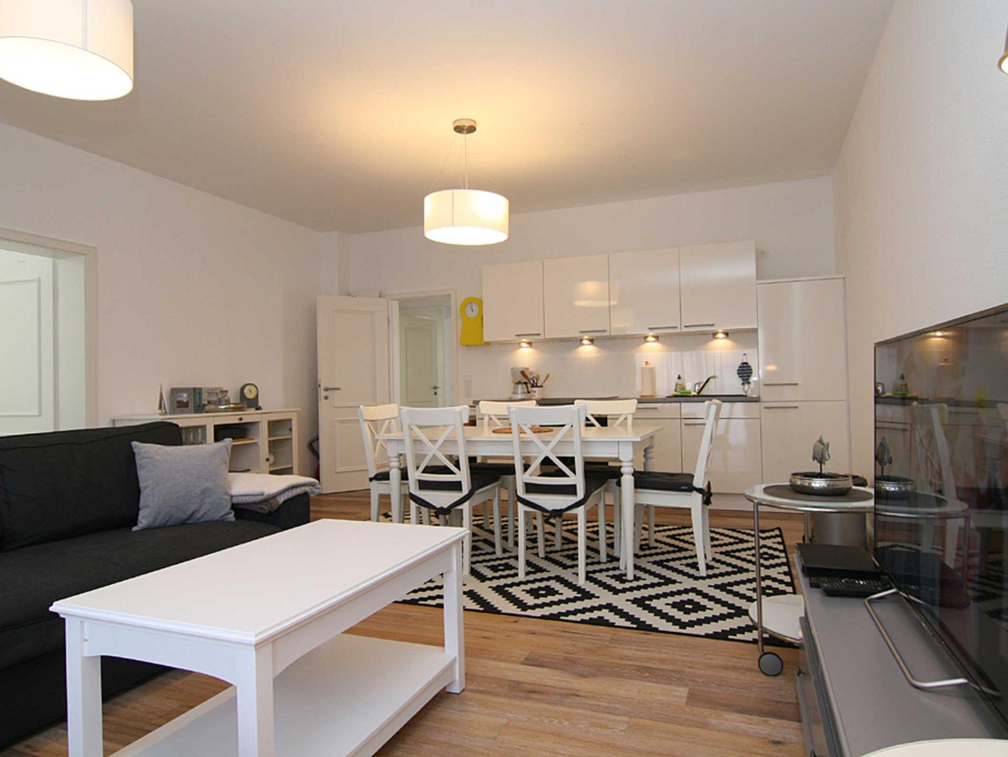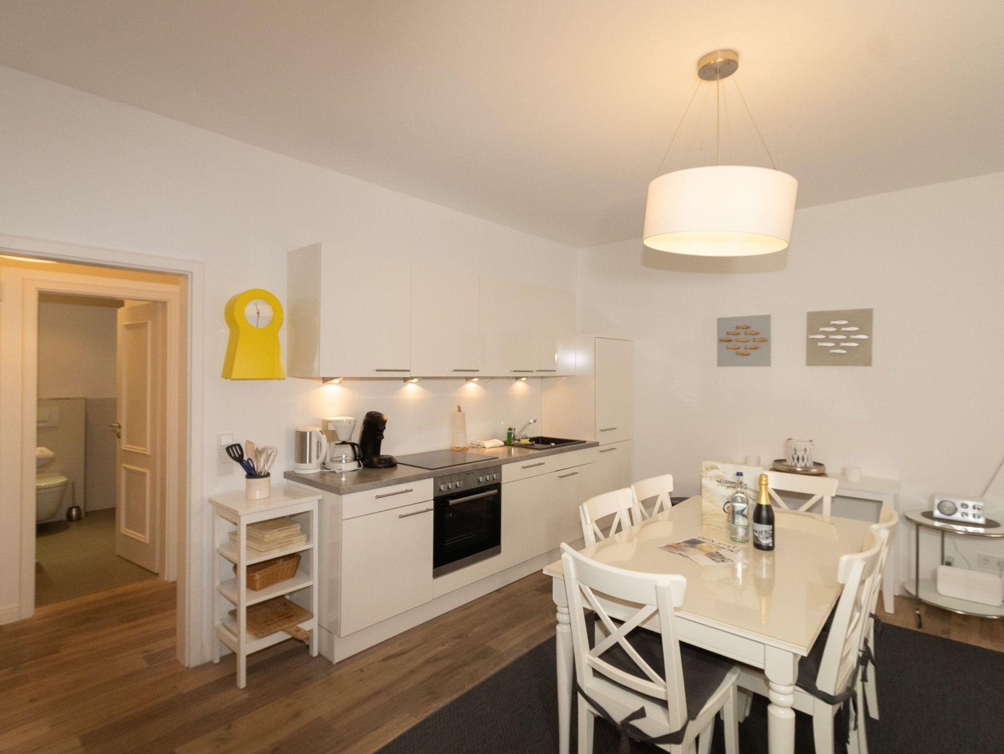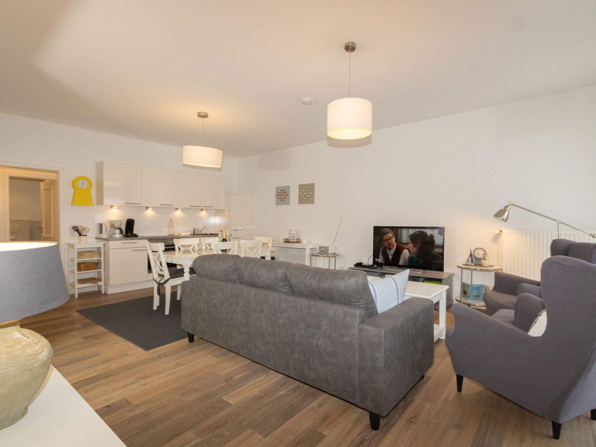 Sehr großzügige Ausstattung mit viel Platz zum Erholen. Die Wohnung ist in einen kombinierten Wohn-Schlafraum mit Küchenzeile und Esstisch, ein sehr großzügiges Schlafzimmer mit angrenzendem Duschbad sowie ein weiteres Schlafzimmer mit einem weiteren Duschbad ausgestattet. Der Esstisch, der sich auch im Wohnbereich befindet, bietet Platz für 6 Personen. Hier können Sie Freunde bewirten und verwöhnen. Neben dem zweiten Schlafzimmer liegt noch ein kleines Lesezimmer, das für die richtige Entspannung sorgen kann. Die Terrassenbestuhlung steht schon für die Sonnenstunden des Urlaubs bereit.