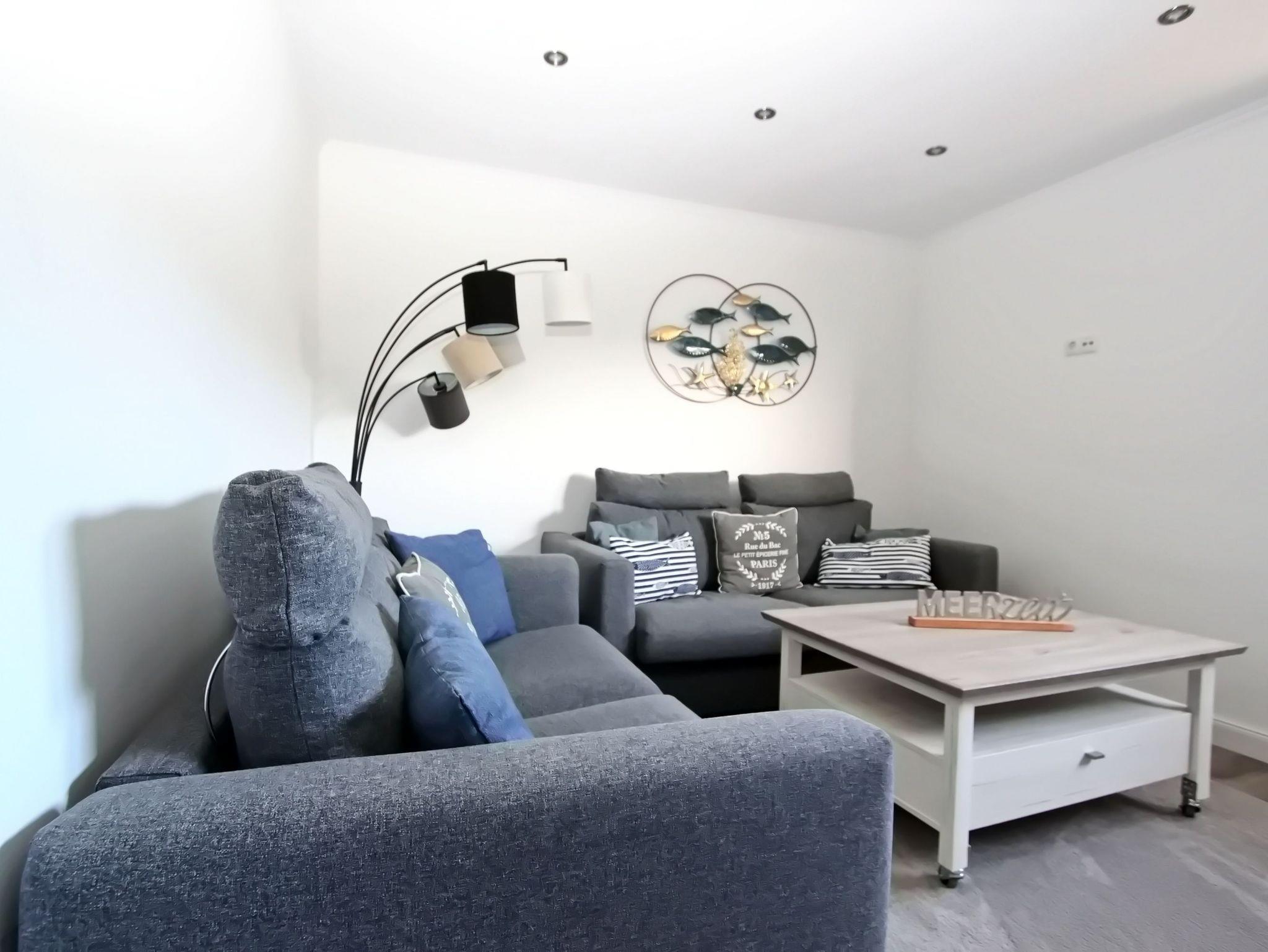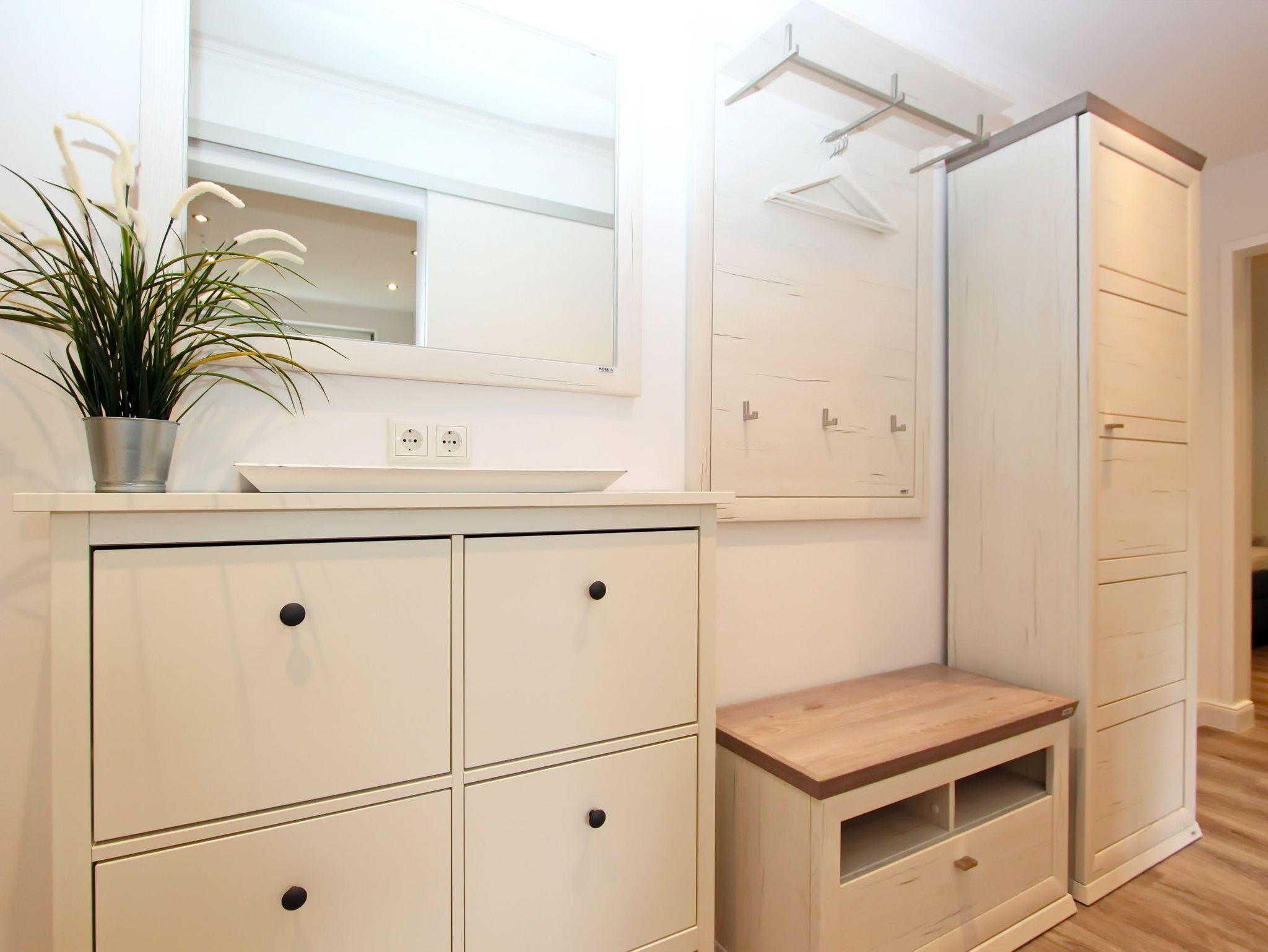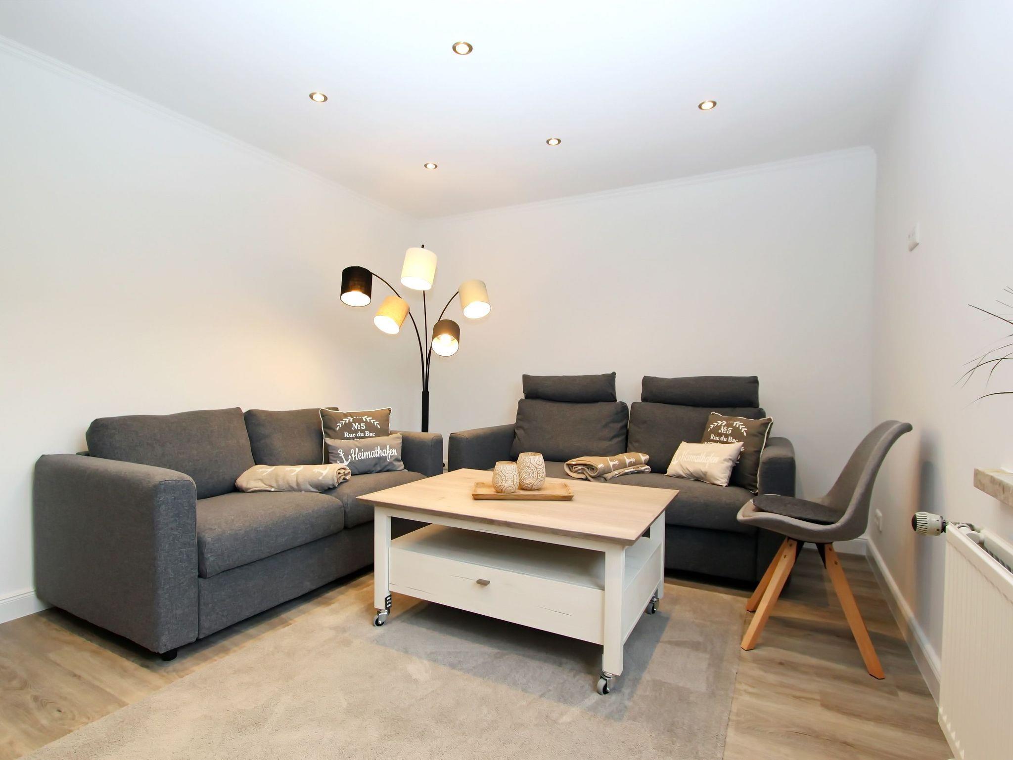 Das im Mai 2022 kernsanierte 2 Zimmer Appartement bietet auf seinen knapp 50 qm, im Hochparterre, Platz für bis zu 4 Personen. Ausgestattet ist es wie folgt: Wohnzimmer mit zwei Couchen (eine davon mit Schlaffunktion), Couchtisch, Vitrinen Schrank, Bücherregal, großer Smart-OLED-TV, Radio und kostenloses WLAN. Separates Schlafzimmer mit Doppelbett (1,80m x 2,00m), Nachtschränke, Nachttischlampen, großer Kleiderschrank, der ausreichend Stauraum bietet, Zugang zum Süd-/Westbalkon mit Balkonmöbel.