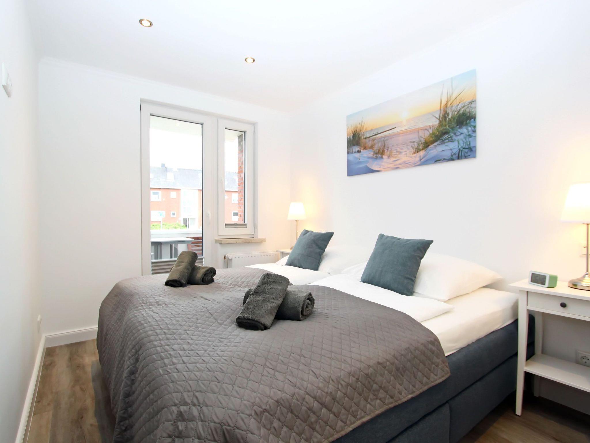 Modernes 2-Zimmer-Appartement auf Sylt mit Balkon, WLAN, Smart-TV und moderner Küche, nah am Strand und Golfplatz.