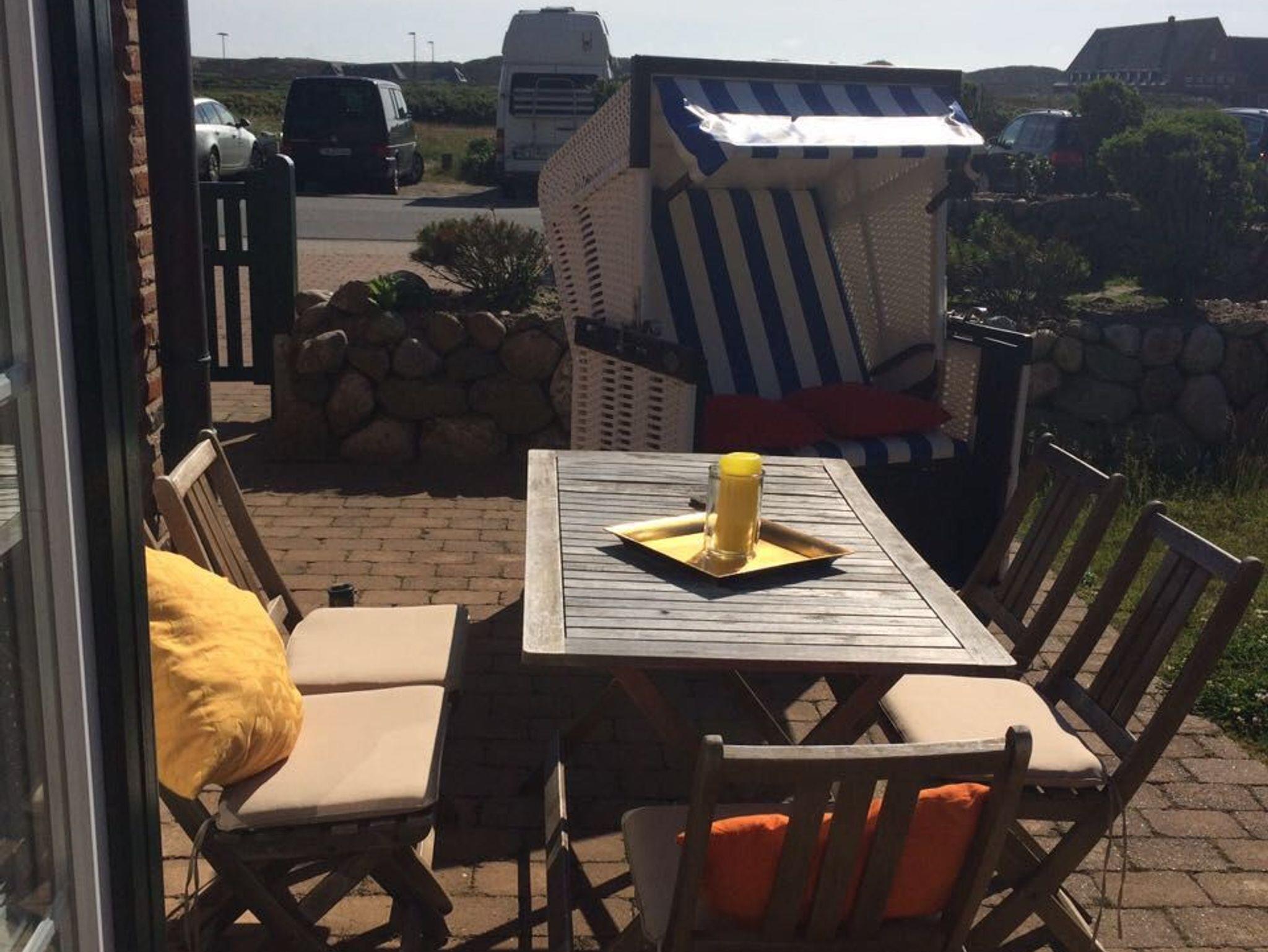 Gemütliches Endhaus in Hörnum auf Sylt mit Terrasse, Strandkorb und kostenlosem WLAN für erholsame Urlaubstage.