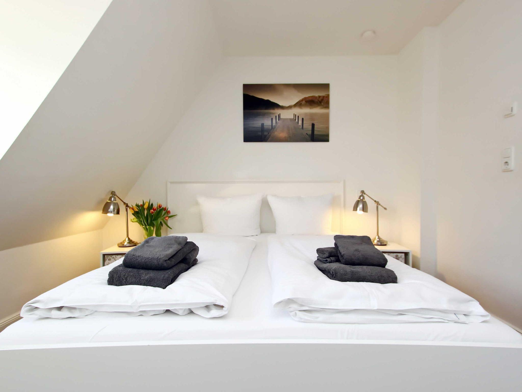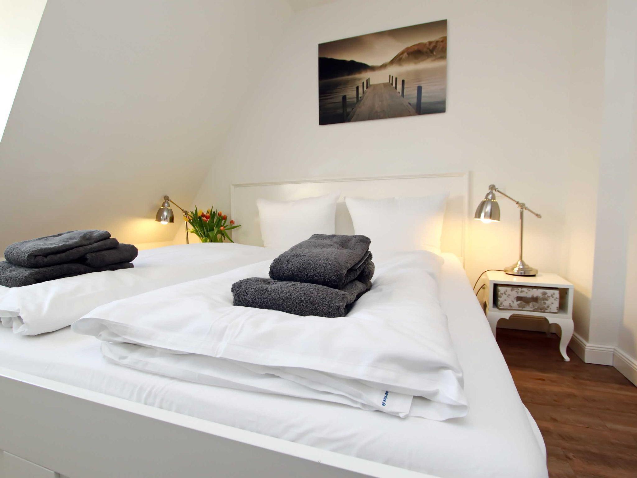 Das Endhausteil hat eine Größe von ca. 84 m² und bietet Platz für bis zu 8 Personen. Im EG befindet sich ein großer Wohnraum mit offener Einbauküche und Essplatz. Die gemütliche Couch (ausklappbar) lädt zum Verweilen ein. In der Einbauküche befindet sich ein Backofen, Geschirrspüler, Kühlschrank mit Gefrierfach, Cerankochfeld, etc. Vom Wohnraum können Sie auf die beiden Terrassen (Ost- und Südterrasse) gehen. Dort sind Terrassenmöbel und auch ein Strandkorb in dem Sie die Sonnenstunden genießen können. Eine Abseite unter der Treppe bietet ausreichend Stauraum für Ihr Gepäck. Im oberen Teil des Hauses befinden sich drei Schlafräume mit je einem französischen Doppelbett, sowie Einbauschränke die ausreichend Platz bieten. Duschbad/WC. Alle Schlafräume haben einen TV-Anschluss. Im EG befindet sich noch ein Gäste-WC. Ein PKW-Stellplatz befindet sich direkt vor dem Haus. Die Tierhaltung ist auf Anfrage gestattet. Das Rauchen ist verboten!