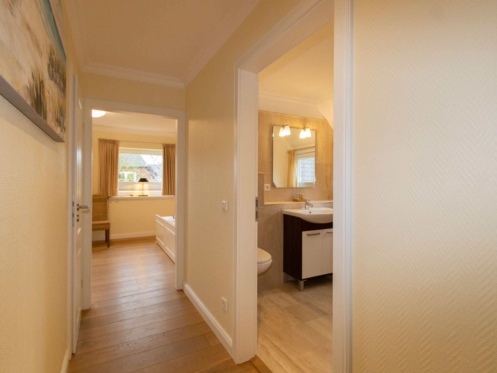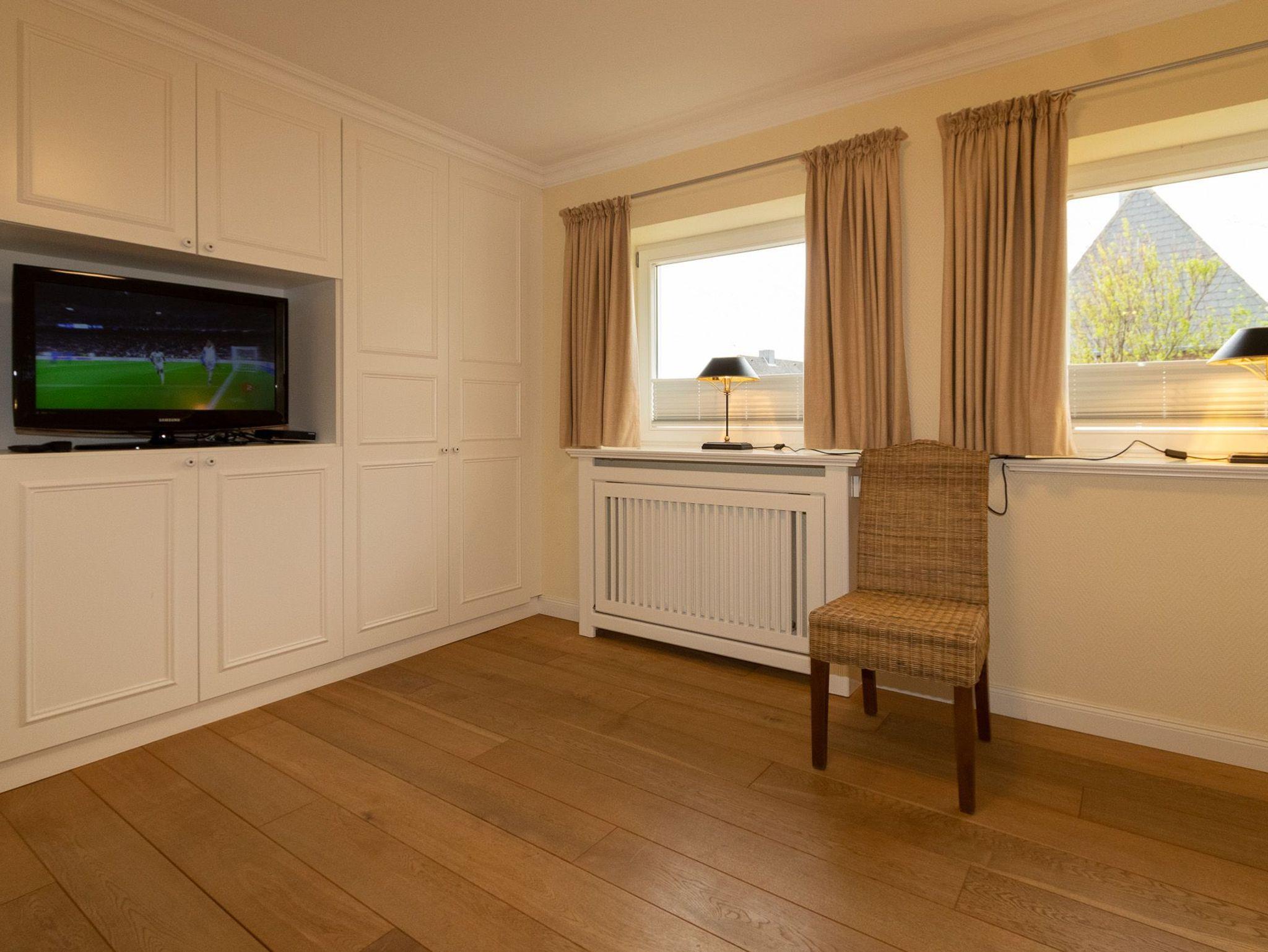 Die exklusive Haushälfte Golfhouse 1, die in 2012 komplett renoviert wurde, befindet sich in einer ruhigen Seitenstraße in Nähe des Golfplatzes. Auf 145 qm Wohnfläche erwartet Sie eine Hohe Qualität an stimmiger Einrichtung, zahlreichen Maßeinbauten und hochwertige Echtholzdielen. Ihr eigener Parkplatz, befindet sich direkt vor dem Haus. In den drei Schlafzimmern haben Sie Platz zum Schlafen für 6 Personen. Ein Schlafzimmer mit einem großen Doppelbett und ein Schlafzimmer mit einem franz.Bett befinden sich im OG. Ein weiteres Schlafzimmer mit zwei Einzelbetten liegt im DG. Alle Schlafzimmer sind mit weißen Maßeinbauten und jeweils einem eigenen Flachbildschirm ausgestattet.