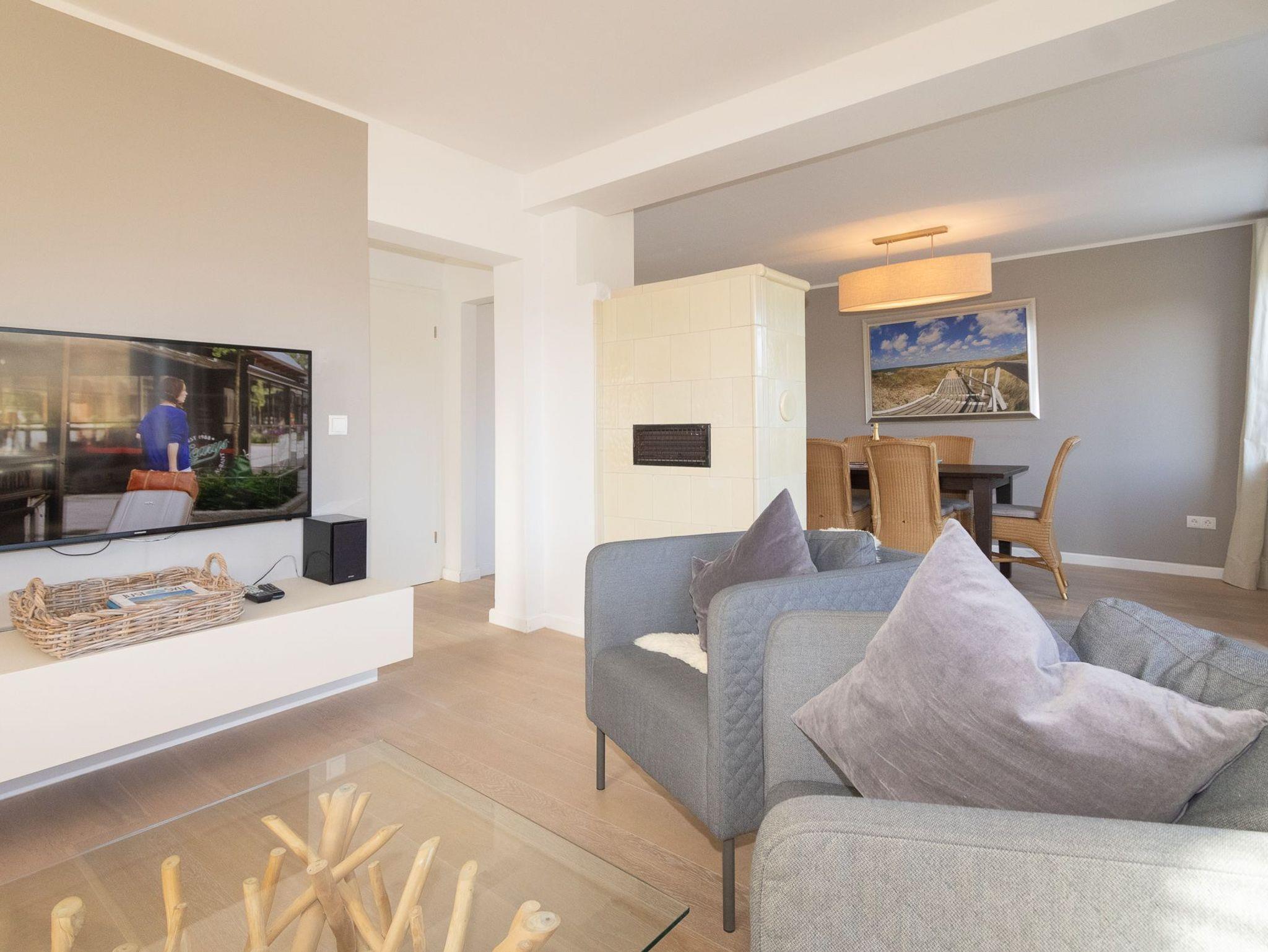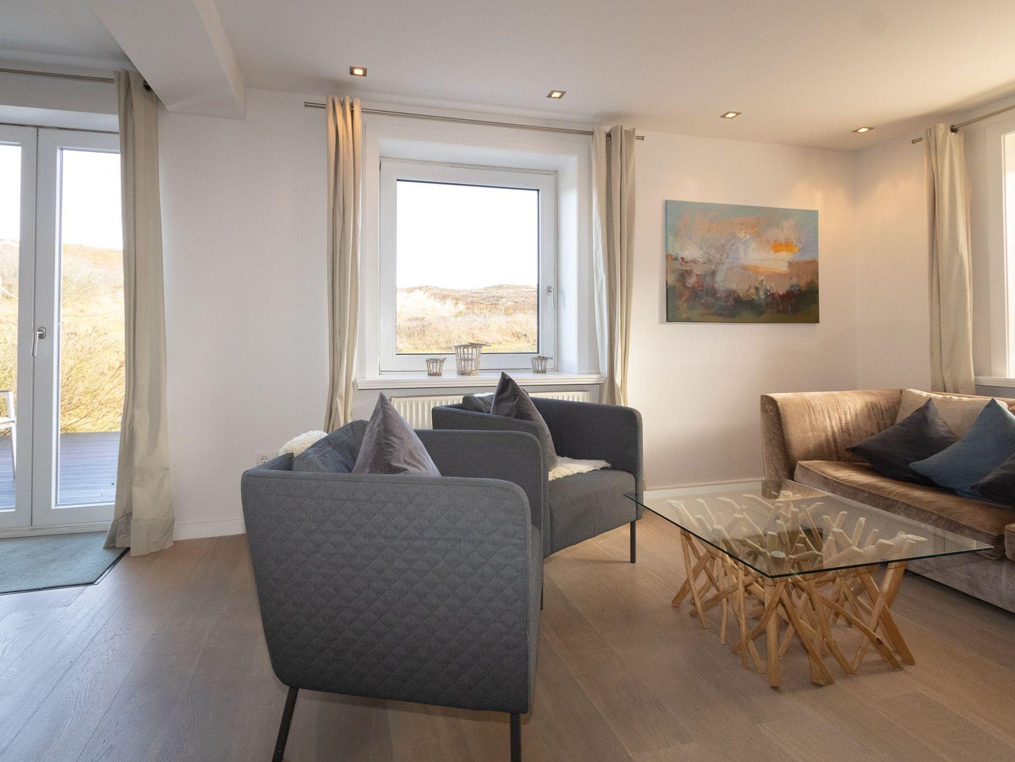 Modernes Budersandhaus in Hörnum auf Sylt mit Sauna, Kachelofen und hochwertiger Ausstattung.