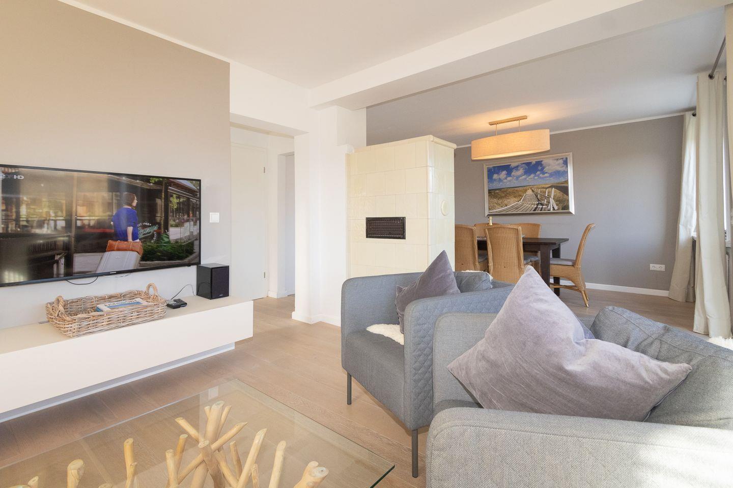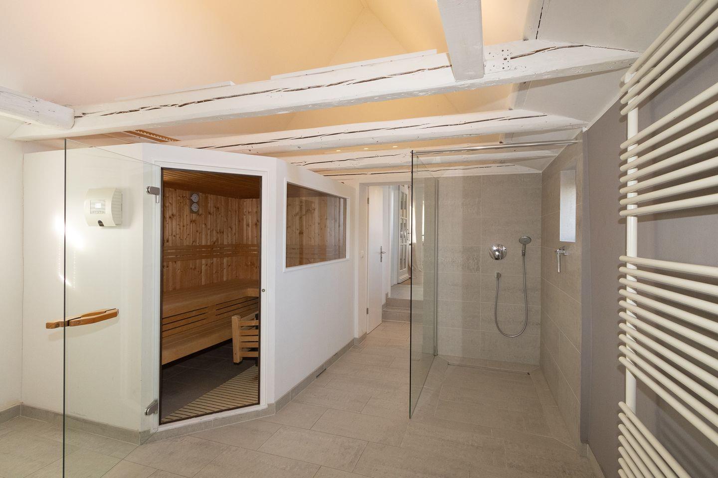 Das 140 qm große Haus verfügt über 3 Schlafzimmer mit Boxspringbetten, 2 Bäder mit Dusche und Badewanne, ein separates Gäste WC, sowie einen großzügigen Sauna- und Wellnessbereich mit Regendusche. Die exklusive Küche ist mit edlen Materialien, hochwertigen Geräten und allem Zubehör ausgestattet. Sie liegt offen zum Ess- und Wohnzimmer mit dem Original Kachelofen. Die Wohn- und Schlafbereiche sind mit gekalkten Eichendielen ausgelegt, die Eingangs- und Nassbereiche mit grauem Feinstein. Flatscreen TV im Wohnbereich gehören ebenso zur technischen Ausstattung wie Blue Ray-DVD-Player, CD, Receiver und ein Highspeed-W-Lan Anschluss.
