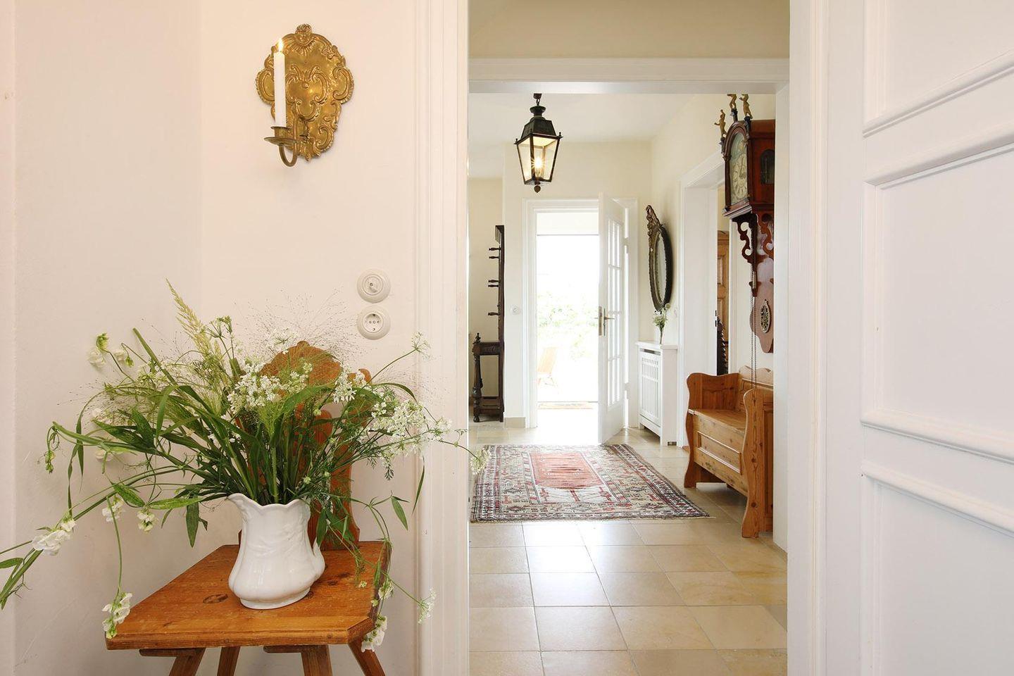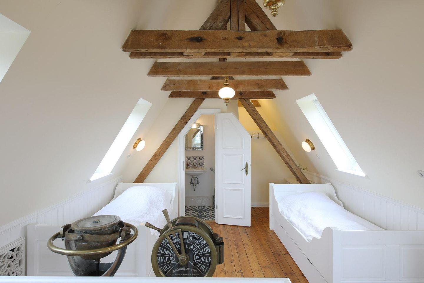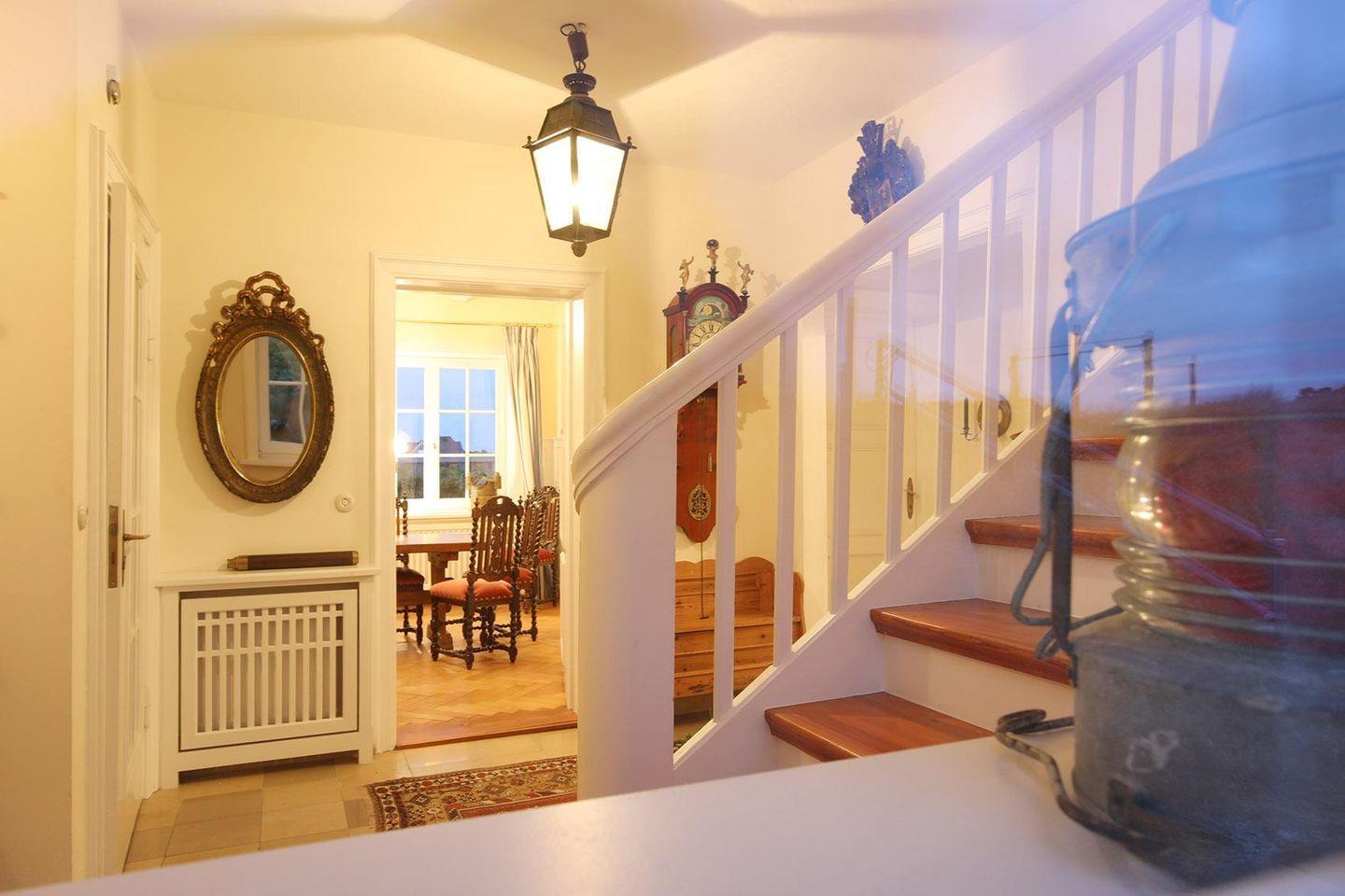 Eingerichtet mit hochwertigen Antiquitäten bietet diese Doppelhaushälfte viel Raum für die ganze Familie. Im Erdgeschoss finden Sie eine geräumige Küche, einen Wohnraum und das Esszimmer sowie ein Gäste-WC. Über den großzügigen Flur gelangen sie in das 1. OG in dem sich ein Schlafzimmer mit kleinem begehbaren Kleiderschrank befindet. Dem Schlafzimmer angrezend befindet sich direkt ein Duschbad. Auf dieser Ebene liegt noch ein zweites Schlafzimmer und ein hochwertiges Wannenbad mit Dusche und Bidet. Über eine weitere Treppe gelangt man in das Dachgeschoss mit 2 Einzelbetten sowie einem angrenzenden WC mit Waschbecken. Alles sehr geschmackvoll und hochwertig eingerichtet.