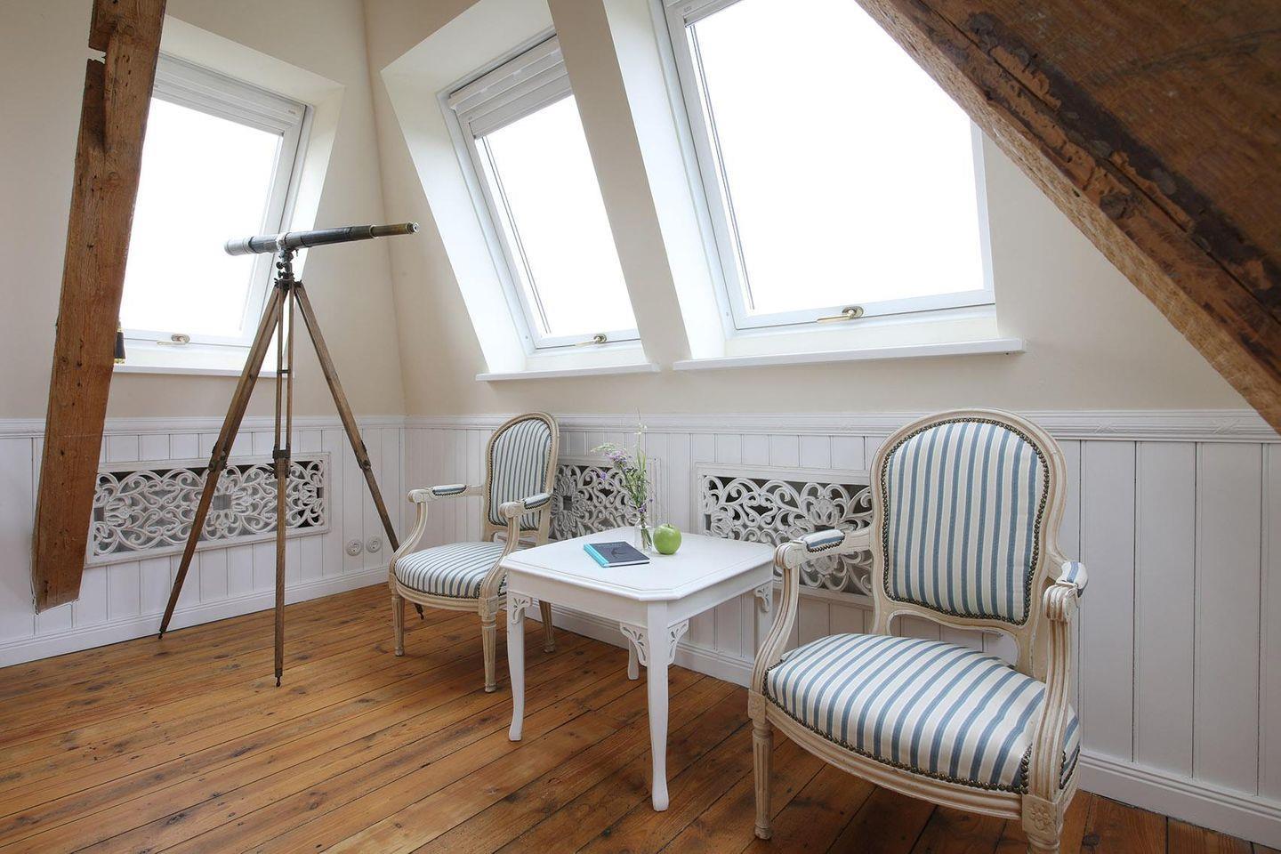 Die kleine Sitzecke im Dachgeschoss lädt zum Träumen ein und läßt schöne Augenblicke wahr werden.