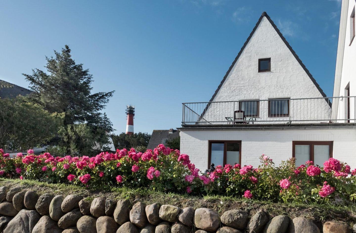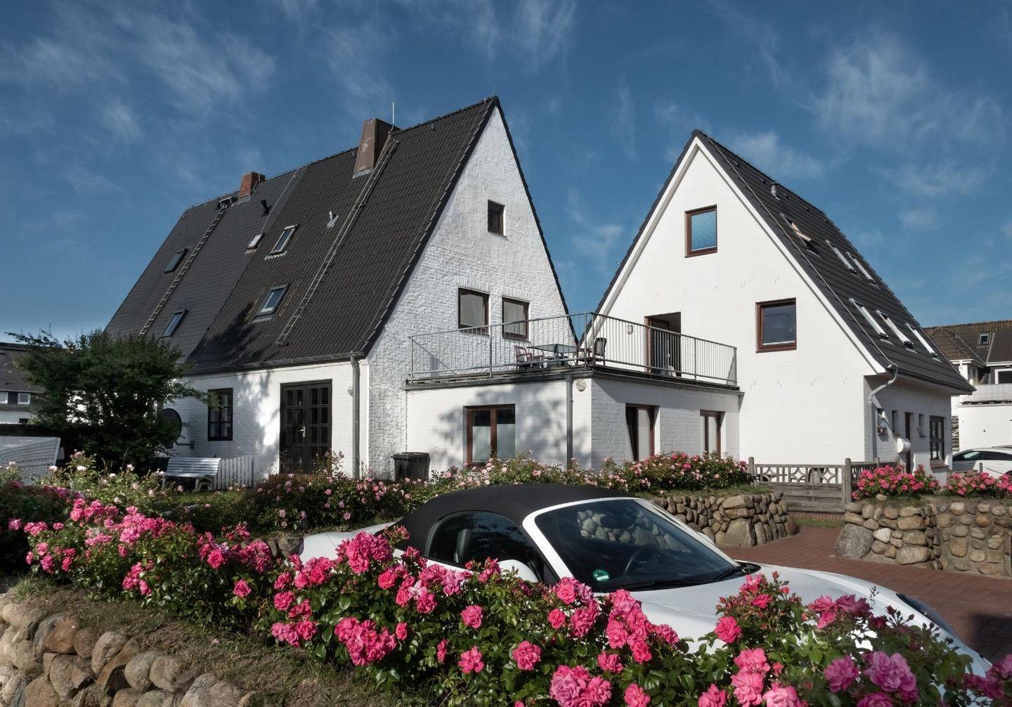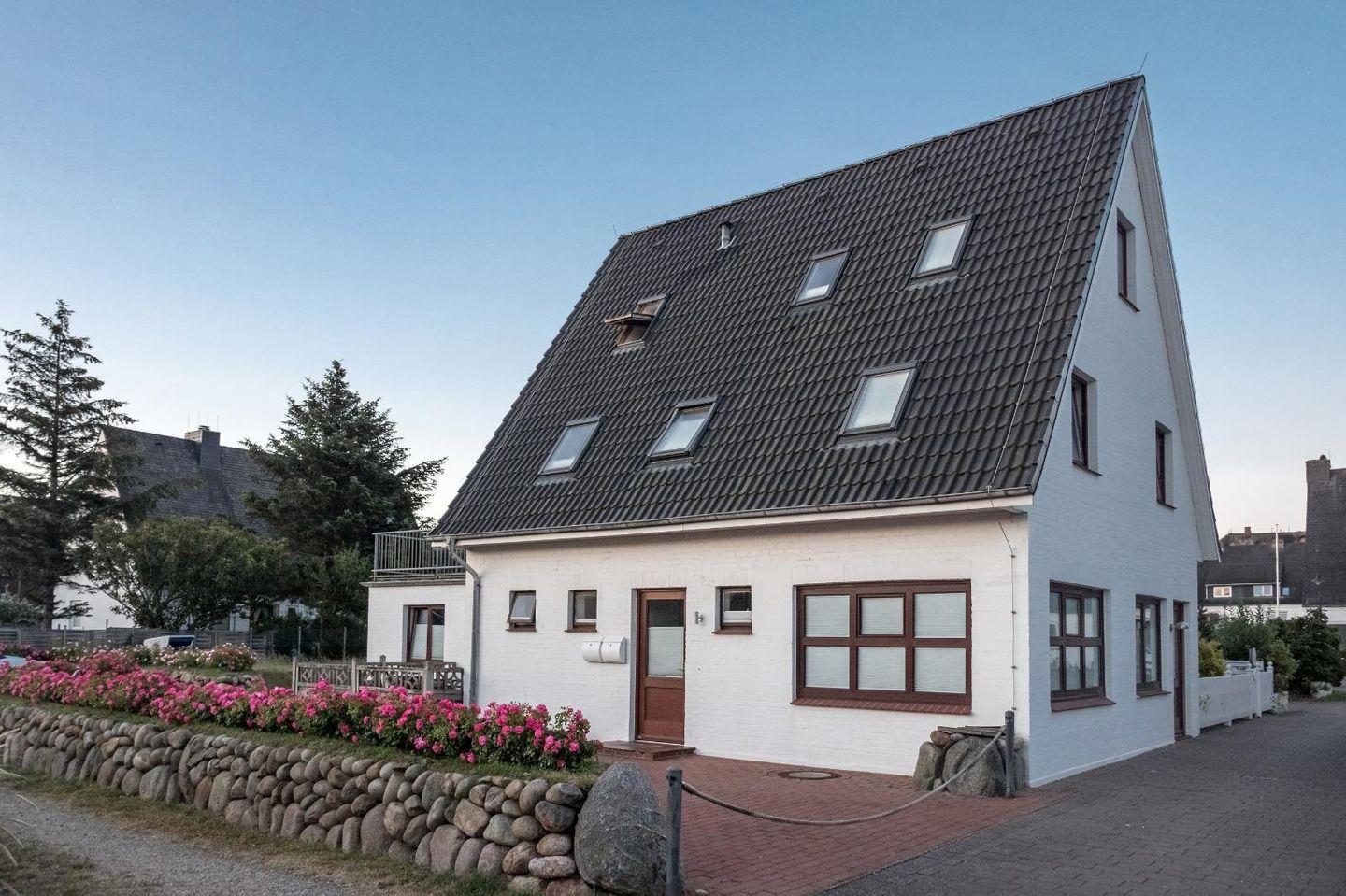 Moderne 4-Zimmer-Ferienwohnung auf Sylt mit großem Balkon und Gartenmöbeln, nur 150 m vom Strand entfernt.