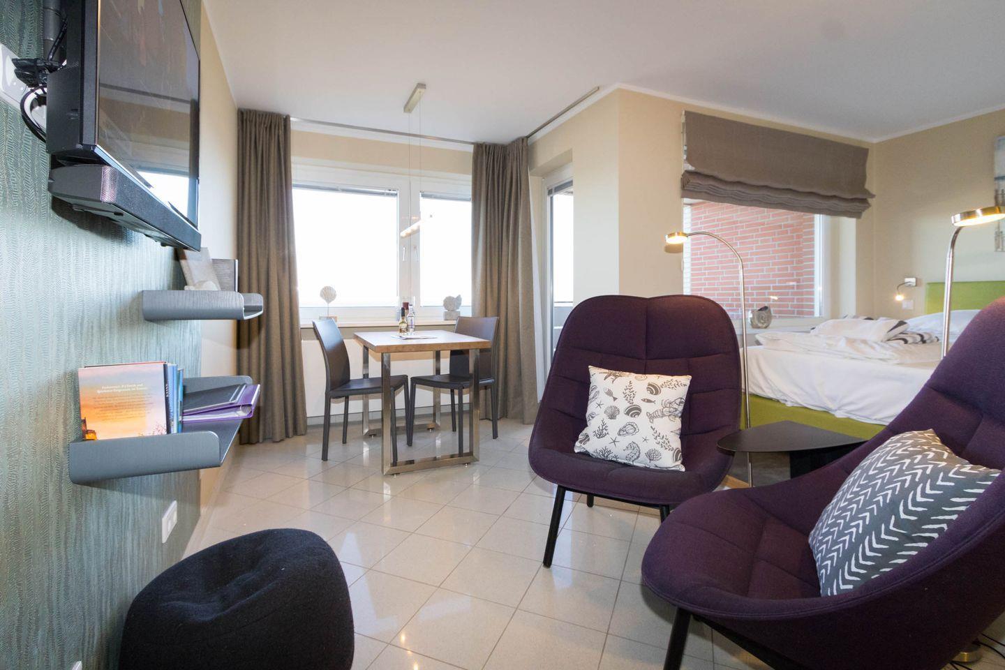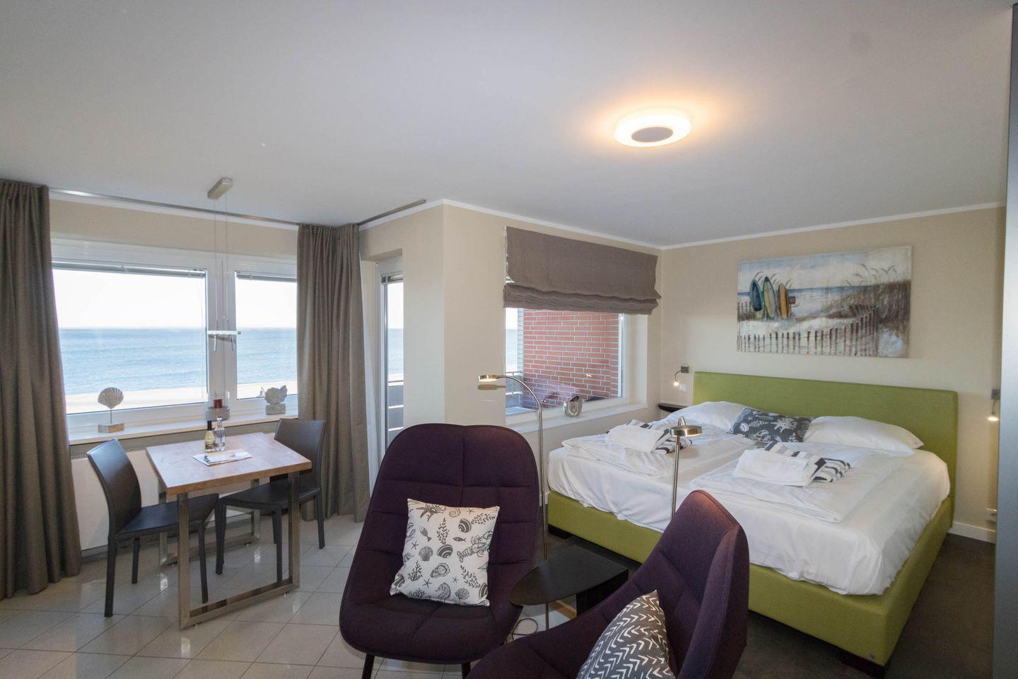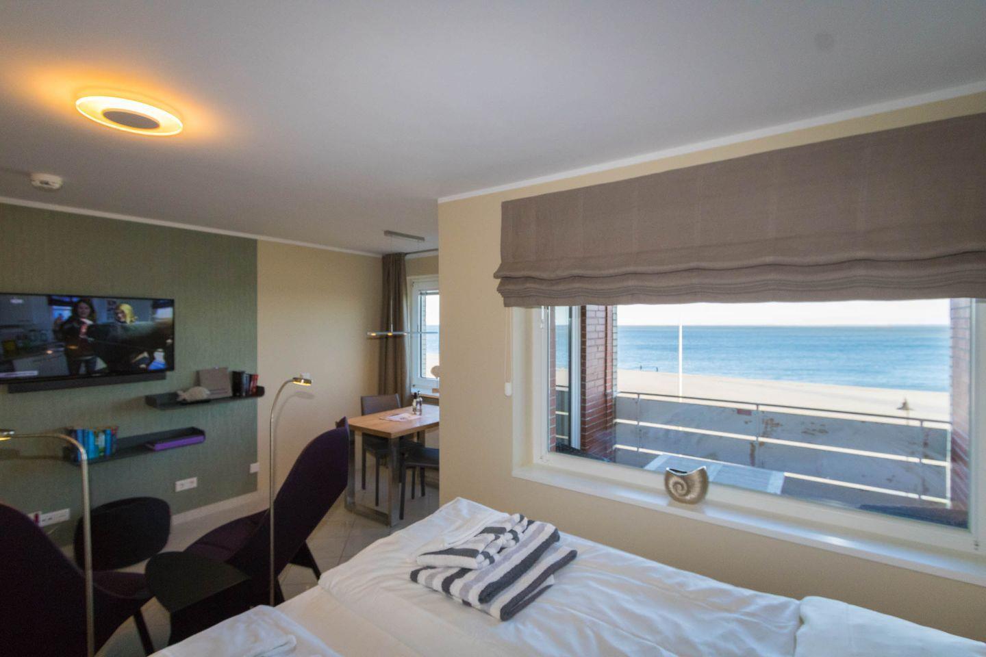 Moderne Ferienwohnung mit Balkon und Meerblick direkt am Strand in Hörnum, ideal für entspannte Tage zu zweit.